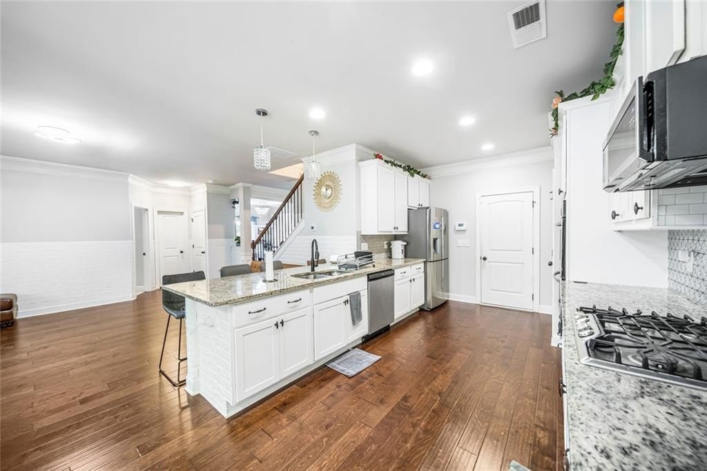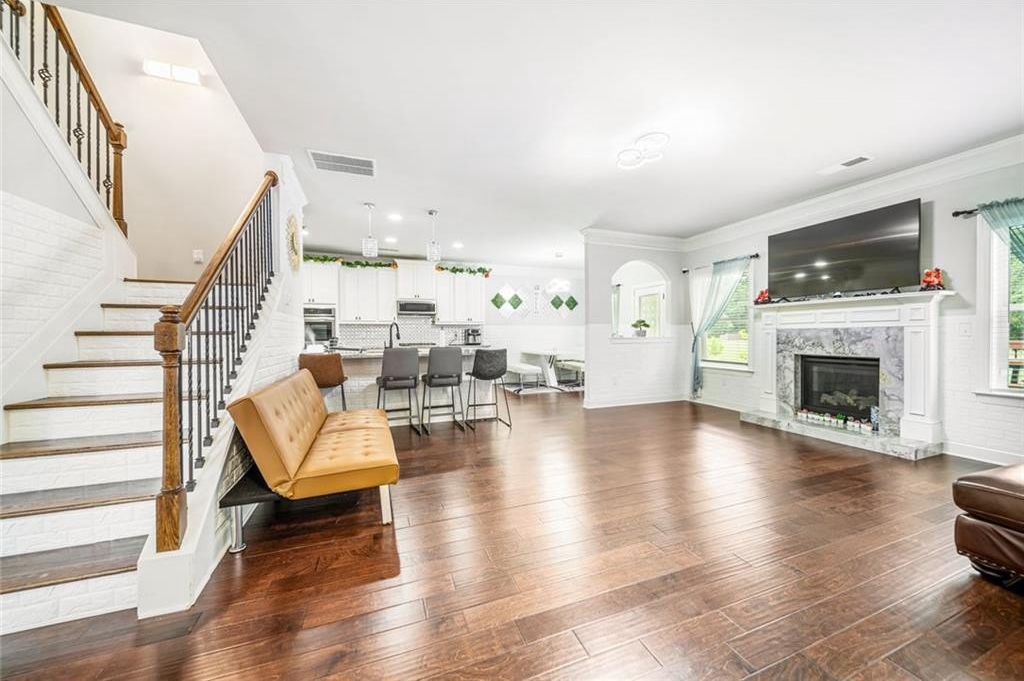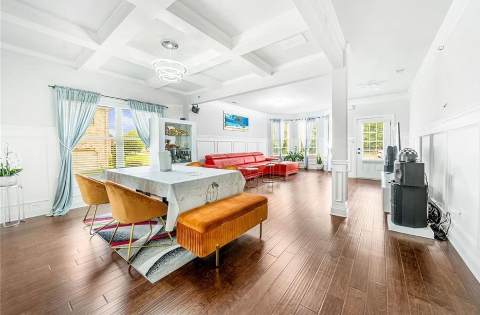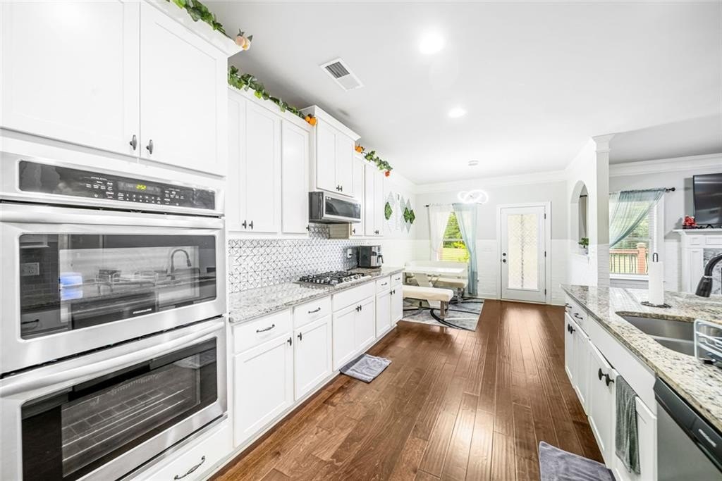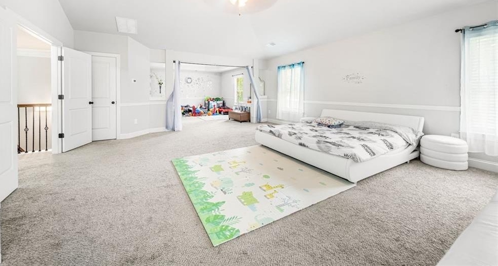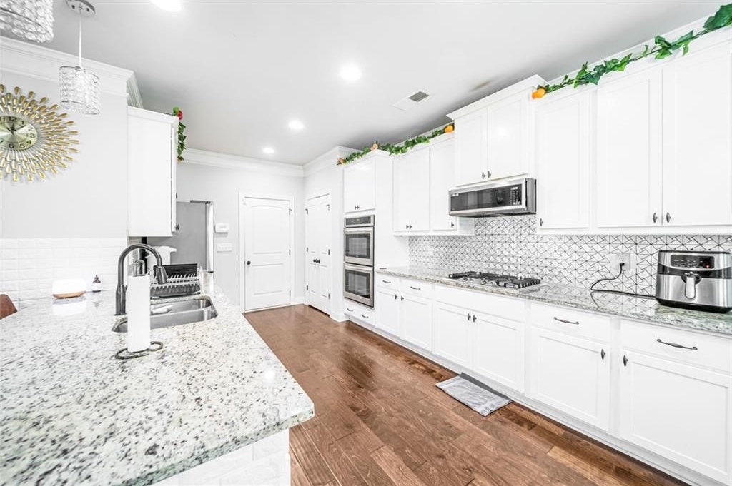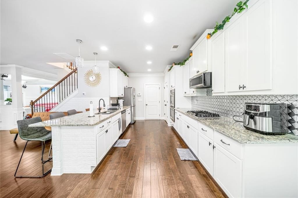 This stunning 4-sided brick beauty, built in 2019, perfectly blends timeless elegance with modern features. Step inside to soaring 10-foot ceilings (or higher!) and an open-concept layout designed for both entertaining and everyday living. The chef’s kitchen is a showstopper—featuring gleaming granite countertops, a double oven, classic white cabinetry, and hardwood floors that flow seamlessly into the spacious family room.