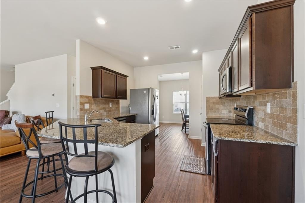 MOTIVATED SELLER – Offering $5,000 toward closing costs! All major furniture items will remain with the home, while decorative items, bedding, personal accessories, office chairs, and the breakfast table with chairs are excluded. This beautifully maintained and fully furnished 5-bedroom, 3-bathroom home in Brayden Park offers nearly 3,000 square feet of stylish, move-in-ready living. Built in 2019 on a premium 8,276 sq. ft. lot, it features new LVP flooring, a main-level guest suite, and a chef’s kitchen with granite countertops, stainless-steel appliances, stone backsplash, and a spacious island. The family room includes an electric fireplace with blower fan, and the upstairs primary suite boasts vaulted ceilings, double vanities, a soaking tub, and separate shower. Smart Home upgrades include Wi-Fi thermostats, smart garage doors, a smart lock, and porch light, plus Ethernet wiring and a transferable monitored security system with cameras. A newly installed HVAC unit (Dec. 2024) comes with a transferable warranty. The professionally maintained lawn includes termite monitoring paid through Sept. 2025. Enjoy the convenience of a low-maintenance backyard, complemented by a spacious side yard that adds versatility for outdoor living or recreation. Conveniently located near downtown Decatur with easy access to I-285, I-20, and Hartsfield-Jackson Atlanta International Airport. Current photos reflect the home's pristine condition—this turn-key opportunity is priced to sell and won’t last long.