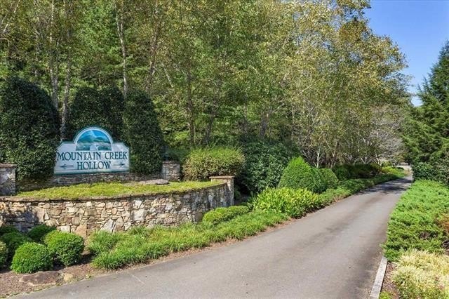 This 1.44-acre mountain homesite is ideally positioned above a wide, flowing creek bed, offering year-round mountain views and the peaceful sound of moving water just beyond the back of the property. From the lot, you can hear the creek as it winds through the landscape below, creating a natural soundtrack that enhances the sense of privacy and calm. Located within the gated community of Mountain Creek Hollow, this property offers a rare opportunity to build a custom mountain retreat surrounded by nature. Community amenities include a creek-side pavilion with fireplace and picnic tables, underground utilities, a covered bridge, stocked trout pond, community garden, water wheel, and walking paths designed to enjoy the natural setting. Faucet Creek flows along the lower portion of the property, widening in areas and featuring small, picturesque waterfalls that add to the property's character. The setting feels secluded and tranquil, yet remains convenient-just over ten minutes from shopping and dining in Ellijay and ideally situated between Ellijay and Jasper. This lot offers a balance of natural beauty, community features, and accessibility, making it well-suited for a primary residence or mountain getaway. Please note, the HOA does not currently permit short-term rentals. Gated access required to visit this community. Survey has been completed and a home rendering available.