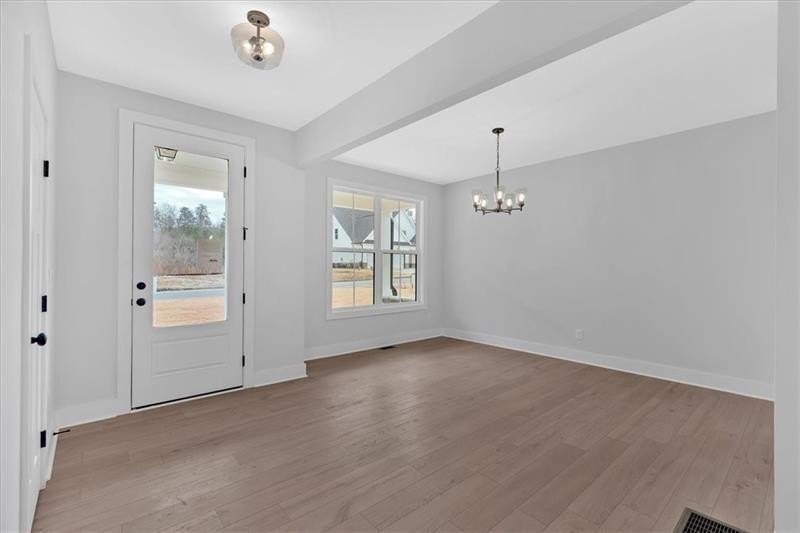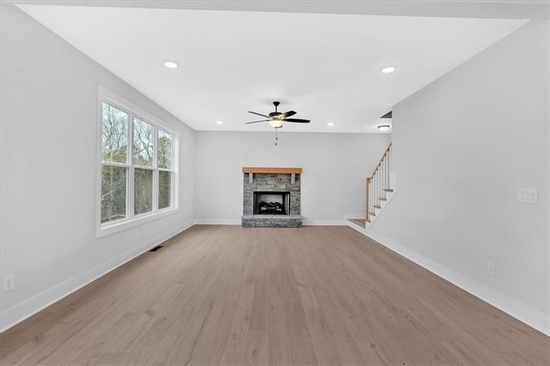 Welcome to the Travis floor plan — a thoughtfully designed 4 bedroom, 2.5 bath home offering generous living space and timeless style. The open-concept main level features a spacious great room with a gas log fireplace and clear sightlines to a stunning chef’s kitchen, complete with quartz countertops, soft-close cabinetry, a large island, and a sunny breakfast nook. Host unforgettable gatherings in the formal dining room or unwind on your private back deck.