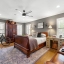 Two additional bedrooms share a tastefully appointed Jack-and-Jill bath with a versatile flex room improved with a built-in desk, closet, and sliding barn door that is perfect for a home office or creative space.