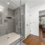 The spacious primary suite serves as a peaceful retreat with a walk-in closet fitted with a California Closet system. The spa-inspired ensuite bath includes dual vanities, a soothing color palette, and an oversized tile shower with dual shower heads and a frameless glass enclosure.