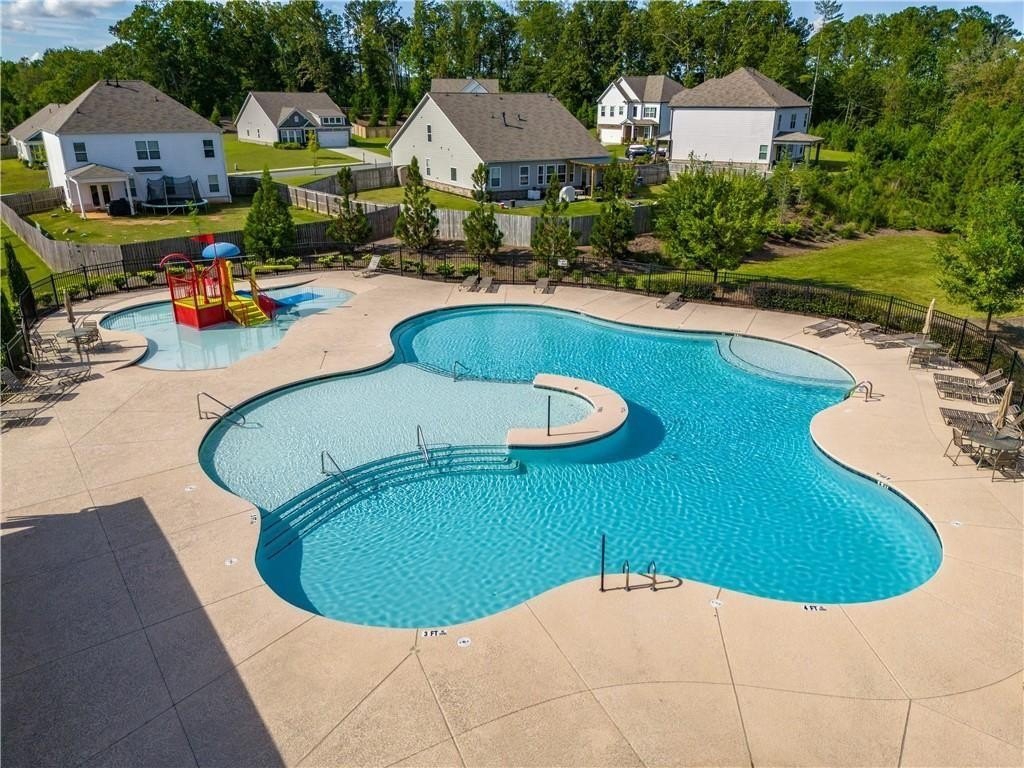 Step outside to enjoy a sprawling, private fenced backyard, complete with a covered porch and oversized patio—an ideal setting for outdoor entertaining and family fun. The vibrant community amenities include a clubhouse with catering kitchen, a pool with a children’s area, playground, and tennis courts—providing an active, engaging lifestyle for all ages.