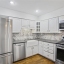 Inside, you’ll find hardwood floors throughout, updated lighting, and the kitchen with quartz countertops, stainless steel appliances, gas range, and herringbone tile backsplash overlooking the living room. The spacious dining area flows onto a freshly renovated back deck—perfect for unwinding with wooded views after a long day.