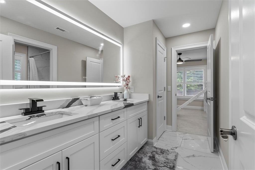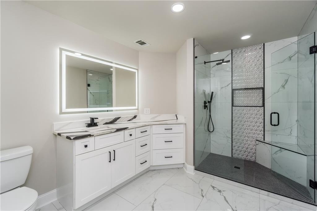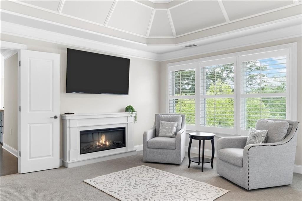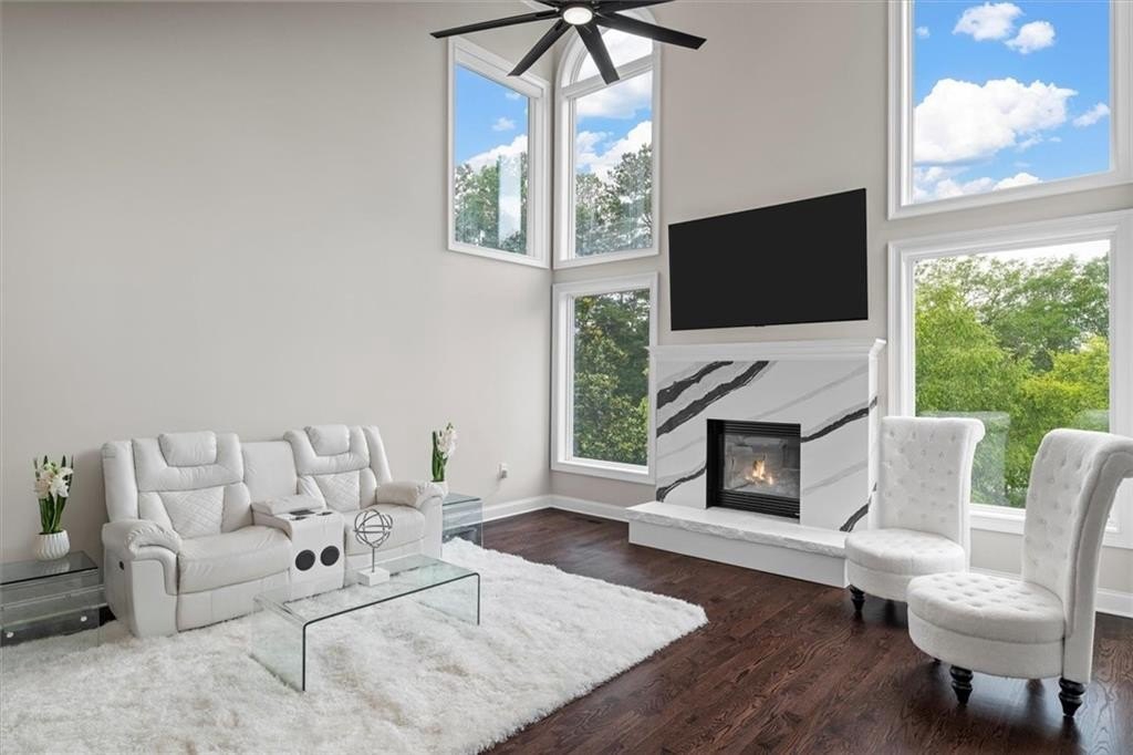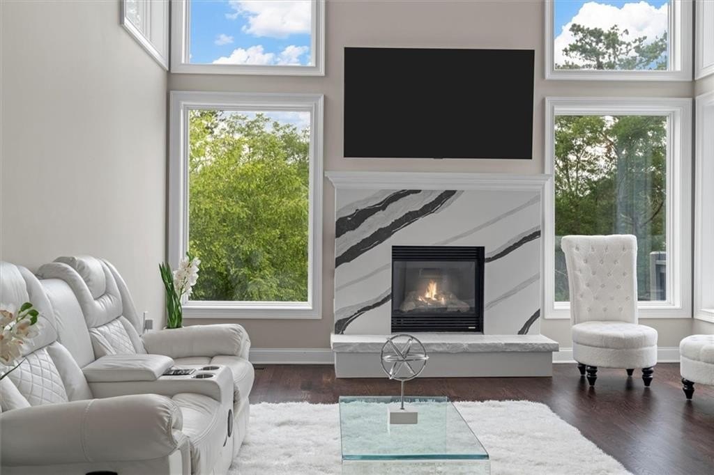 As you explore further, your toes will sink into brand-new, luxury-textured carpet — soft, plush, and inviting in every room. The fully remodeled bathrooms are outfitted with rich quartzite surfaces, echoing the same elegant stone used in the grand fireplace that anchors your living space.