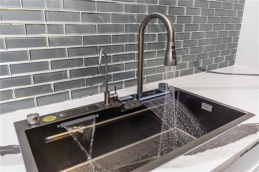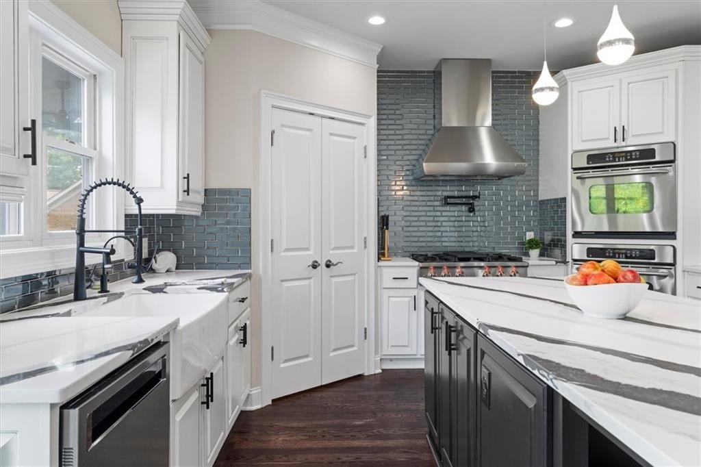 The heart of the home is the chef’s kitchen, designed to impress and inspire. Featuring double ovens, a brand-new gas stove, a striking waterfall island, and a walk-in chef’s pantry with a smart digital sink, it’s a culinary haven ready for everyday living or entertaining in style.