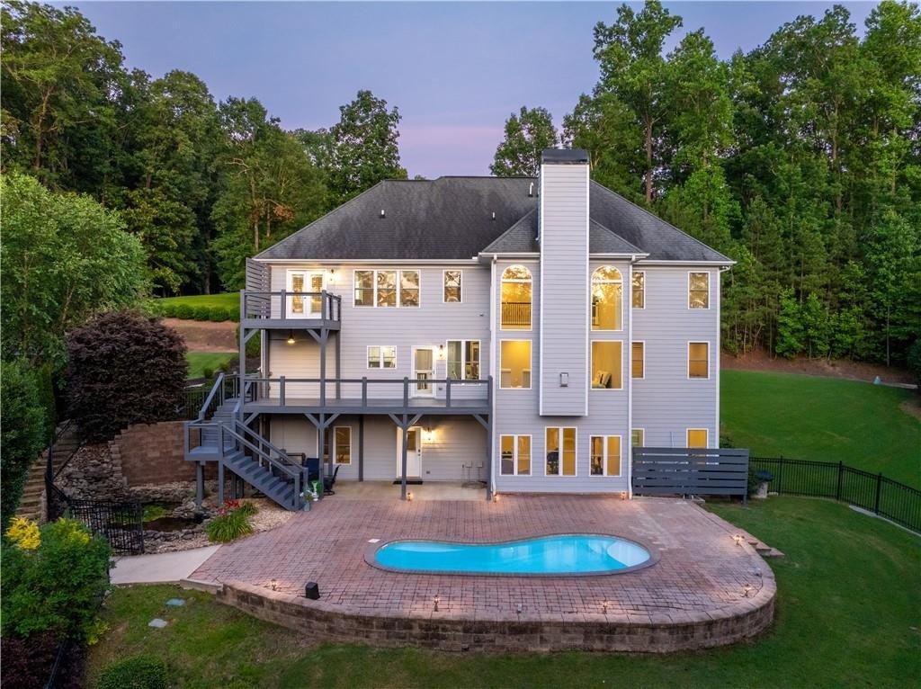 Outside, your 2.16 acres of manicured landscape offer a playground for both relaxation and entertainment. Take in the peaceful sights and sounds of your koi pond, dip into the in-ground infinity pool, or stroll down to your private, boat-worthy dock as the sun sets over the lake.