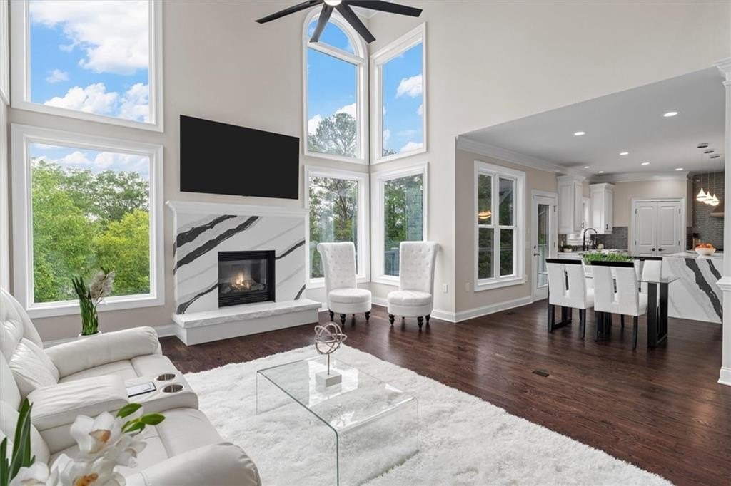 Every inch of this residence has been curated for luxury, comfort, and livability. As the sun dances through the expansive windows of your two-story living room, warm natural light fills the space, creating a radiant glow that shifts beautifully throughout the day. When evening falls, vibrant sunsets reflect off the lake and cast golden hues across your stainless steel deck — a breathtaking backdrop for quiet moments or lively gatherings.