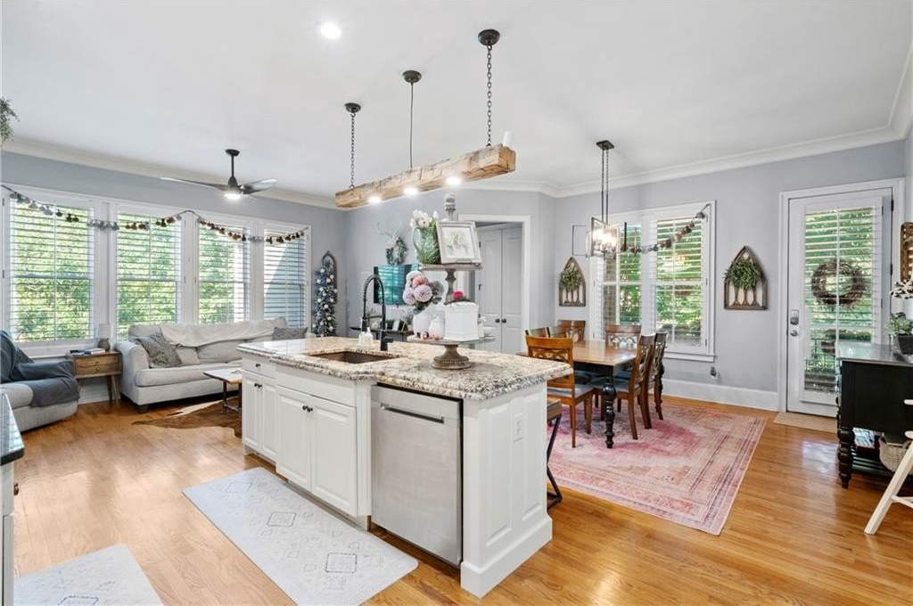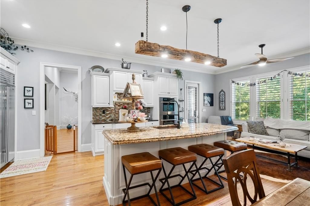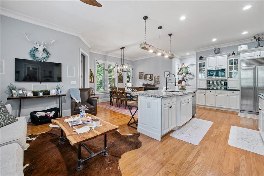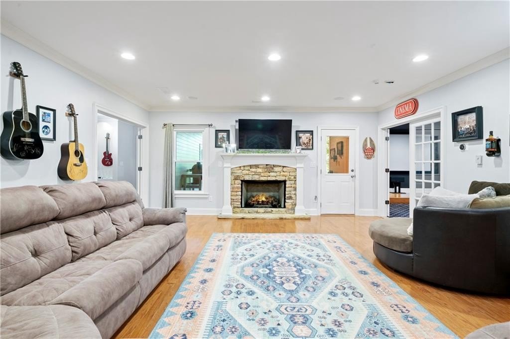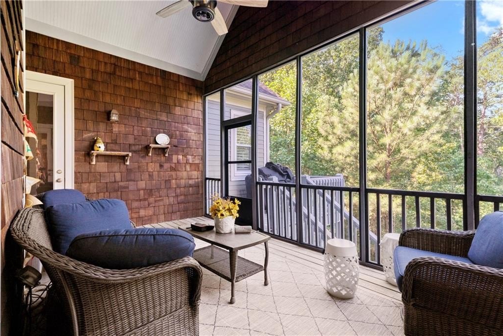 Located in the gated Village at Waterside community, 11 York Trace offers a rare blend of privacy, space, and convenience just minutes from Lake Allatoona and Red Top Mountain State Park. Set on a 0.76-acre wooded lot, this custom-built home provides a peaceful, natural setting with elevated views and multiple outdoor living areas designed to enjoy the surroundings rather than maintain them. The main level features a welcoming covered entry that opens into a vaulted great room with hardwood floors, a floor-to-ceiling stone fireplace, and large windows that bring in natural light and wooded views. The kitchen is designed for both everyday living and entertaining, offering granite countertops, custom cabinetry, a large center island, double ovens, and a dedicated pantry. A formal dining area connects seamlessly to the main living spaces. The primary suite is located on the main level and includes dual walk-in closets and a remodeled bath with soaking tub, separate shower, and dual vanities. A secondary bedroom with its own en-suite bath on the main level provides flexible options for guests or multigenerational living. The terrace level adds significant versatility with a spacious family room, second stone fireplace, theatre room, workshop area, and additional flexible spaces suitable for home office, fitness, or hobby use. Double doors lead to a lower outdoor living area surrounded by mature trees and a quiet, private setting. Outdoor living is a highlight of this home, with a screened porch, covered deck, and west-facing platform positioned to enjoy sunset views and the wooded landscape. The backyard offers a natural, low-maintenance environment with privacy between neighboring homes. Village at Waterside is a well-maintained gated community featuring a residents' pool, pavilion, and landscaped common areas, providing a low-maintenance ownership experience. Conveniently located approximately 3 minutes to I-75 (Main Street Exit 288), 7 minutes to downtown Cartersville, and close to shopping, dining, museums, and outdoor recreation. Recent updates include remodeled bathrooms, kitchen refreshes, a tankless water heater, and newer HVAC components. High-speed internet is available, making the home well-suited for remote work and modern living. Now offered at $950,000, 11 York Trace presents an opportunity for buyers seeking a private, gated home with space, flexibility, and easy access to both nature and everyday conveniences.