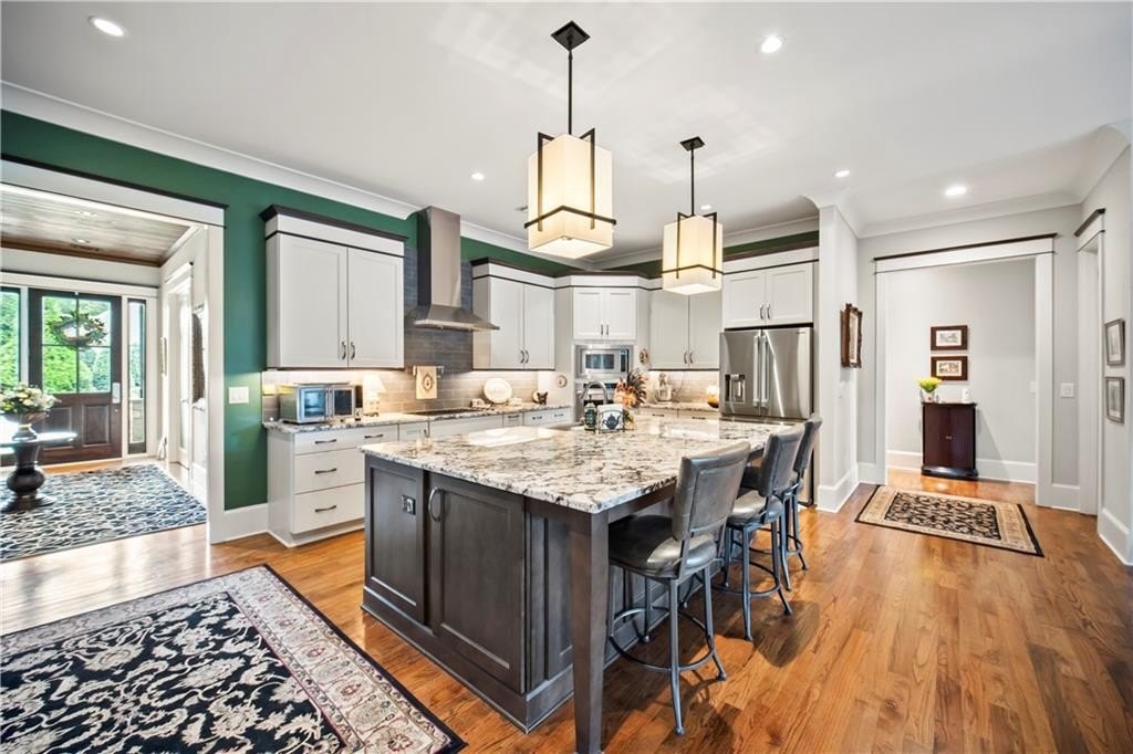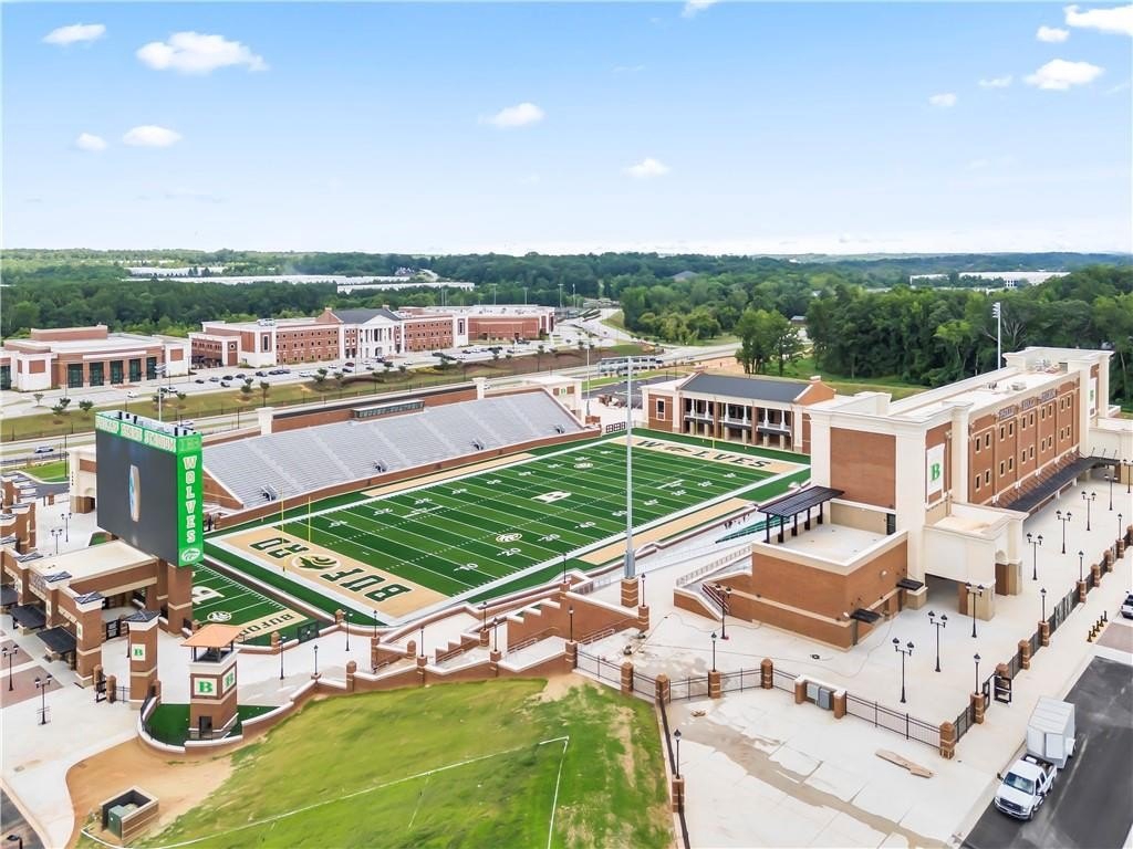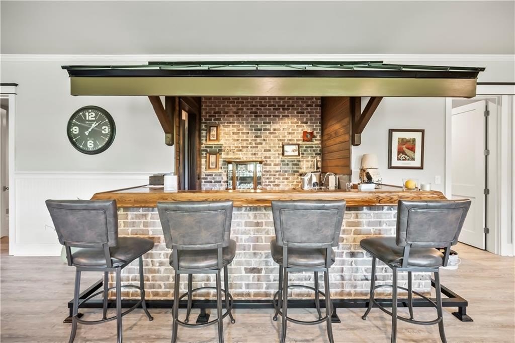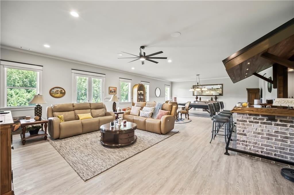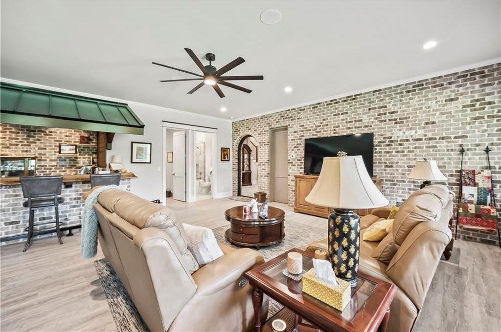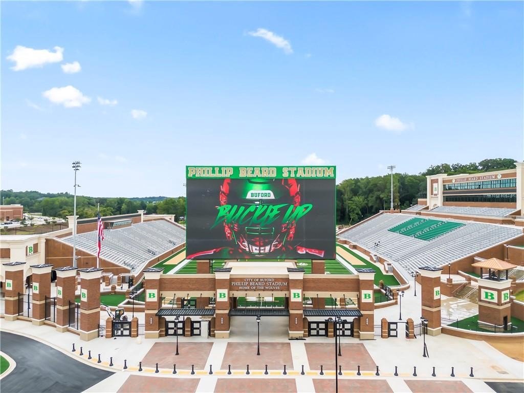 Welcome to 5415 Falls Landing Drive, nestled in the highly sought-after Reserve at Big Creek Subdivision. Located in Hall County and zoned for the #1-rated Buford City Schools, this one-of-a-kind custom-built home offers the perfect blend of luxury, functionality, and convenience. Built in 2022 and thoughtfully designed with every upgrade in mind, this 5,610 sq. ft. four-sided brick home sits on an expansive 1+ acre lot and features an impressive 4-car attached garage. Step inside to soaring ceilings, rich hardwood floors throughout, and an open-concept layout ideal for modern living. The chef’s kitchen is a showstopper with high-end appliances, an oversized entertaining island, wine fridge, and custom finishes throughout. Flow seamlessly into the large dining area and elegant living room featuring a fireplace with custom built-ins. Enjoy Georgia evenings on the screened-in patio with its own fireplace, perfect for hosting or relaxing with your morning coffee. The main-level primary suite is a true retreat, offering a spa-inspired bathroom with a soaking tub, separate shower, double vanities, and a massive walk-in closet. All additional bedrooms on the main level are generously sized and offer great functionality. The finished basement is a dream for entertaining and extended living — complete with a media room, billiards area, custom bar, and a private guest suite with full bath. A separate entrance provides flexibility and privacy, while a dedicated storage area is perfect for gardening, landscaping equipment, or a workshop.This smart home also features low-voltage exterior lighting and integrated home automation systems, offering both comfort and convenience.Don’t miss your opportunity to own this rare gem in a prime location with access to top schools, spacious luxury living, and every upgrade already in place.