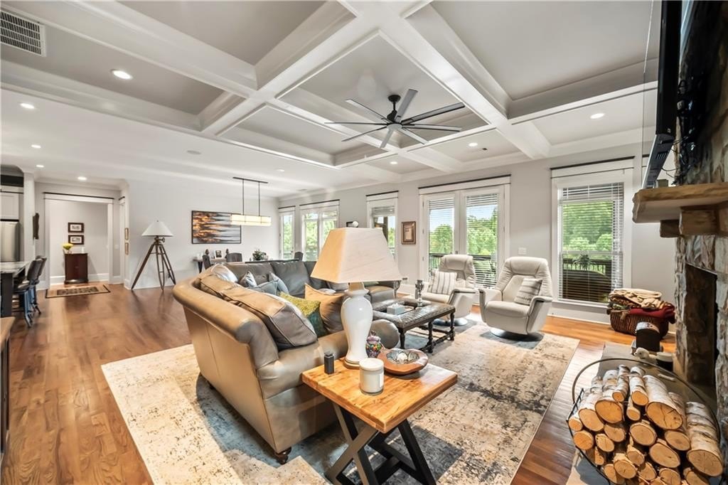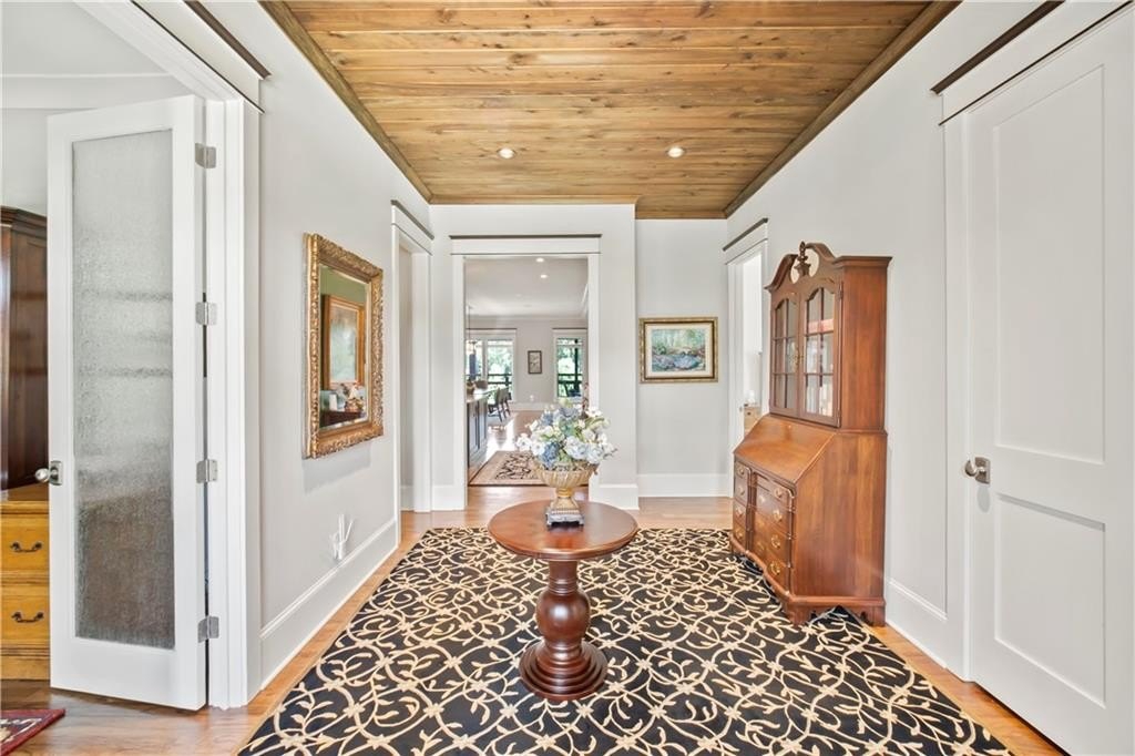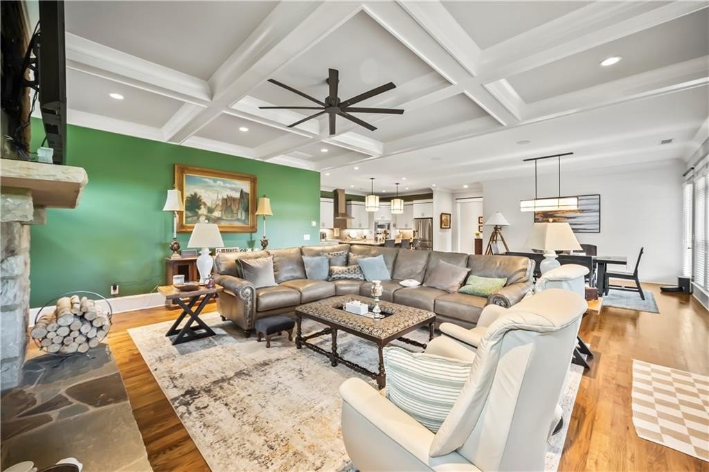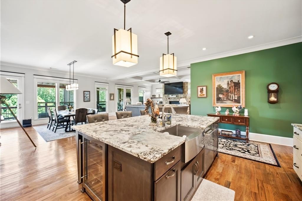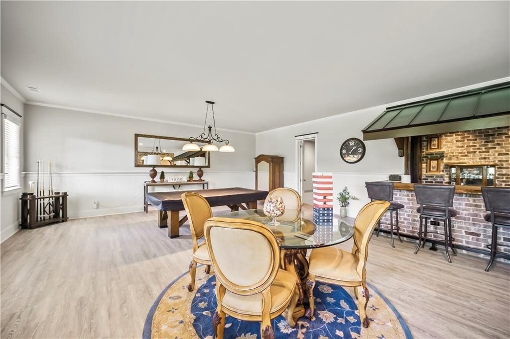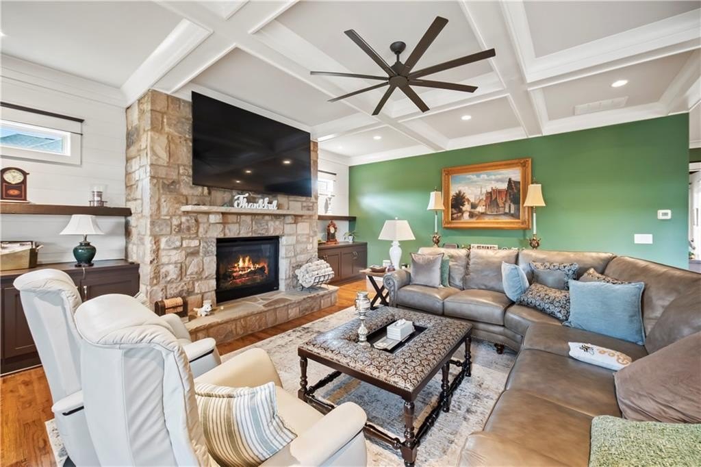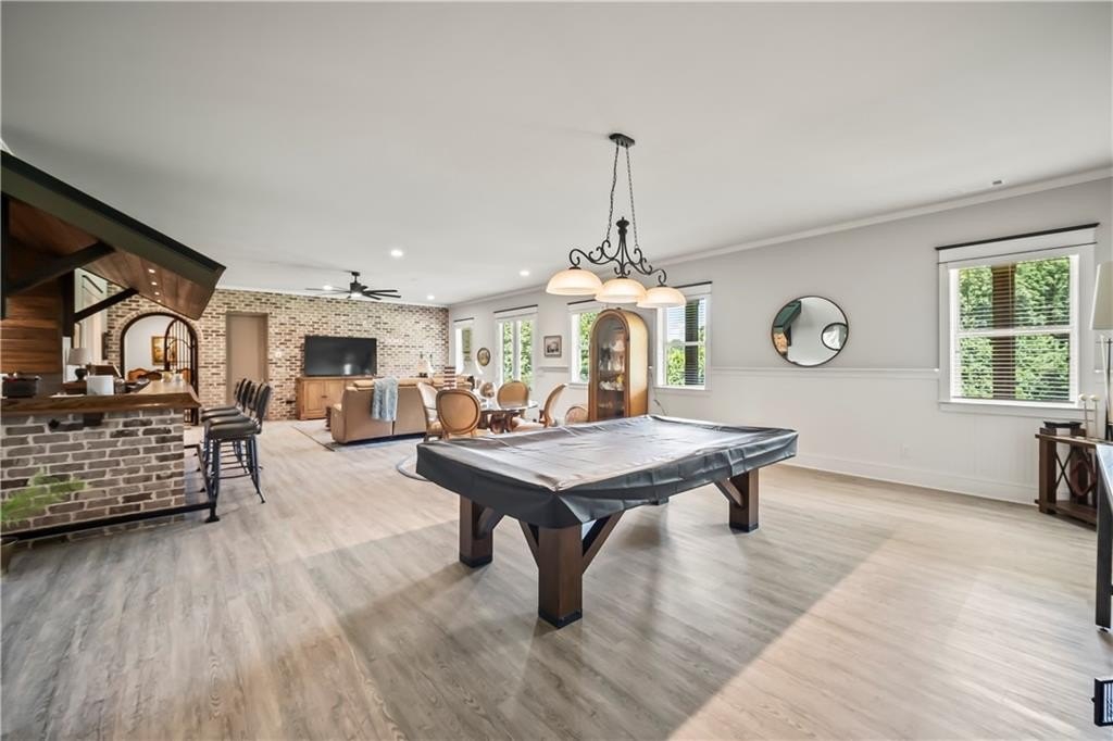 Welcome to 5415 Falls Landing Drive, nestled in the highly sought-after Reserve at Big Creek Subdivision. Located in Hall County and zoned for the #1-rated Buford City Schools, this one-of-a-kind custom-built home offers the perfect blend of luxury, functionality, and convenience. Built in 2022 and thoughtfully designed with every upgrade in mind, this 5,610 sq. ft. four-sided brick home sits on an expansive 1+ acre lot and features an impressive 4-car attached garage. Step inside to soaring ceilings, rich hardwood floors throughout, and an open-concept layout ideal for modern living. The chef’s kitchen is a showstopper with high-end appliances, an oversized entertaining island, wine fridge, and custom finishes throughout. Flow seamlessly into the large dining area and elegant living room featuring a fireplace with custom built-ins. Enjoy Georgia evenings on the screened-in patio with its own fireplace, perfect for hosting or relaxing with your morning coffee. The main-level primary suite is a true retreat, offering a spa-inspired bathroom with a soaking tub, separate shower, double vanities, and a massive walk-in closet. All additional bedrooms on the main level are generously sized and offer great functionality. The finished basement is a dream for entertaining and extended living — complete with a media room, billiards area, custom bar, and a private guest suite with full bath. A separate entrance provides flexibility and privacy, while a dedicated storage area is perfect for gardening, landscaping equipment, or a workshop.This smart home also features low-voltage exterior lighting and integrated home automation systems, offering both comfort and convenience.Don’t miss your opportunity to own this rare gem in a prime location with access to top schools, spacious luxury living, and every upgrade already in place.