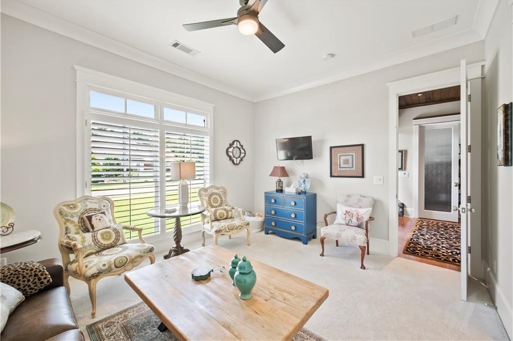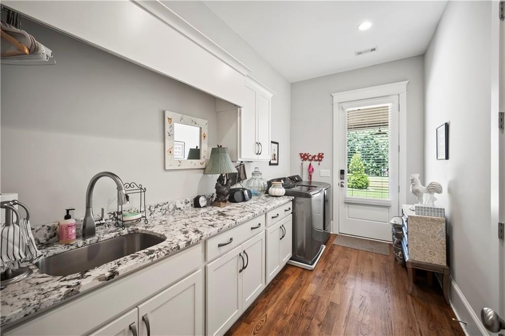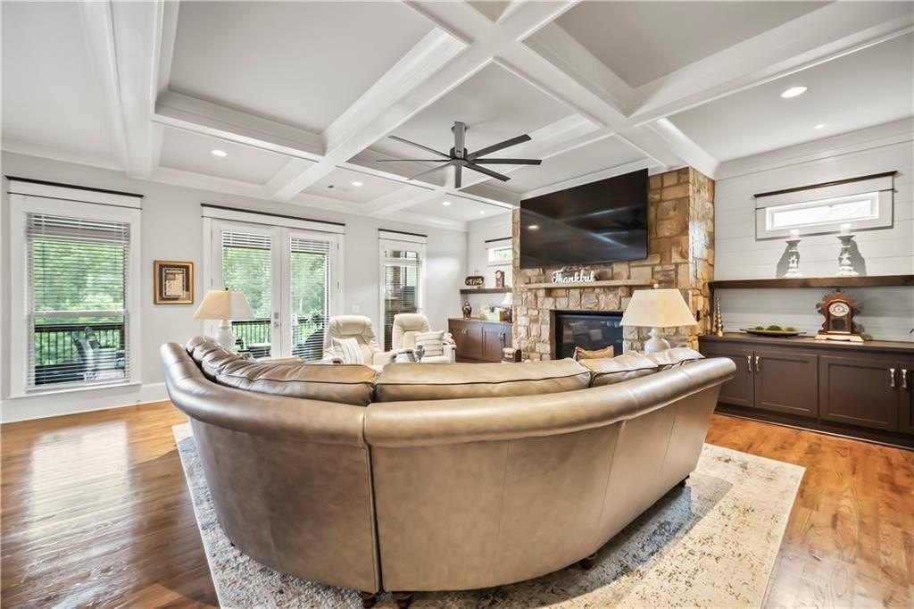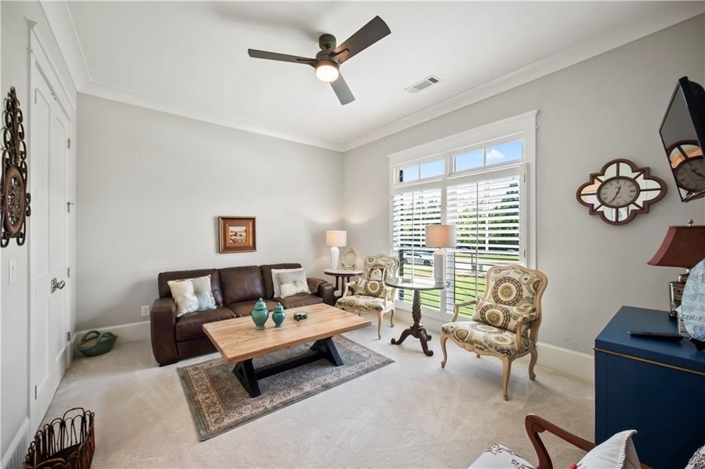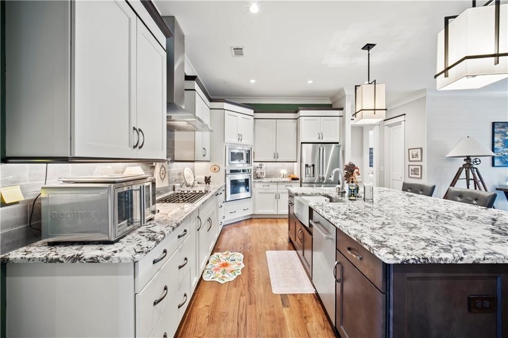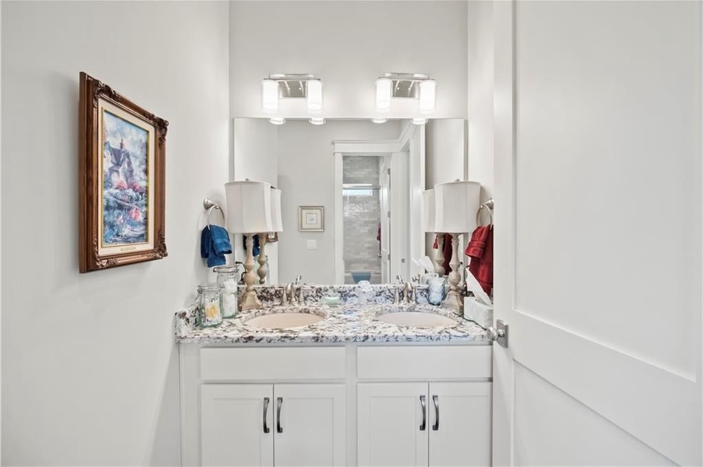 Welcome to 5415 Falls Landing Drive, nestled in the highly sought-after Reserve at Big Creek Subdivision. Located in Hall County and zoned for the #1-rated Buford City Schools, this one-of-a-kind custom-built home offers the perfect blend of luxury, functionality, and convenience. Built in 2022 and thoughtfully designed with every upgrade in mind, this 5,610 sq. ft. four-sided brick home sits on an expansive 1+ acre lot and features an impressive 4-car attached garage. Step inside to soaring ceilings, rich hardwood floors throughout, and an open-concept layout ideal for modern living. The chef’s kitchen is a showstopper with high-end appliances, an oversized entertaining island, wine fridge, and custom finishes throughout. Flow seamlessly into the large dining area and elegant living room featuring a fireplace with custom built-ins. Enjoy Georgia evenings on the screened-in patio with its own fireplace, perfect for hosting or relaxing with your morning coffee. The main-level primary suite is a true retreat, offering a spa-inspired bathroom with a soaking tub, separate shower, double vanities, and a massive walk-in closet. All additional bedrooms on the main level are generously sized and offer great functionality. The finished basement is a dream for entertaining and extended living — complete with a media room, billiards area, custom bar, and a private guest suite with full bath. A separate entrance provides flexibility and privacy, while a dedicated storage area is perfect for gardening, landscaping equipment, or a workshop.This smart home also features low-voltage exterior lighting and integrated home automation systems, offering both comfort and convenience.Don’t miss your opportunity to own this rare gem in a prime location with access to top schools, spacious luxury living, and every upgrade already in place.