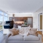 Inside, over 1800 sq ft of sophistication meets comfort with new maple hardwood floors, sleek LED modern lighting, and high-end finishes throughout. The gourmet kitchen is outfitted with top-of-the-line Gaggenau appliances, perfect for the discerning chef. Two spa-inspired modern bathrooms and an elegant powder room offer a serene escape, while spacious walk-in closets provide ample storage.
