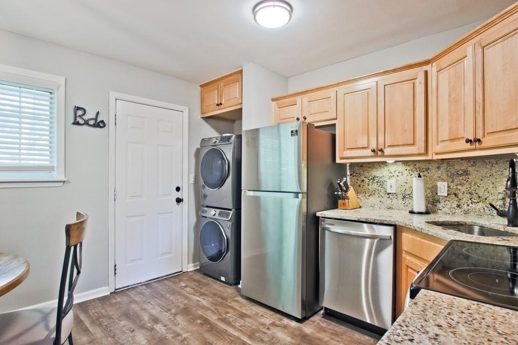 Live in the Heart of Sandy Springs! This prized location blends suburban tranquility with central city convenience. Condos in this tucked-away cluster almost never come on the market because it's perfectly positioned in a quiet, tree-lined residential neighborhood. But just a short walk to everything! Walk to premier retail, fine dining, fast food, dozens of stores, jobs, city parks and even a movie theater plus the new Sandy Springs Performing Arts Center which frequently features national acts. On the MARTA bus line! Meaning you are only minutes from MARTA rail service to Lenox Square, Buckhead, downtown and the airport. Owning a car becomes optional! Inside, discover a modern kitchen with stainless steel Samsung appliances, granite counter tops, and quality cabinetry. The upgraded bathroom boasts a glass walk-in shower with built-in niche and detachable hand held sprayer. Enjoy your spacious living room with vinyl plank flooring, overlooking your community swimming pool and grill. Two carpeted bedrooms with ceiling fans. Step outside and unwind on the fire-escape/balcony, perfect for morning coffee, a quiet read, or evening under the trees-your own little outdoor sanctuary. Contemporary electric HVAC and water heating systems. No natural gas or water bills! Served by good schools: High Point Elementary, Ridgeview Middle and Riverwood High School. Ideal for first-time home buyers, singles, couples, small families, down-sizers or savvy investors.