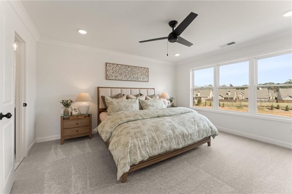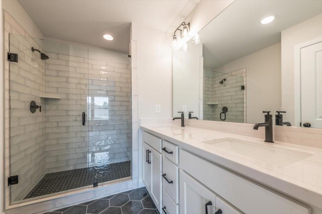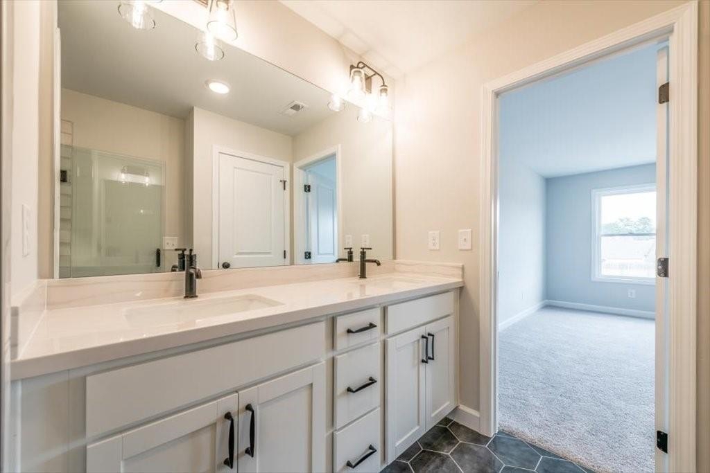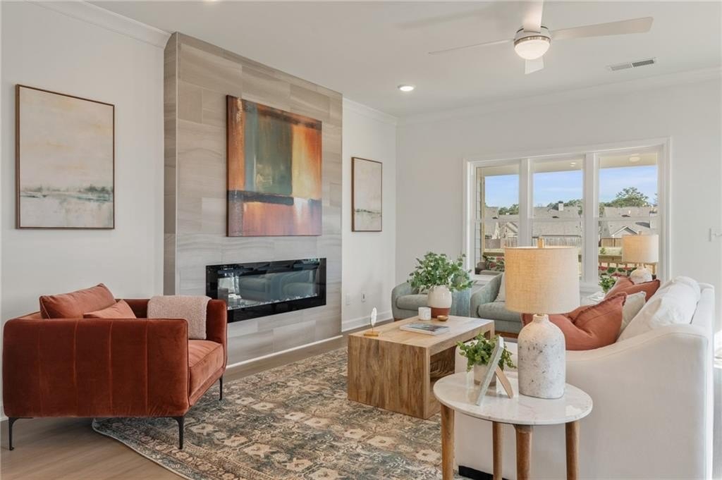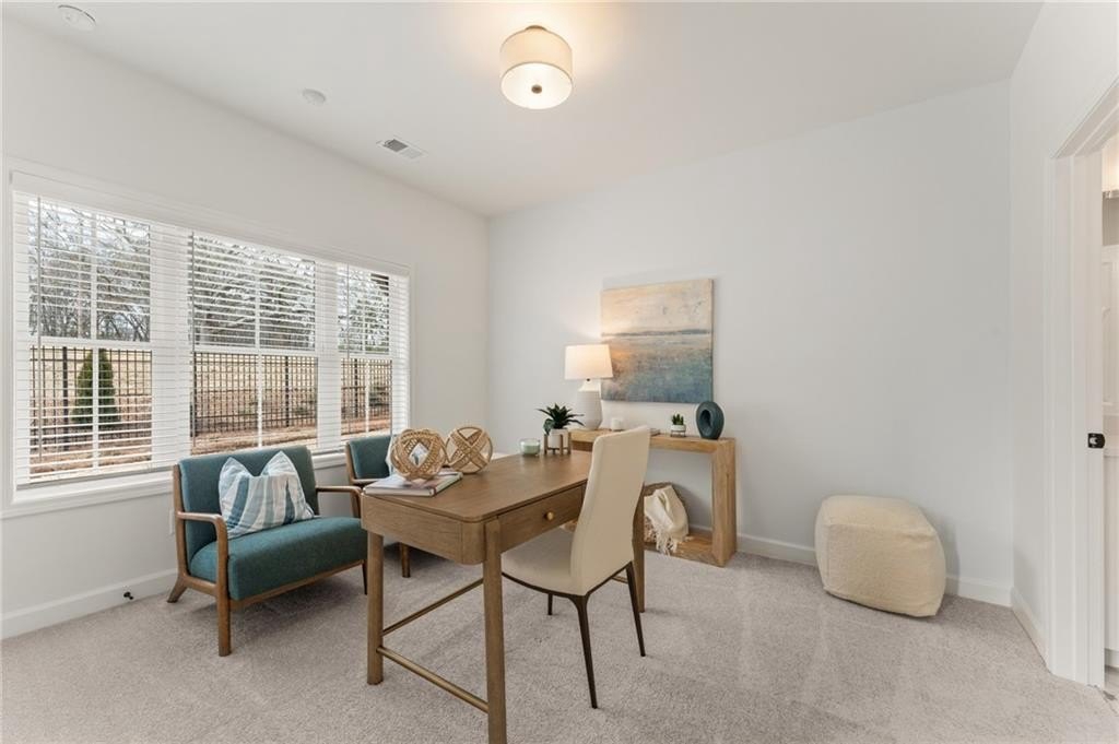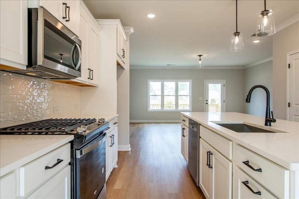 Traton Homes Kaufman G is MOVE IN READY NOW! Wilkins Walk welcomes you to a spacious ensuite on the terrace level of this beautiful 3-story open layout in Mableton. The ensuite could be used as a home office, exercise room, playroom...so many possibilities. Light hardwood stairs lead to your main living area, with a kitchen featuring a gas top range, microwave hood, white cabinets and polished quartz countertops. The oversize island is great for everyday enjoyment as well as entertaining! Enjoy your electric fireplace located in the spacious family room. The fireplace remote allows you to change the colors of the flame and adjust the heat from the fireplace. Such a cozy feature! From your family room you can walk out to the large open deck, while watching the fireplace. The upper level of this amazing home offers a spacious owner's suite and walk-in closet. The bath includes a dual vanity, extended white tile shower wall with a full tile bench seat, a frameless shower door, and black tile floors. On this level you will also enjoy a second bedroom with a private bath. Our Wilkins Walk community offers a pool, cabana and open green space. We are conveniently located one-half mile from the Silver Comet Trail and Bicycle rental shop! Great shopping, restaurants, concerts and events at Mable House Amphitheatre nearby make this a perfect location to call home! Convenient to Hwys. 285, 20 and 75. SEE AGENT FOR INFORMATION ABOUT A LIMITED TIME SPECIAL RATE BUYDOWN INCENTIVES! STRESS FREE WARRANTY FROM AWARD-WINNING BUILDER, TRATON HOMES. All applicants must prequalify with one of our preferred lenders regardless of who they choose for their loan. All incentives are tied to preferred lenders only.