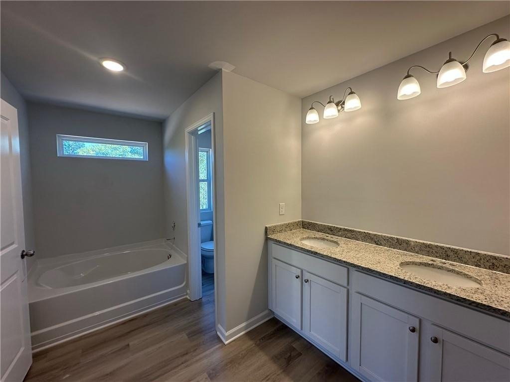 PRICE IMPROVEMENT! Search no further...Welcome home to Timberlands in Dallas, GA. Don't miss out, only a few opportunities left to make this great location, home and community yours in 30 days or less. Hurry for this newly constructed Adam plan on an unfinished daylight walk-out basement is priced to sell and won't last long. Enter into a two-story foyer with a separate dining room and living room. This open-concept floor plan design is great for entertaining family and friends in the great room with views and easy access to the kitchen and breakfast area! Features include 36" soft-close cabinets, stainless steel appliances, LED lighting throughout, granite countertops in the kitchen and full bathrooms, LVP flooring throughout the main floor plus wet areas, plush textured carpeting in bedrooms and closets to name a few. Upstairs the large primary ensuite has lots of natural lighting with dual vanity, separate shower, tub, and water closet. Secondary bedrooms are spacious with sizable closet. Great Homebuyer incentive available with the use of the affiliated mortgage lender. Please note some photos are stock images used for illustration purposes only.