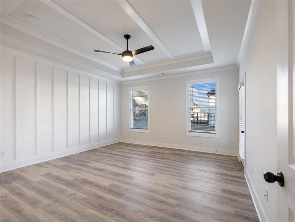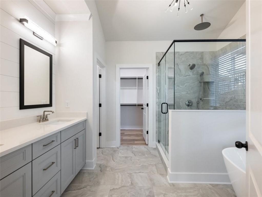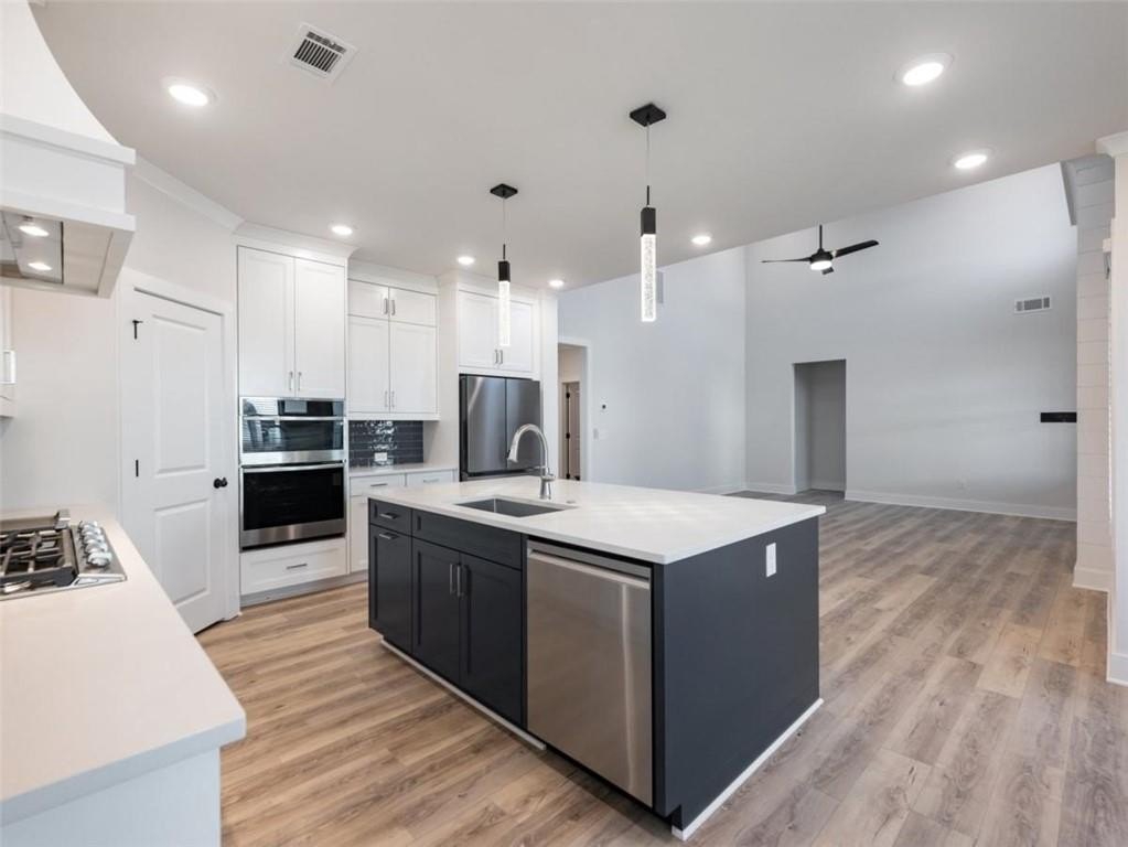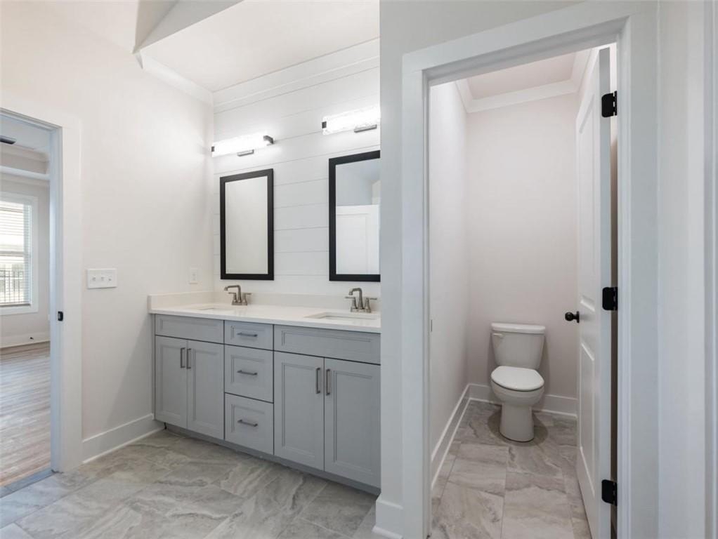 Built by SPI Homes. MOVE IN READY! MASTER ON MAIN WITH SPACIOUS BACKYARD! Homesite 27 - Kelly floor plan. This move-in-ready home offers 2,988 sq. ft. of beautifully designed living space, featuring 4 bedrooms, 3 bathrooms, 2 laundry rooms, and a spacious 3-car garage. Enhanced with builder upgrades, this home showcases LVP flooring throughout and an upgraded lighting package for a sophisticated touch. The main-level primary suite is a luxurious retreat with a soaking tub, quartz countertops, an oversized walk-in closet, and direct access to the main floor laundry room with built-in cabinets. The open-concept, two-story living room boasts soaring ceilings, a decorative electric fireplace, and exquisite trim, flowing seamlessly into the gourmet kitchen with quartz countertops, pendant lighting, soft-close cabinetry, Samsung stainless steel appliances including a refrigerator, a gas cooktop with a pot filler, and a decorative vent hood. Sliding glass doors from the breakfast area lead to an oversized covered patio, perfect for outdoor living. Upstairs, you'll find two additional bedrooms, a large loft, and a second laundry room for added convenience. Thoughtfully designed with high-end finishes like judges paneling, shiplap, crown molding, and wood trim accent walls, this home is located in the vibrant Hosch Reserve community, offering amenities such as a pool, cabana, and pickleball courts. Ideally situated in the sought-after Seckinger High School district, this property provides a peaceful setting just off Old Thompson Mill Road. $10K Incentive with use of Preferred lender! *Secondary stock photos. Use GPS Waze or Apple Maps: 3105 Old Thompson Mill Rd.
