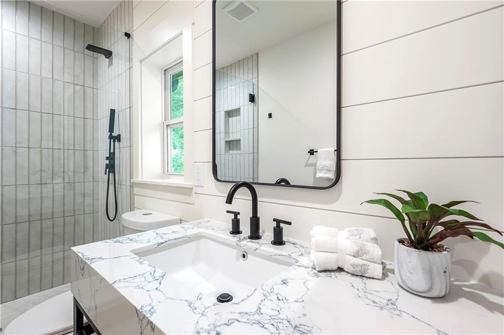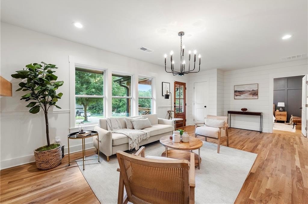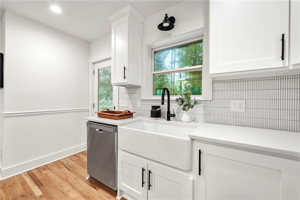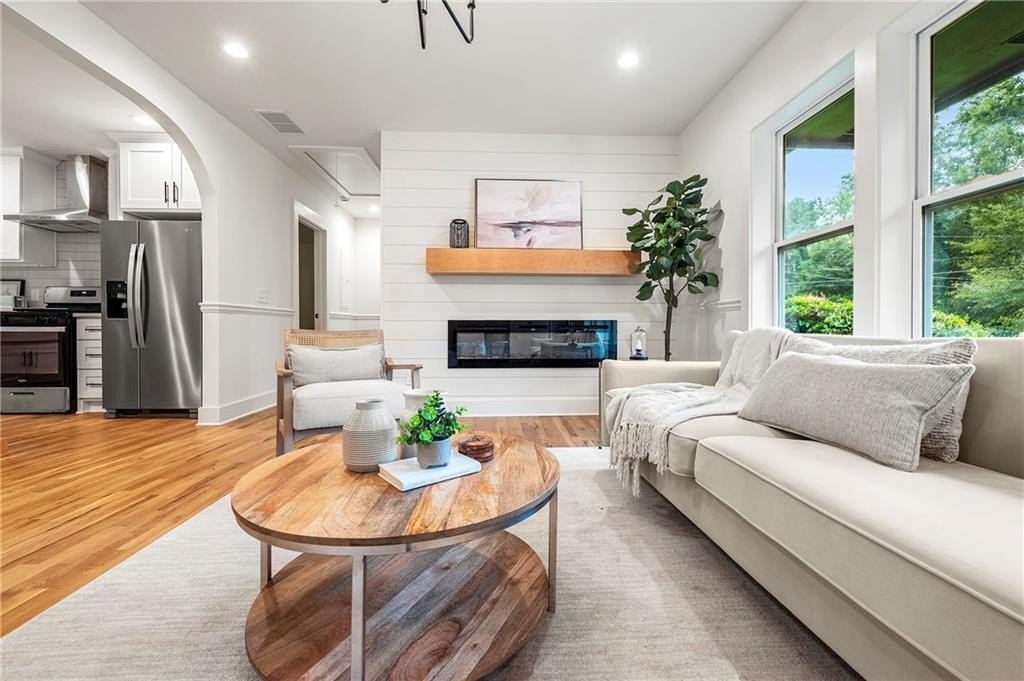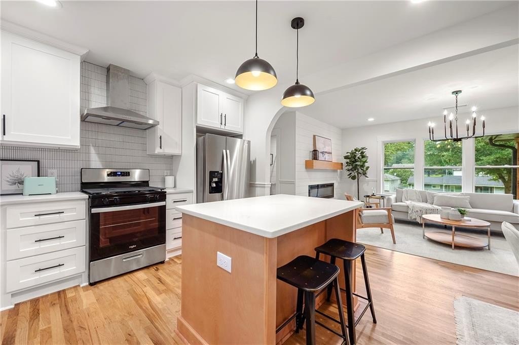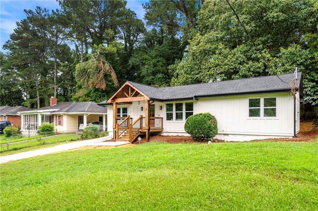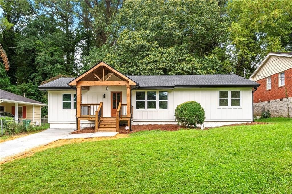 Welcome to your  Charming Ranch Dream Home where Elegance meets Functionality, situated on a spacious lot where Charm meets Modern Convenience. This one level residence offers easy living with an open floor plan, windows that flood the space with natural light. Beautiful Hardwood Floors throughout. Cozy Living Area with a decorative electric powered glass fire place; a functional kitchen with an island, New SS Appliances, ample stone counter space and white cabinets. Generously sized bedrooms, walk-in closet in the master. Bathrooms with sub-way tiles, master with double vanities. Backyard is a true retreat, lush greenery for outdoor entertainment. With its convenient single story layout near East Lake & Charlie Yates golf course, Barker Bryant Memorial & Shoal Creek Parks is move-in-ready condition. Enjoy the Unique districts of Edgewood, Kirkwood & Ponce City Market known for their community feel and local amenities. Convenient access to Downtown Decatur, offering a vibrant urban lifestyle with shops, restaurants, and cultural attractions. Quick access to major Interstate leading to Hartsfield-Jackson International Airport & Mercedes Benz Stadium making travel a breeze. Don't miss the chance to make this Charming Ranch as a first-time home buyer or those looking to down size as your New Home.