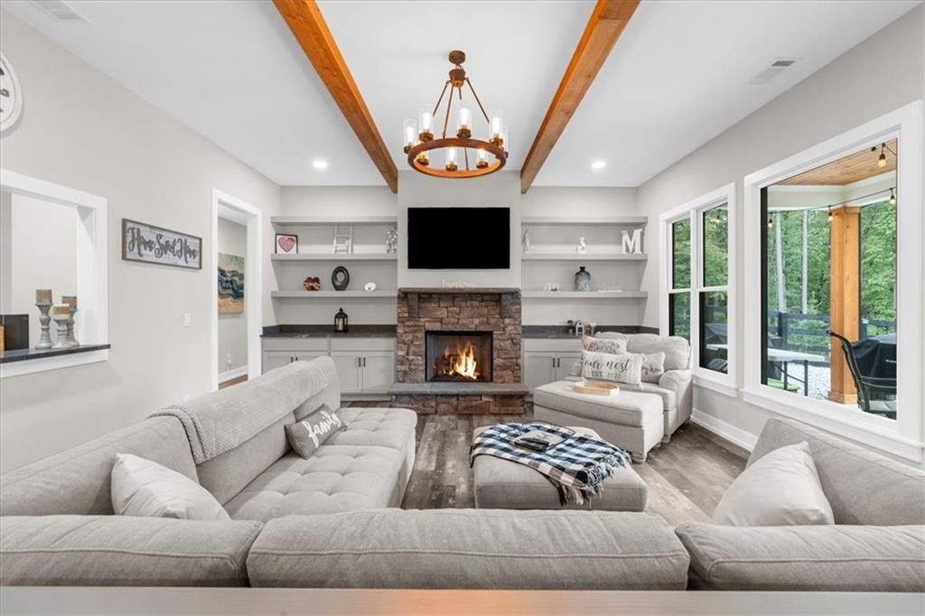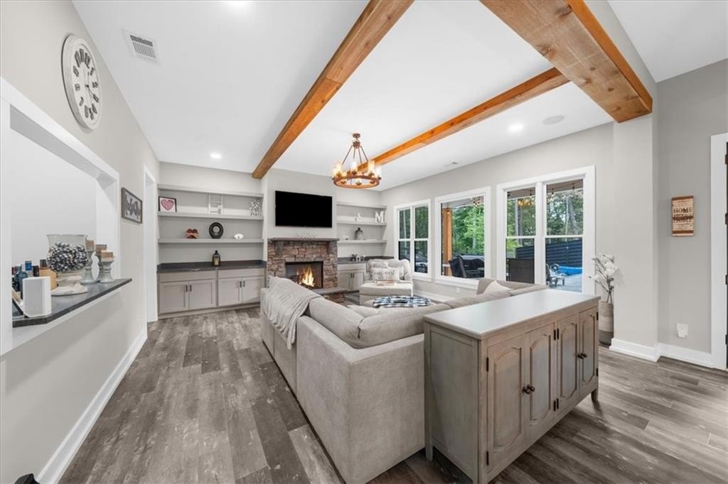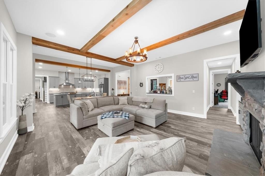 Welcome to 37 Pigeon Creek Drive. A true one-of-a-kind custom-built ranch home, with an upgrade list that goes for miles! Hard to find 5 bedroom & 3.5-bathroom ranch with over 4k sq.ft. of living space to enjoy. Sitting on 2.26 +/- private acres. As you walk up to the home you are welcome by the oversized covered front porch with double door entry. As you enter the home, you enter into the oversized entry foyer, with private den/office to the right with barndoors, and the formal dining room to the left. As you flow back into the home, you enter the open concept area with family room with bookcases, fireplace, beams, custom lighting and views to the backyard. The eat- in kitchen is stunning with Forno appliances, a custom walk-in pantry with wood shelving, an overside island, custom cabinets & level 4 custom granite. This home is a split floorplan. The left side of the home features the primary bedroom with fireplace, and custom bathroom with custom closet, as well as a guest 1/2 bath and a large laundry room and mud room area. There is also access to the bonus bedroom upstairs currently used as a home office with 2 walk-in closets. You also have access to the 3-car side entry garage. The left side of the home features 3 bedrooms, one with a private bathroom, and one currently used as a media room with custom doors to give access to the backyard! This room makes a great indoor/outdoor space to your outdoor living. Hall bath with double vanity also on the left of the home. There is a beautiful sunroom off the kitchen with new custom aluminum clad windows. This gives access to the covered back patio that leads out to your new in-ground heated saltwater pool with tanning ledge. Additional storage outback in the new shed, and tons of privacy with a custom wood fence in the backyard. All closets in the home are custom wood. There is a built in stereo system that services the family room and dining room. All new floors just installed, driveway just asphalted, new custom lighting, new garage doors. the home is serviced by a 6-ton split system on the main and a new 2.5 ton for upstairs. Tankless water heater, 330 gallon buried propane tank. The pool is app controlled with many features. All gutters have the leaf guard system. The home has the whole home Pest ban system. The windows have been tinted on the home. Gas fireplaces in the family room and primary bedroom. This is a true one-of-a-kind home, that you have to see in person to appreciate. There are so many upgrades and custom features to list about this home. Call today to learn more and book your private tour!