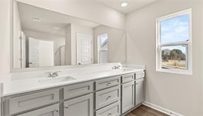 The "ASHTON FLOOR PLAN" offers 3 bedrooms, 2 full bathrooms in a two-story home covering 1,950 sq feet. There is a rear entry 2-car garage with space for vehicles and some extra storage plus access from the back directly into a convenient mud room plus and adjoining powder room. From the inviting front porch, you are greeted by the ultimate in open concept living. An expansive family room and casual dining combination offer the ideal space for entertaining and ensure everyone stays connected. The adjoining kitchen includes contemporary cabinetry, granite countertops, stainless steel appliances and a generous pantry. There is also bar stool seating at the island. On the second level, there is a generous flex space at the top of the stairs that you can personalize as a home office or study area, gaming station or secondary living room. With split bedrooms, you'll find the primary suite spans the entire width of the back of the home with dual closets and an adjoining bath with double vanities and a shower. There are two spacious secondary bedrooms on the front of the home, each with ample closet space. A shared hall bath and convenient laundry make it complete. Our homes are not only well designed, they're also smart, as each comes standard with our industry-leading suite of smart home technology that allows you to monitor your home. Photos used for illustrative purposes and may not depict actual home. Move in Ready Now!