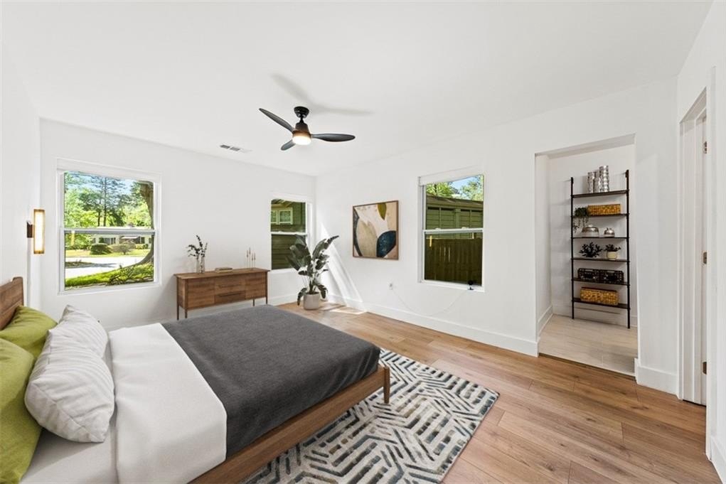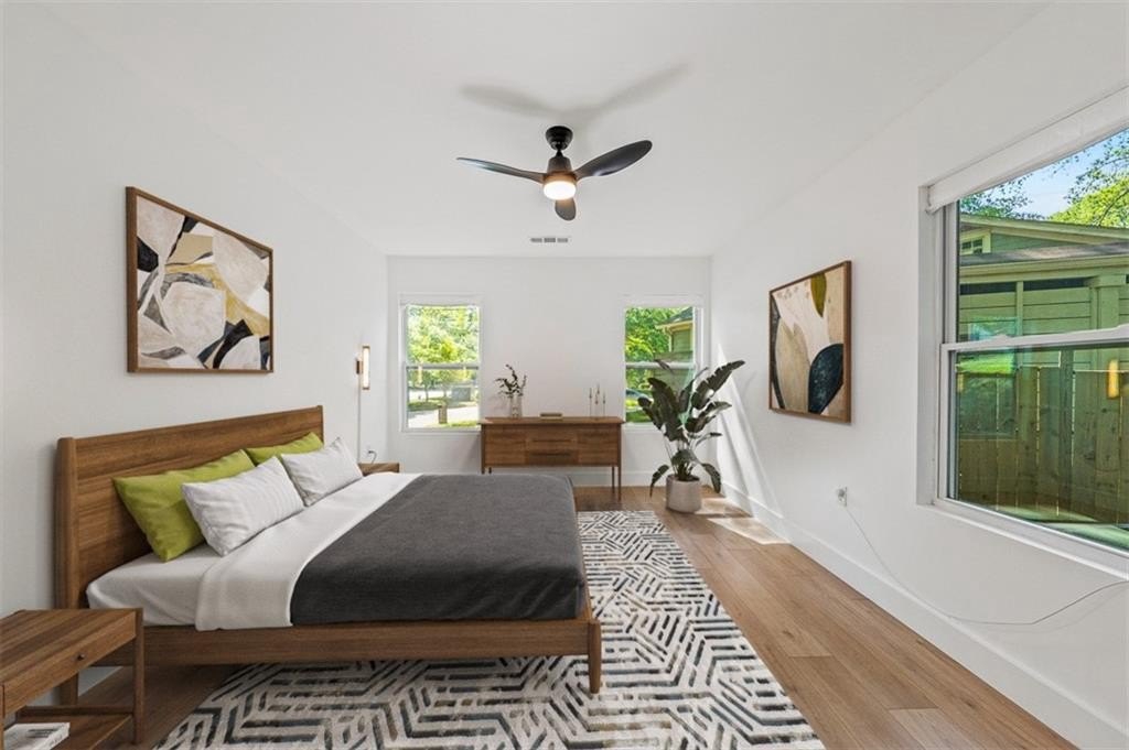 Move into this completely renovated home in the Venetian Hills area of Southwest Atlanta for 0% down payment and fully furnished and decorated as seen!  The open floor plan with soaring ceilings seamlessly connects the kitchen, living room, and dining area. The kitchen is a chef's delight with exotic leathered granite countertops, a workstation sink, new appliances, wood design range hood with motion activated vent, and a large island for seating and storage. This home offers 3 bedrooms and 3 full bathrooms PLUS a large versatile flex room that can be used as a 4th bedroom, home office, gym, or media room- whatever suits your needs! The light-filled primary bedroom is a true retreat with a walk in closet and a luxurious en-suite bathroom. The primary bath features double sinks, a large tiled shower with two shower heads and sleek vanity lighting. Next to the primary bedroom are two more rooms, the renovated hall bathroom including a tub, and a laundry room with upper and lower cabinet storage. Don’t miss the additional bedroom and third full en-suite bathroom hiding in plain sight behind the recessed bookshelf door in the living room! From the kitchen, open the retractable screen door to enjoy relaxing and entertaining on the brand new back deck built with durable Trex composite material. Throughout the home are new wide plank laminate floors, recessed lighting, and fresh interior and exterior paint ensuring low maintenance for years to come. All furniture and decorations are negotiable with the property. Extremely convenient location in close proximity to the Westside Atlanta Beltline which offers residents the excitement and energy of urban living combined with the beauty and tranquility of green spaces. The neighborhood is located close to major highways, Cascade Springs Nature Preserve, Mercedes Benz Stadium, Lee + White Food Hall, and Centennial Yards; a sprawling entertainment, retail and restaurant experience expected to be the central hub for the 2026 FIFA World Cup. Take action now and secure your place in this vibrant community that is slated for future growth and success. "Walk through" the house with the 3-D virtual tour!