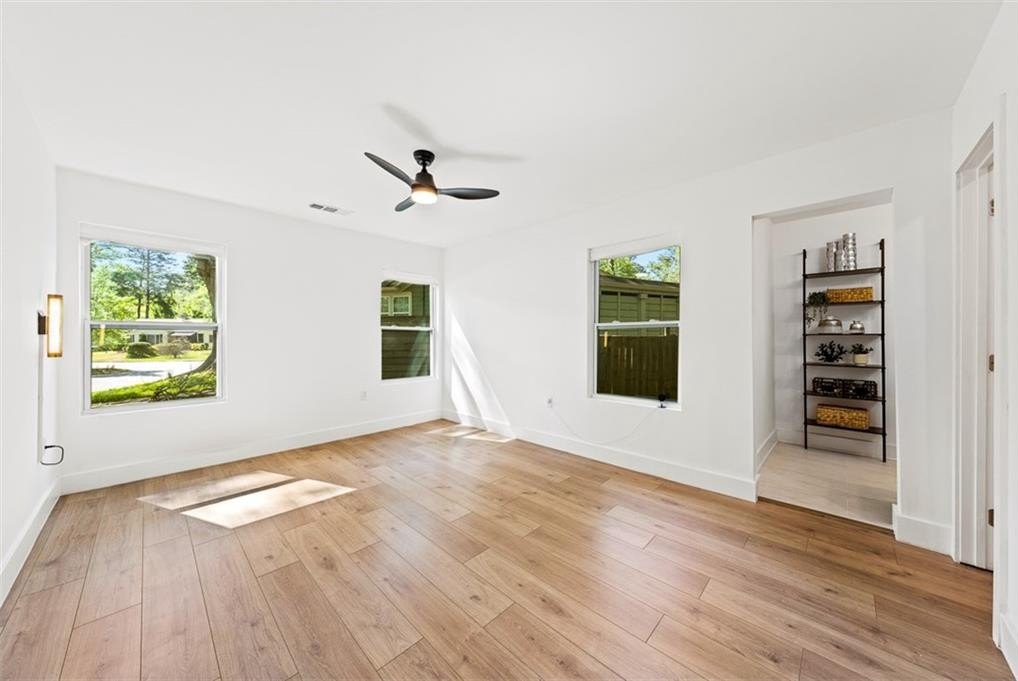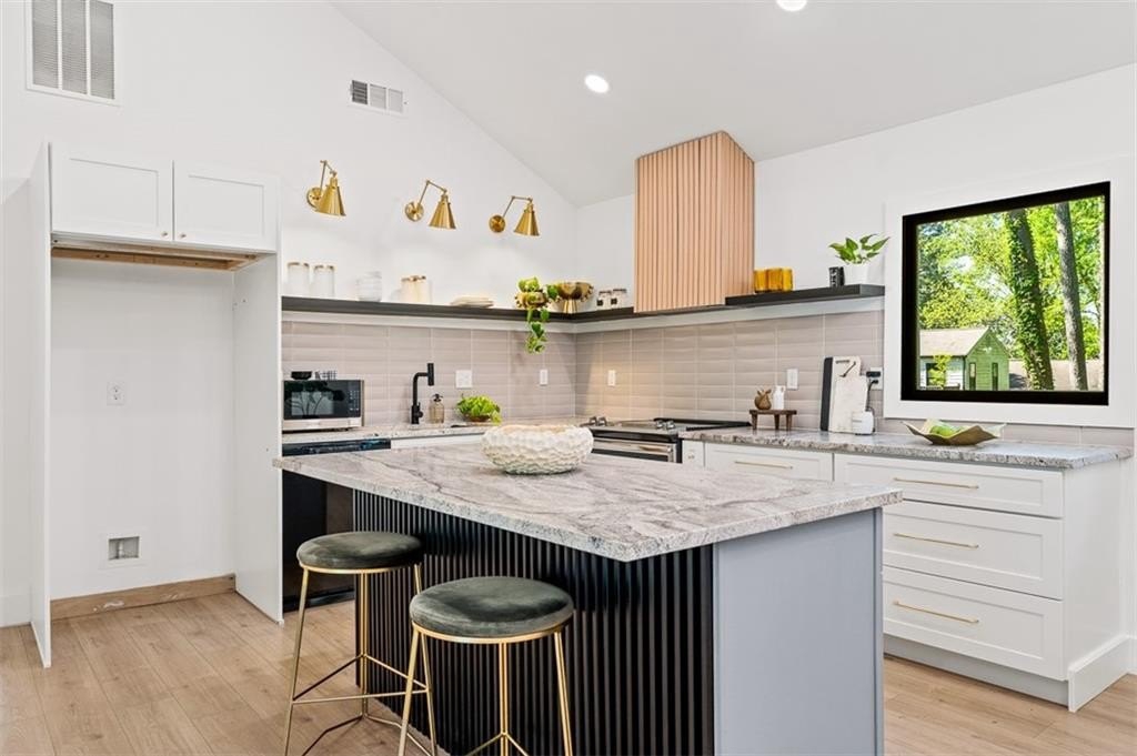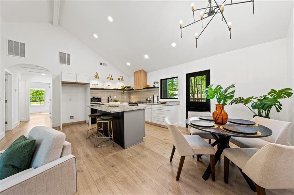 Move into this completely renovated home in the Venetian Hills area of Southwest Atlanta for 0% down payment and fully furnished and decorated as seen! The open floor plan with soaring ceilings seamlessly connects the kitchen, living room, and dining area. The kitchen is a chef's delight with exotic leathered granite countertops, a workstation sink, new appliances, wood design range hood with motion activated vent, and a large island for seating and storage. This home offers 3 bedrooms and 3 full bathrooms PLUS a large versatile flex room that can be used as a 4th bedroom, home office, gym, or media room- whatever suits your needs! The light-filled primary bedroom is a true retreat with a walk in closet and a luxurious en-suite bathroom. The primary bath features double sinks, a large tiled shower with two shower heads and sleek vanity lighting. Next to the primary bedroom are two more rooms, the renovated hall bathroom including a tub, and a laundry room with upper and lower cabinet storage. Don't miss the additional bedroom and third full en-suite bathroom hiding in plain sight behind the recessed bookshelf door in the living room! From the kitchen, open the retractable screen door to enjoy relaxing and entertaining on the brand new back deck built with durable Trex composite material and the fully fenced backyard! Throughout the home are new wide plank laminate floors, recessed lighting, and fresh interior and exterior paint ensuring low maintenance for years to come. All furniture and decorations are negotiable with the property. Extremely convenient location in close proximity to the Westside Atlanta Beltline which offers residents the excitement and energy of urban living combined with the beauty and tranquility of green spaces. The neighborhood is located close to major highways, Cascade Springs Nature Preserve, Mercedes Benz Stadium, Lee + White Food Hall, and Centennial Yards; a sprawling entertainment, retail and restaurant experience expected to be the central hub for the 2026 FIFA World Cup. Take action now and secure your place in this vibrant community that is slated for future growth and success. "Walk through" the house with the 3-D virtual tour!