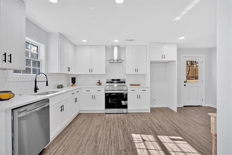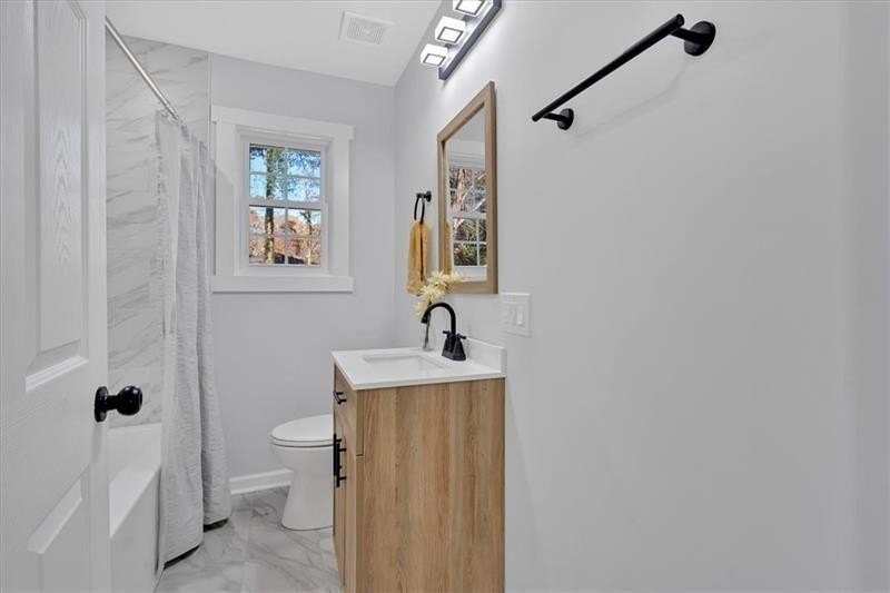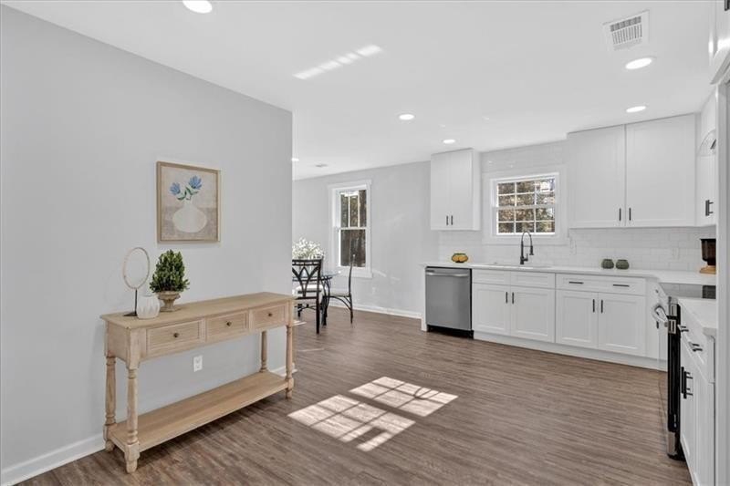 Stunningly Renovated Ranch Home with Spacious Backyard. Welcome to this beautifully remodeled 3-bedroom, 2-bathroom ranch-style home, where modern elegance meets timeless charm. From the moment you step inside, you’ll be captivated by the open-concept design, natural light, and high-end finishes throughout. The heart of the home is the designer kitchen, complete with quartz countertops, sleek cabinetry, and brand-new stainless steel appliances. Flow seamlessly into the inviting living and dining areas, perfect for entertaining or relaxing with family. The private owner’s suite is a true retreat, featuring a luxurious en-suite bathroom with a walk-in shower, beautiful tile work, and contemporary fixtures. Two additional bedrooms provide flexibility for guests, an office, or a growing family, while the second full bathroom offers both style and functionality. Step outside to your oversized, fully fenced backyard—a true haven for outdoor living. Whether you’re hosting summer barbecues, gardening, or simply enjoying the serenity, this space has endless possibilities.