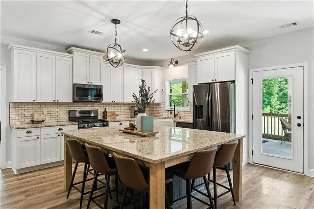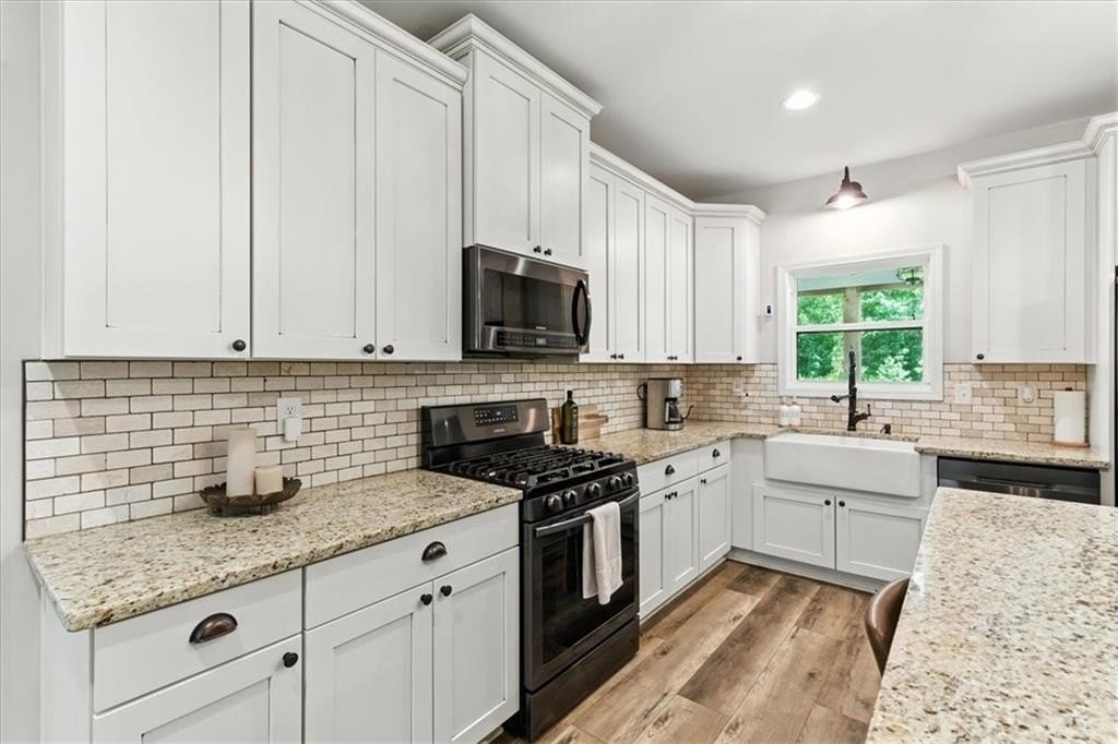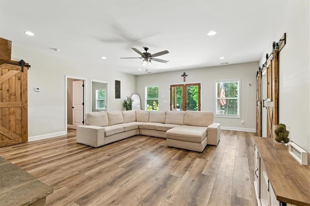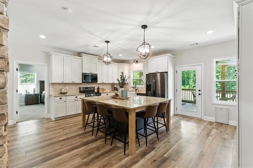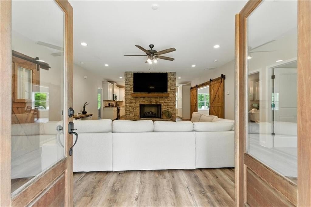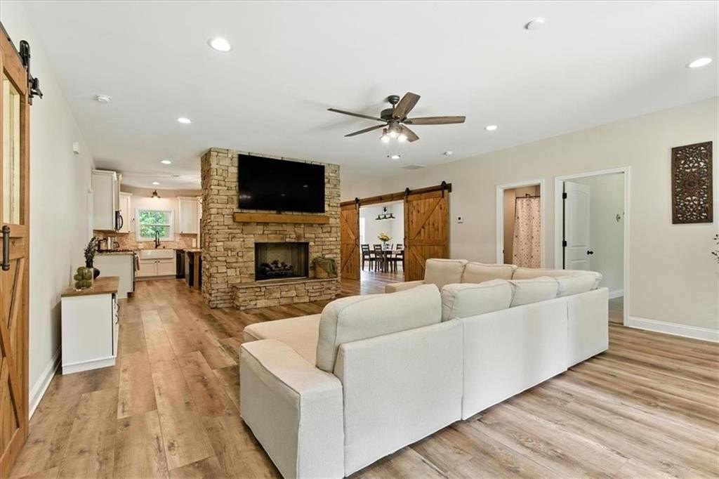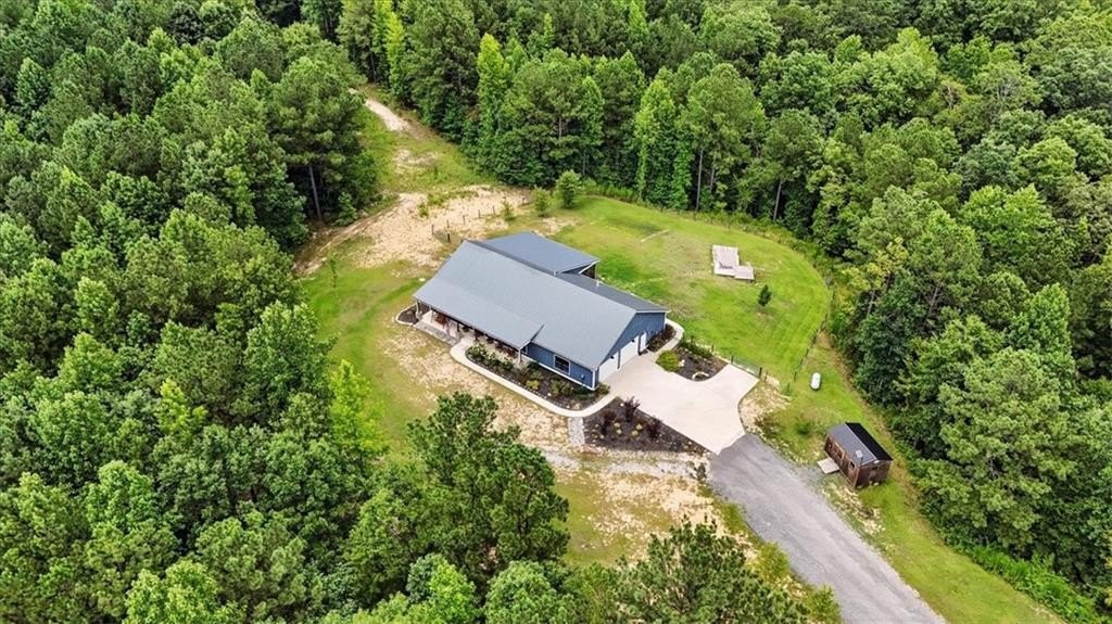 Welcome to 1235 Williams Rd—a true hidden gem in North Paulding offering peaceful seclusion, modern conveniences, and endless possibilities on 10.5 private acres with a gated entrance, dedicated RV parking space with an electrical hookup, making packing, unloading, or accommodating out-of-town guests easy and convenient. Outdoor lovers will appreciate private access to Pumpkinvine Creek, perfect for fishing or playing in the water right on your own land. Built in 2020, this stepless ranch home features 3 bedrooms, 2 full bathrooms, and a large flex room with a wet bar perfect for a home office, game room, or oversized dining space. The bright, open-concept layout centers around a stunning kitchen with a huge island, granite countertops, stainless steel appliances, and a stacked stone fireplace. Enjoy the practicality of a large laundry room with its own sink, perfect for pre-soaking or quick clean-ups. The primary suite offers plenty of room for large furniture and includes a luxurious en suite bathroom with an oversized tile shower, dual-sink vanity, and a walk-in closet. Enjoy the efficiency of a tankless water heater and the peace of mind that comes with filtered well water. No need to worry about internet access—fiber and high-speed internet service is already available! Step out to the screened back porch and enjoy views of your fenced backyard with frequent visits from deer, turkey, and other wildlife. The oversized 10’ garage doors provide ample space for trucks, recreational vehicles, or storage. Whether you're looking for complete privacy, building a mini farm, or a property ready for entertaining—this one checks all the boxes.