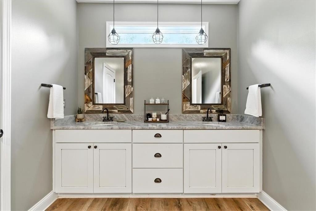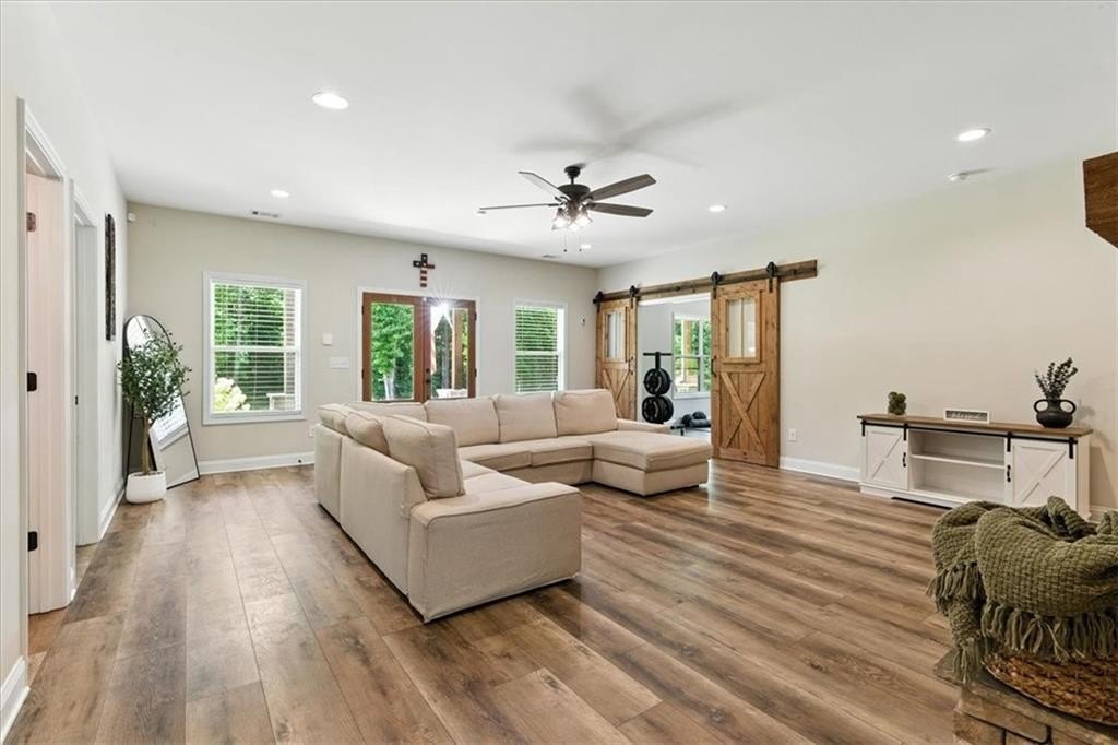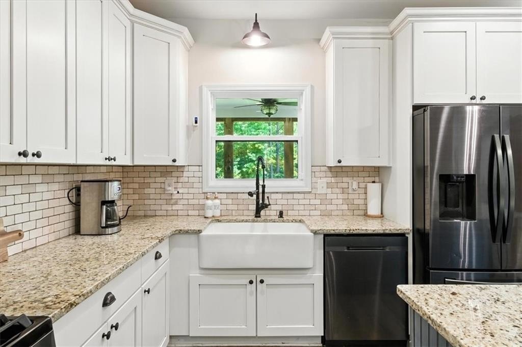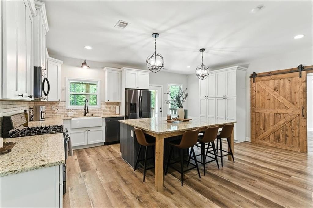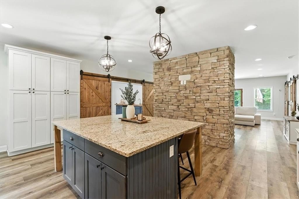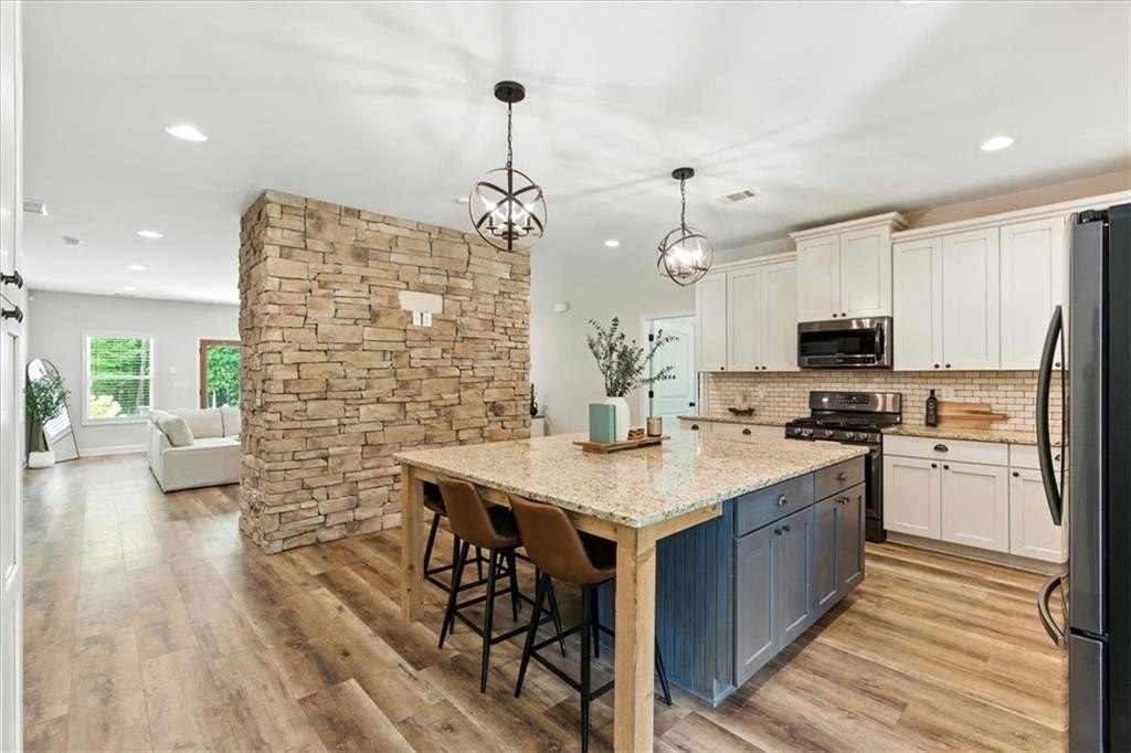 Welcome to 1235 Williams Rd—a true hidden gem in North Paulding offering peaceful seclusion, modern conveniences, and endless possibilities on 10.5 private acres with a gated entrance, dedicated RV parking space with an electrical hookup, making packing, unloading, or accommodating out-of-town guests easy and convenient. Outdoor lovers will appreciate private access to Pumpkinvine Creek, perfect for fishing or playing in the water right on your own land. Built in 2020, this stepless ranch home features 3 bedrooms, 2 full bathrooms, and a large flex room with a wet bar perfect for a home office, game room, or oversized dining space. The bright, open-concept layout centers around a stunning kitchen with a huge island, granite countertops, stainless steel appliances, and a stacked stone fireplace. Enjoy the practicality of a large laundry room with its own sink, perfect for pre-soaking or quick clean-ups. The primary suite offers plenty of room for large furniture and includes a luxurious en suite bathroom with an oversized tile shower, dual-sink vanity, and a walk-in closet. Enjoy the efficiency of a tankless water heater and the peace of mind that comes with filtered well water. No need to worry about internet access—fiber and high-speed internet service is already available! Step out to the screened back porch and enjoy views of your fenced backyard with frequent visits from deer, turkey, and other wildlife. The oversized 10’ garage doors provide ample space for trucks, recreational vehicles, or storage. Whether you're looking for complete privacy, building a mini farm, or a property ready for entertaining—this one checks all the boxes.
