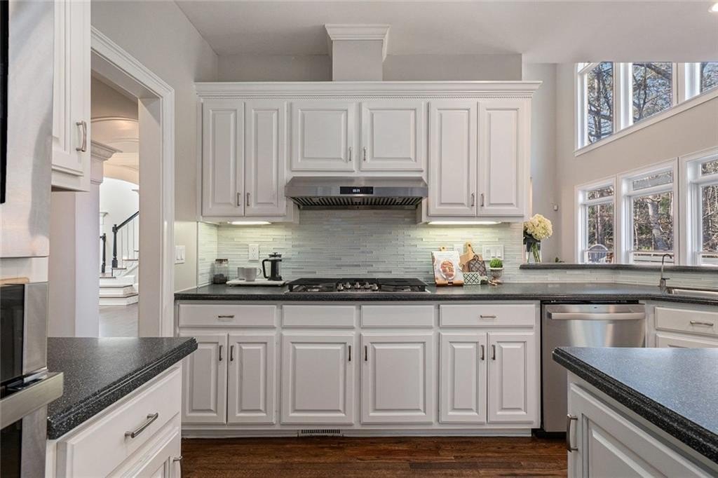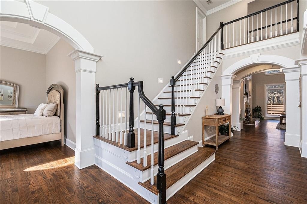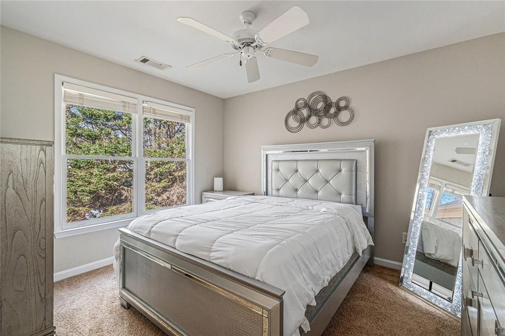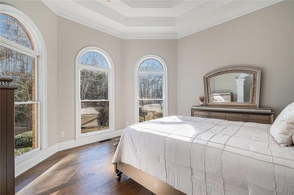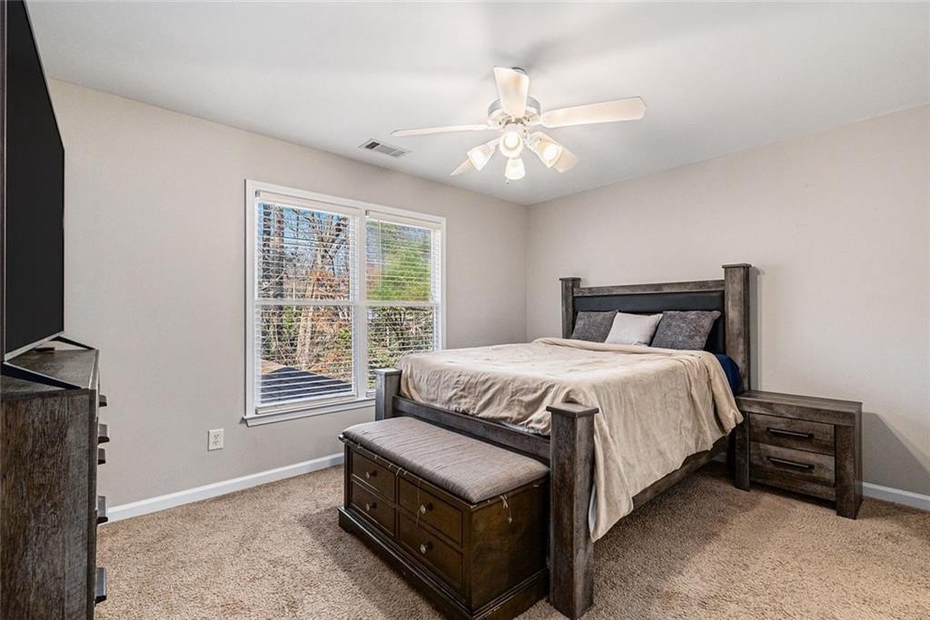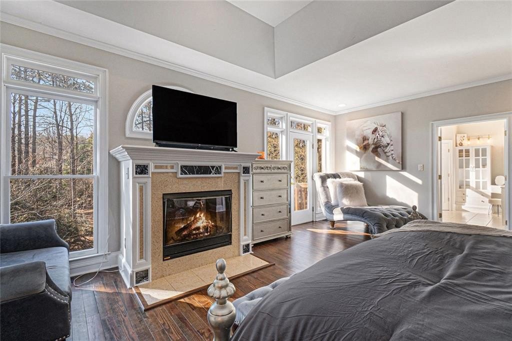Welcome to your ideal retreat in the heart of Flowery Branch, Georgia, just minutes from Lake Lanier, popular marinas, parks, golf courses, and the Atlanta Falcons Training Camp. Whether you're searching for a primary residence, vacation or summer home, corporate housing option, mid-term rental opportunity, or multi-generational living solution, this spacious and versatile estate delivers on comfort, flexibility, and location. With a recent price improvement, the opportunity to own in one of Flowery Branch’s most desirable lake-proximate communities is even more compelling. Situated on 1.22 private acres in an established swim and tennis community with low annual HOA dues, this three-sided brick home offers over 5,000 square feet of well-designed living space across three finished levels. Inside, you’re greeted by a grand two-story foyer, bright and open living spaces, and a traditional white kitchen with custom cabinetry, new appliances, walk-in pantry, and center island—perfect for everyday living and entertaining. The main-level primary suite offers a peaceful retreat with a cozy fireplace, private balcony with seasonal views of Lake Lanier, a spa-like bath featuring dual vanities, a soaking tub, glass-enclosed shower, and a spacious walk-in closet. Upstairs includes a large ensuite bedroom, two additional bedrooms with private vanities, and a flexible bonus room ideal for a home office, guest suite, or playroom. The fully finished terrace level adds valuable versatility, featuring a private entrance, industrial-style kitchen, two bedrooms, full bath, two large living areas, media or flex space, and ample storage—ideal for hosting extended family, guests, or generating rental income. Outdoor living includes multiple decks and patios with wooded privacy and potential for lake views depending on the season. The expansive backyard offers room to add a pool, garden, or outdoor kitchen, creating the perfect space for recreation and relaxation. The home is ideally located near multiple Lake Lanier access points, including Van Pugh Park just two minutes away off Gaines Ferry Road, Burton Mill Park four minutes away via Yacht Club Road, and the University Yacht Club, a private boating club, also just four minutes away. Additional nearby access options include Downtown Flowery Branch Marina, Aqualand Marina, Big Creek Boat Ramp, and Lanier Harbor Marina in the City of Buford. Just five minutes from I-985, this home offers convenient access to Historic Downtown Flowery Branch, Stonebridge Village, Lanier Islands Legacy Golf Course, and top-rated Hall County schools. Upscale dining, spa services, and wine tastings await just 25 minutes away at Château Élan Winery & Resort. Now attractively priced, this one-of-a-kind property offers exceptional value and access to the best of Flowery Branch and Lake Lanier. Schedule your private tour today!