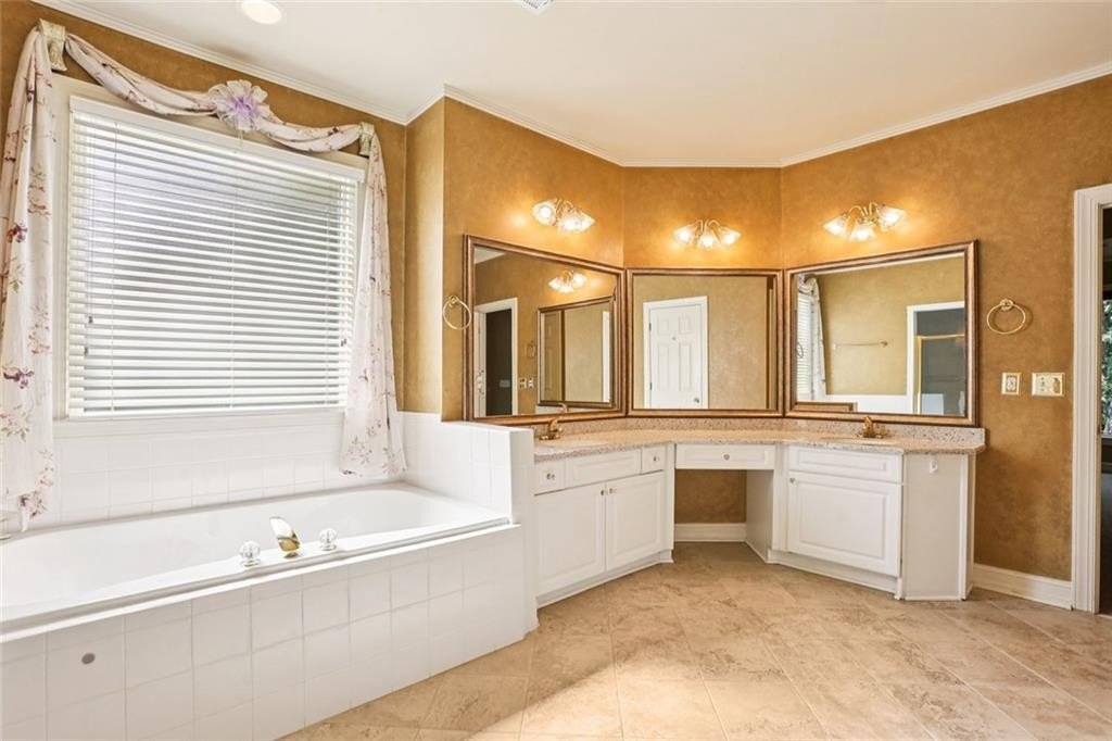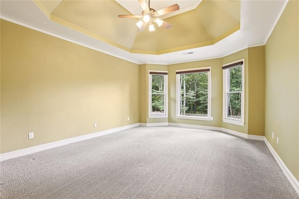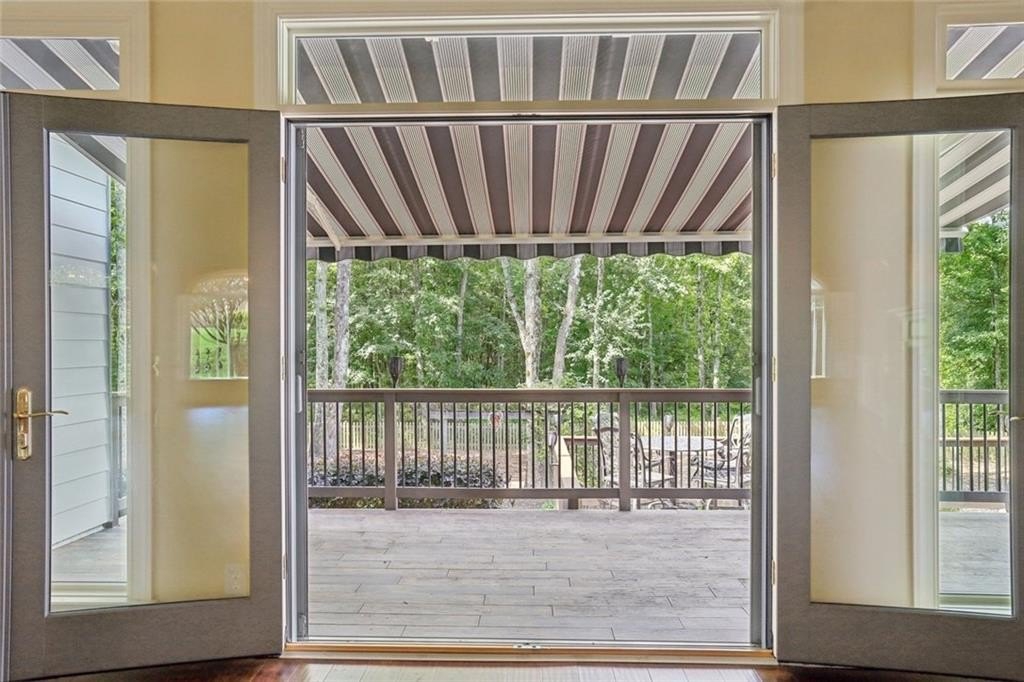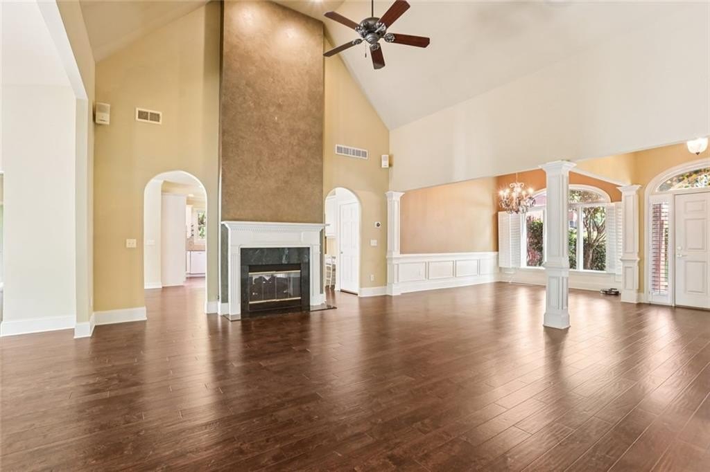 Countertops, Island, Breakfast Bar, Pantry and View to Cozy Keeping Area w/Fireplace. Vaulted Sun Room/Breakfast Area w/Ceiling Fan. Vaulted Great Room w/Dual Sided Fireplace, Curves Archway, Ceiling Fan and Deck Access and Fabulous Backyard Views. Spacious Master Suite with Dual Tray Ceiling, Fan, Bay Windows w/Spectacular Backyard Views. Master Spa w/Custom Dual Vanity, Granite Countertops, Tiled Floor, Jetted Tub, Separate Shower and Large Walk-in Closet. Large Den/Office w/French Doors and Coffered Ceiling. Formal Dining Room w/Column Accents, Elevated Tray Ceiling and Chandelier. The Backyard is Perfect for and Relaxing with It's Two Oversized Decks and Electric Sunsetter Deck Awning. Relish in Your Personal Oasis as You Overlook the Private Fenced Backyard with Beautiful Scenic Views!