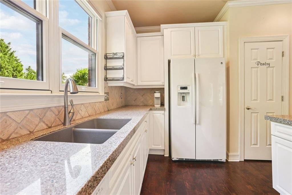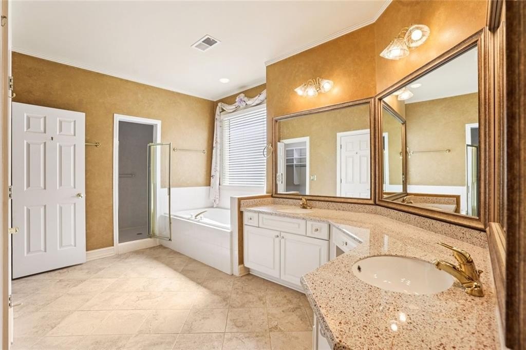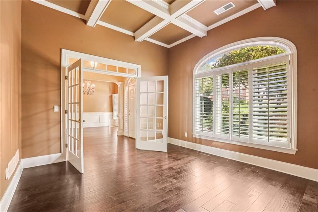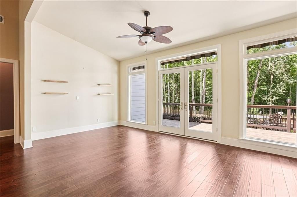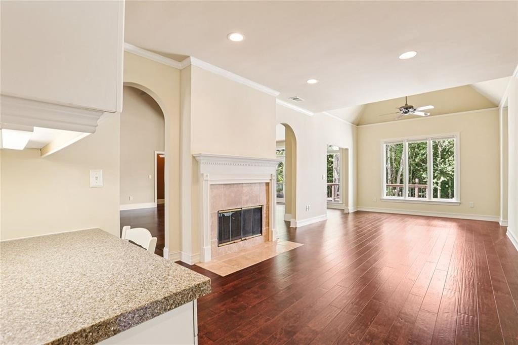 Countertops, Island, Breakfast Bar, Pantry and View to Cozy Keeping Area w/Fireplace. Vaulted Sun Room/Breakfast Area w/Ceiling Fan. Vaulted Great Room w/Dual Sided Fireplace, Curves Archway, Ceiling Fan and Deck Access and Fabulous Backyard Views. Spacious Master Suite with Dual Tray Ceiling, Fan, Bay Windows w/Spectacular Backyard Views. Master Spa w/Custom Dual Vanity, Granite Countertops, Tiled Floor, Jetted Tub, Separate Shower and Large Walk-in Closet. Large Den/Office w/French Doors and Coffered Ceiling. Formal Dining Room w/Column Accents, Elevated Tray Ceiling and Chandelier. The Backyard is Perfect for and Relaxing with It's Two Oversized Decks and Electric Sunsetter Deck Awning. Relish in Your Personal Oasis as You Overlook the Private Fenced Backyard with Beautiful Scenic Views!