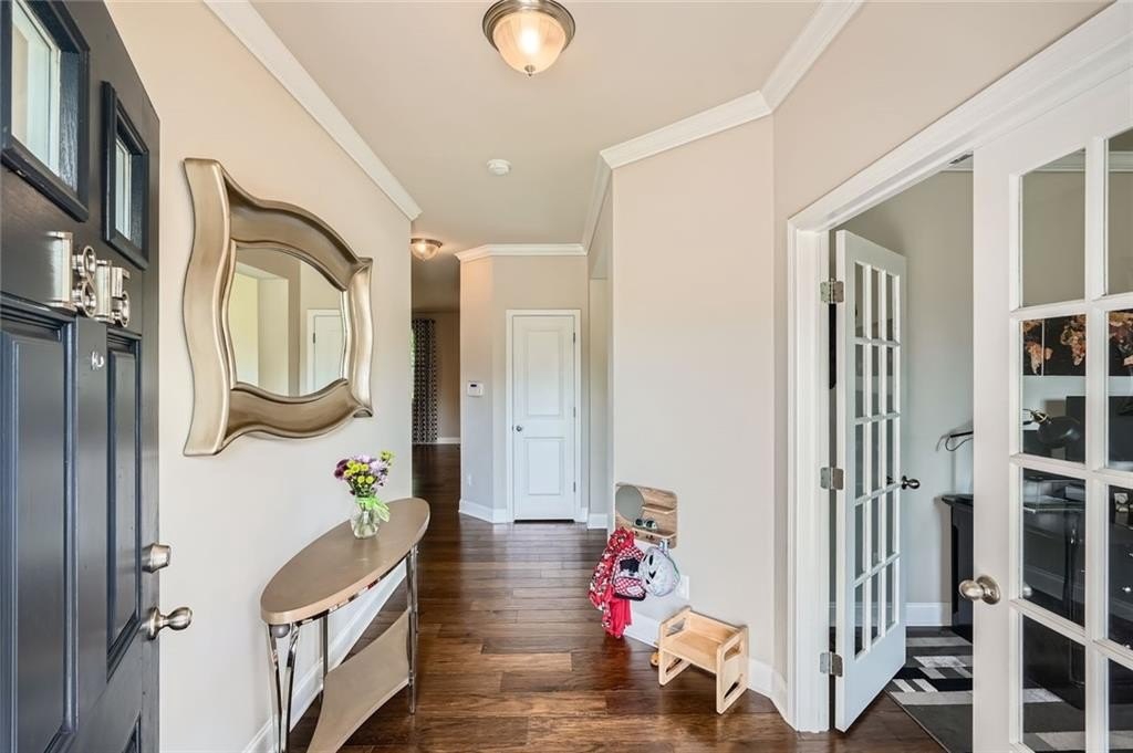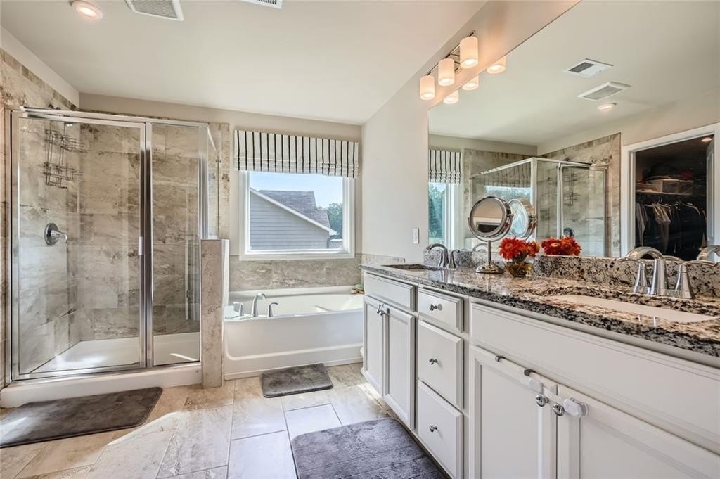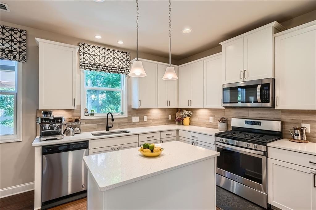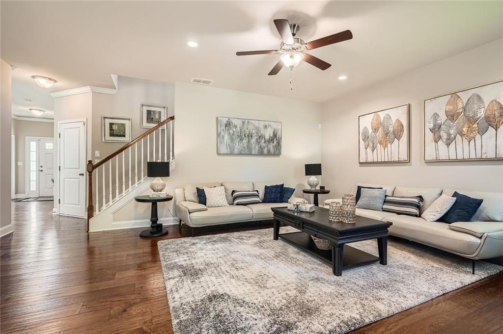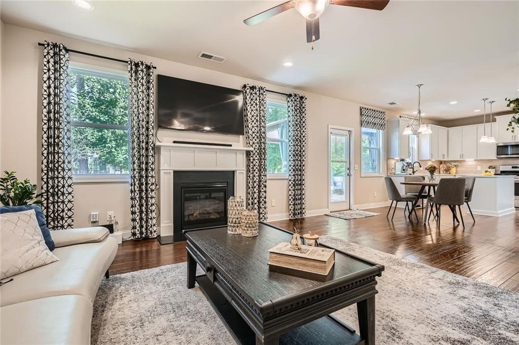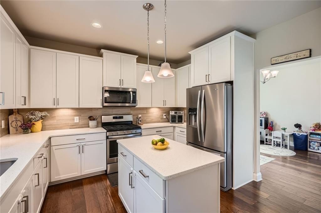 Immaculate 4-bedroom, 2.5-bath Craftsman-style home located in the sought-after Milford Point community. Built in 2019, this home offers a modern, open-concept layout with thoughtful upgrades throughout. The spacious kitchen is designed for both function and style, featuring modern white cabinetry, solid surface counters, a center island, and a view to the living room—perfect for everyday living and entertaining. Crown molding, recessed lighting, and hardwood floors add warmth and sophistication on the main level, while the upstairs layout includes four bedrooms, including an oversized primary suite with tray ceilings, dual vanities, a soaking tub, and walk-in closets.