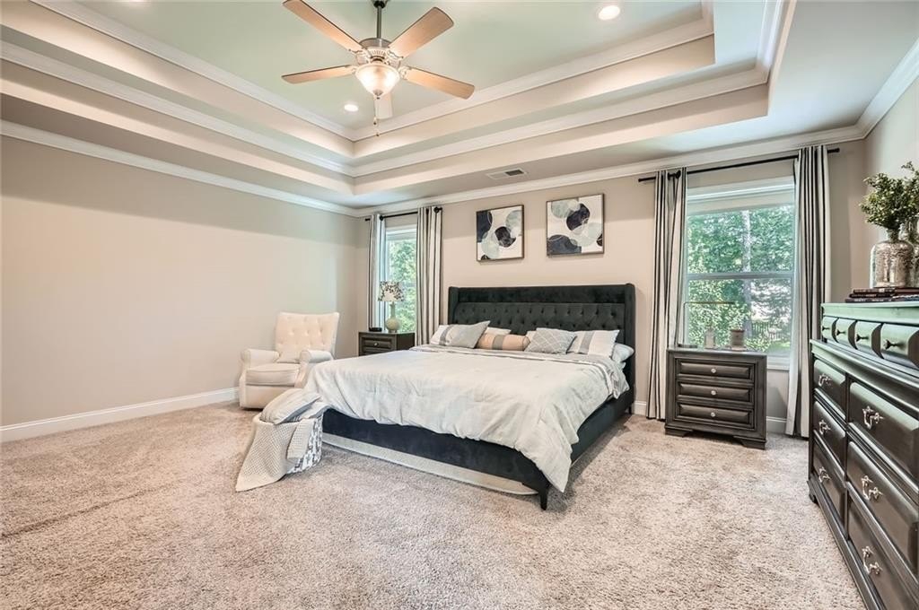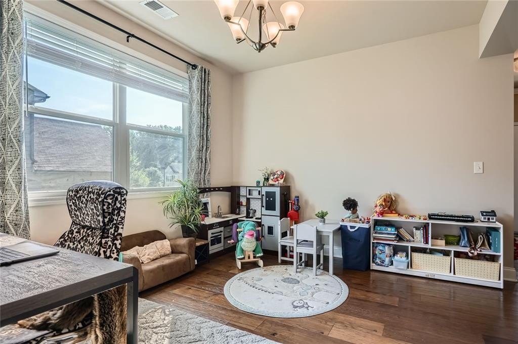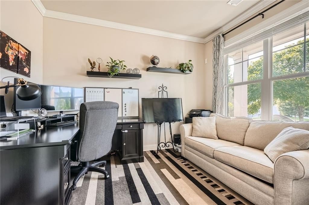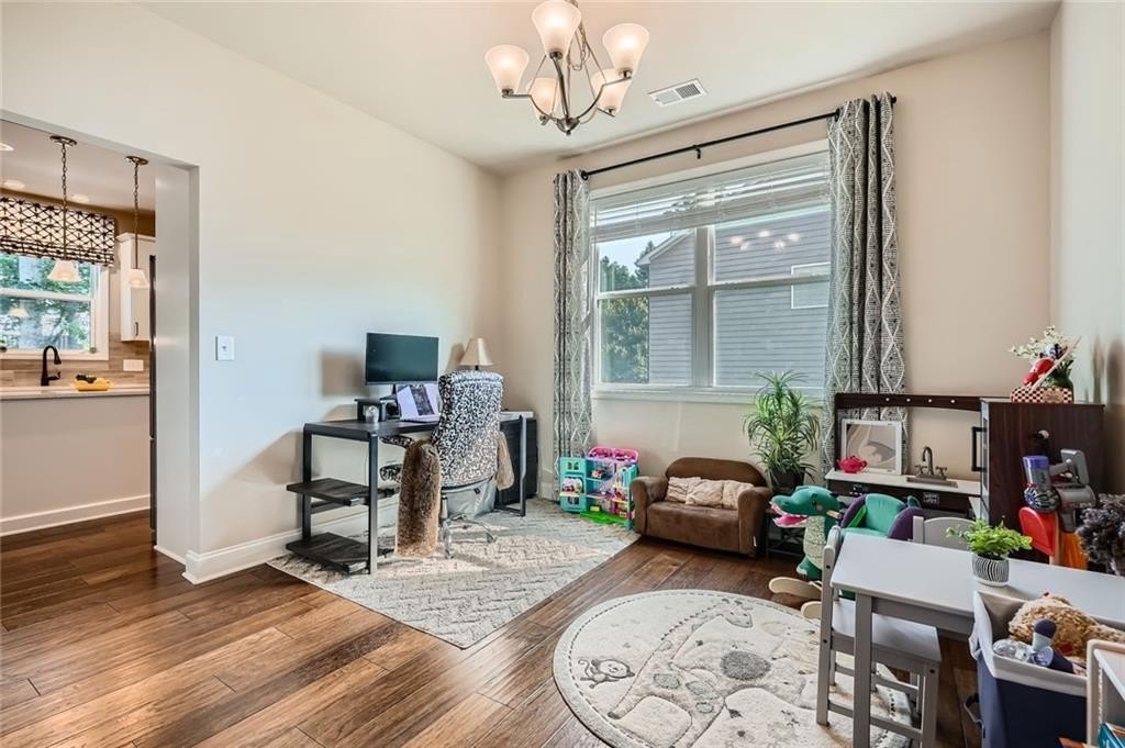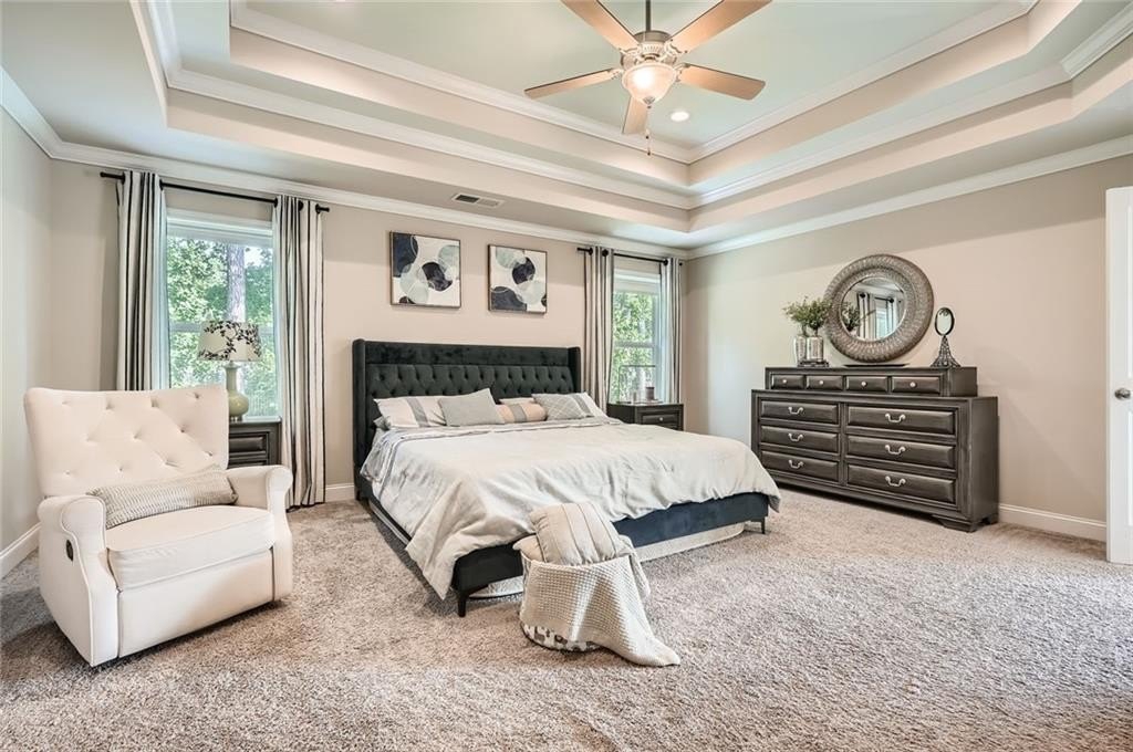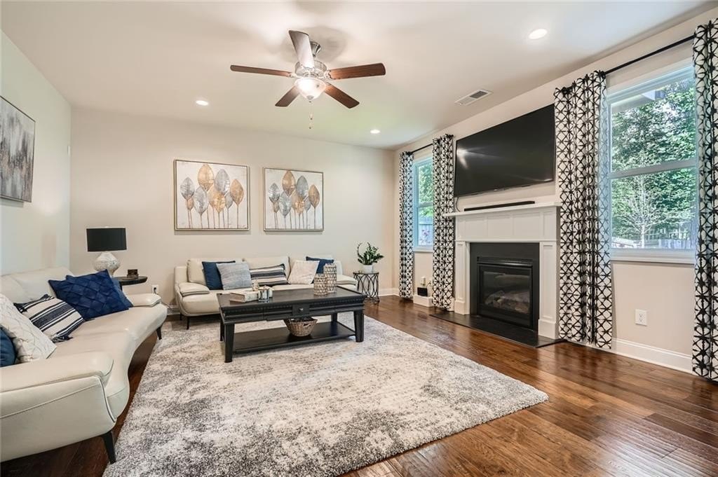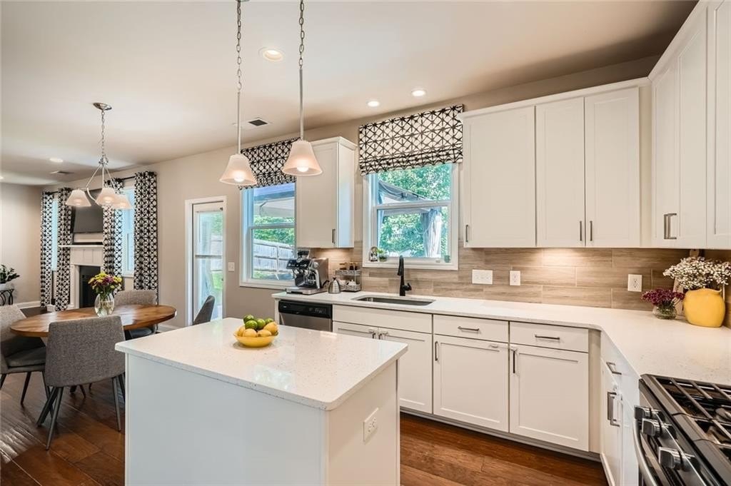Immaculate 4-bedroom, 2.5-bath Craftsman-style home located in the sought-after Milford Point community. Built in 2019, this home offers a modern, open-concept layout with thoughtful upgrades throughout. The spacious kitchen is designed for both function and style, featuring modern white cabinetry, solid surface counters, a center island, and a view to the living room—perfect for everyday living and entertaining. Crown molding, recessed lighting, and hardwood floors add warmth and sophistication on the main level, while the upstairs layout includes four bedrooms, including an oversized primary suite with tray ceilings, dual vanities, a soaking tub, and walk-in closets.