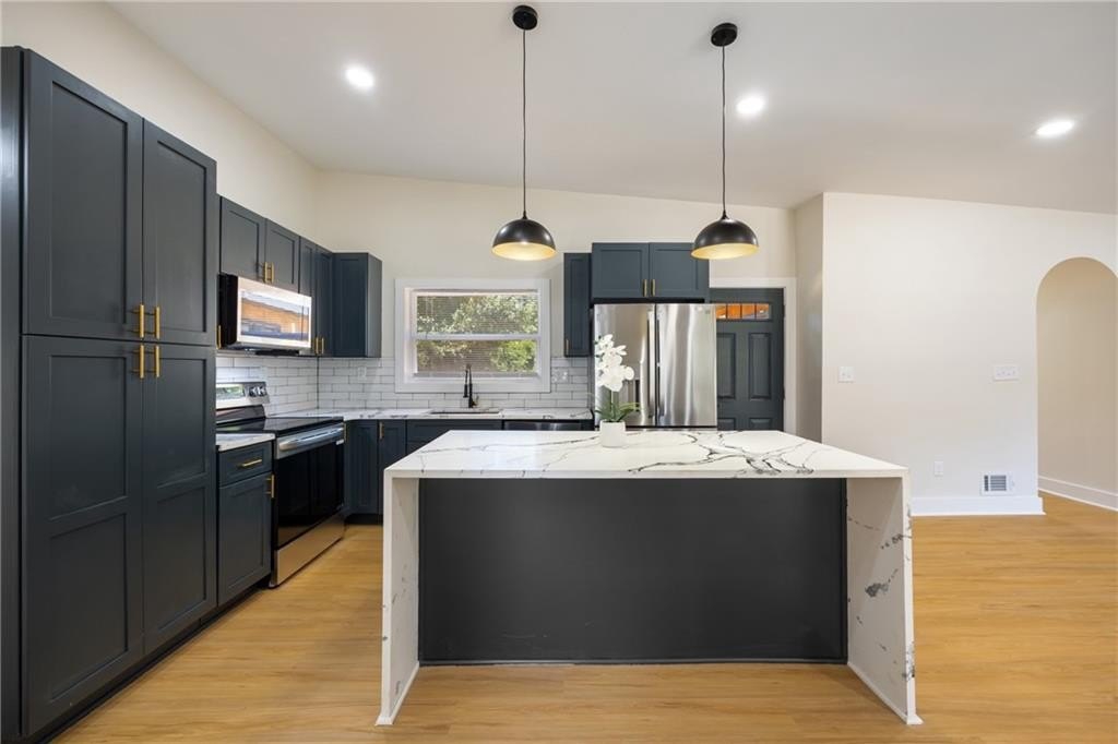 Step into Modern Luxury with this Fully Renovated gem in sought-after Gresham Park. This home is truly a rare find! The sun-filled 4-side Brick Ranch has all the right details and features you’ll appreciate for years to come. Designed to impress, the open-concept layout boasts beautiful Hardwood floors and a dream Kitchen with Quartz Countertops, a Waterfall Island, Stainless Appliances, and Soft-Close Cabinetry. New roof, HVAC, Electrical, Energy-efficient Windows, and more make it feel like a brand new home. The Primary Suite is a true retreat with its own deck entrance, Cozy Fireplace and a Custom Walk-through Closet. The Luxurious Primary Bathroom includes an Oversized Shower with stunning tile work, Dual vanities, Soaking tub, and Dual shower heads. Enjoy endless opportunities to entertain with an oversized deck, and fenced yard, plus a basement for storage or future living space. Just minutes from I-20, I-285, East Atlanta, East Atlanta Village, Downtown Decatur, Downtown Atlanta, the new Halidom Eatery-Food Hall, Parks, Walking Trails, Restaurants and more! Don’t miss out — schedule your showing today!
