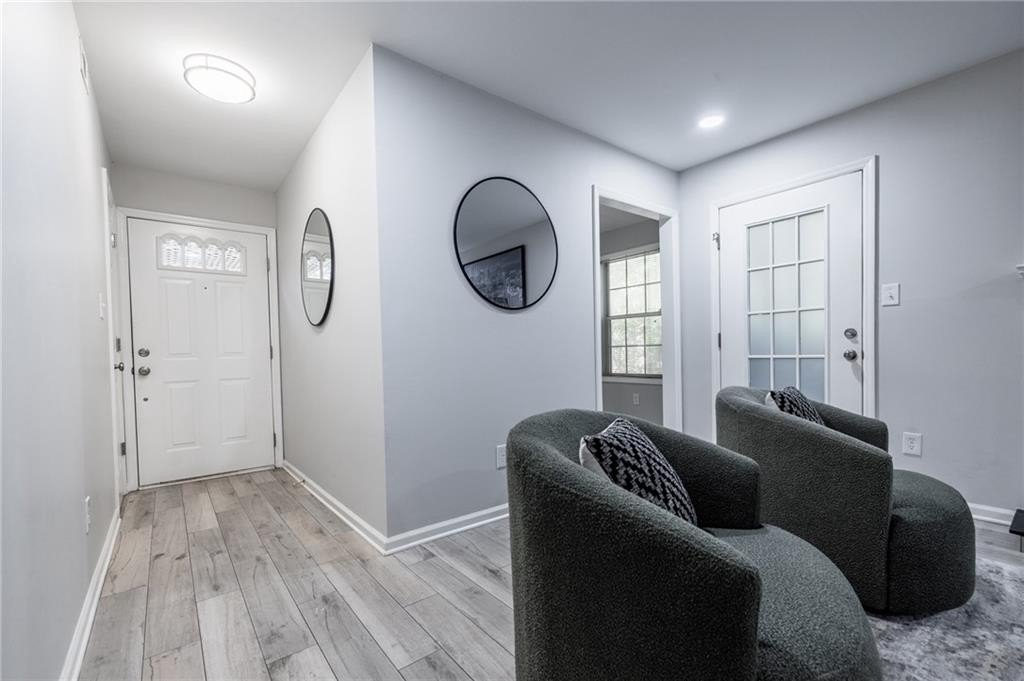 Welcome to your updated and spacious end-unit home in a great location! This 2-bedroom, 2-bathroom condo with a bonus office space has everything you need to live, work, and relax in style. Start by kicking back on the private, covered front porch, and then step inside to discover a beautifully renovated space that's perfect for everyday living and entertaining. The open layout features a cozy fireplace, a bar for hosting friends, and a super versatile flex space off the living room-ideal for a home office, yoga spot, or playroom. The kitchen is a total win with gorgeous countertops, stainless-steel appliances, a big pantry, and plenty of cabinet storage. When it's time to unwind, head to the primary bedroom, complete with a walk-in closet and a private en-suite bathroom featuring dual sinks, a linen closet, and a sleek glass-enclosed tile shower. One of the best features is the screened-in porch! It's the perfect spot to relax and enjoy the view of the private wooded lot. There's also weatherproof storage off the screened-in porch as well. This location couldn't be better, with easy access to 285, 85, and 141, making it super convenient to get anywhere in the city. Plus, the community has great perks like a swimming pool and a community area for grilling and entertaining with neighbors and friends. You're also just a short walk to Brook Run Park and Chesnut Elementary School. The seller recently added recessed lighting in the Living Room and fans in both bedrooms for better lighting throughout the condo. This home checks all the boxes-come see it for yourself!
