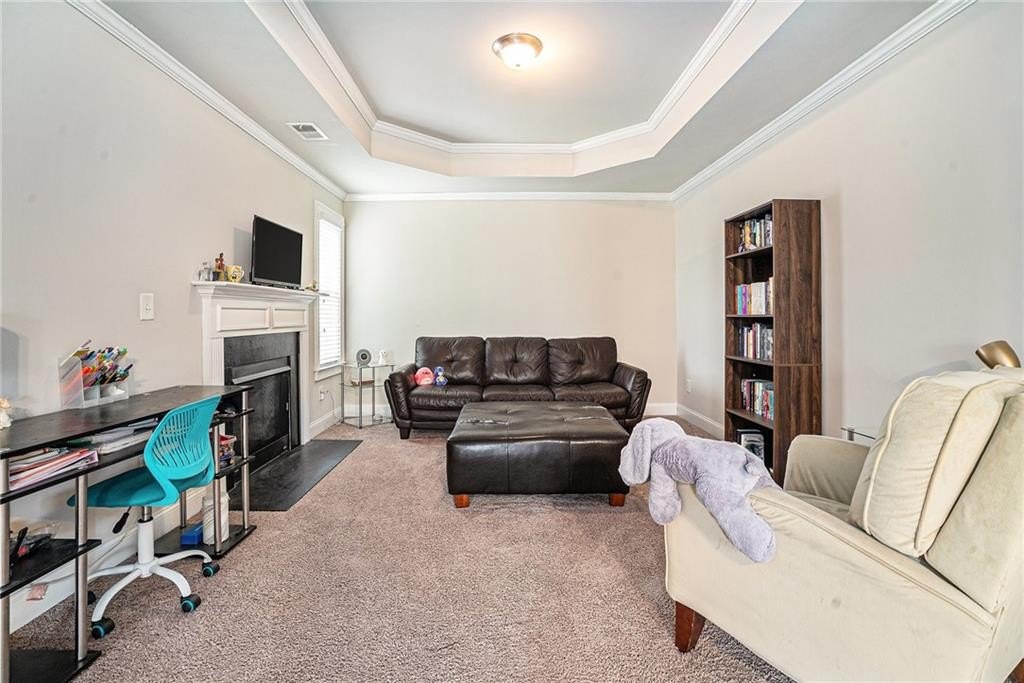 Upstairs, you'll find the luxurious primary suite, privately tucked away with its own staircase. This retreat features a spacious sitting room with cozy fireplace, an oversized bedroom area, and a spa-like en-suite bath complete with double vanities, a soaking tub, a separate tiled shower, and dual walk-in closets.