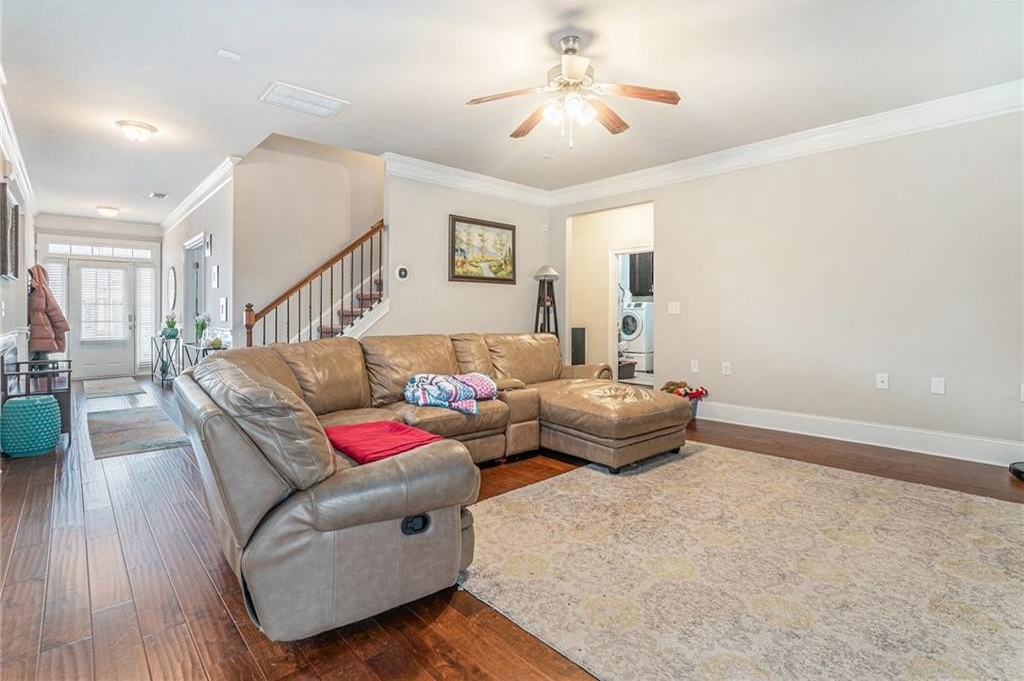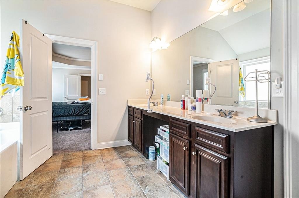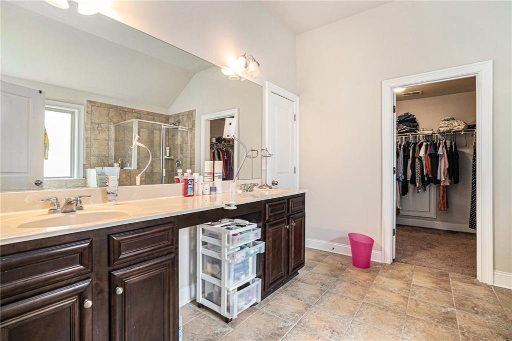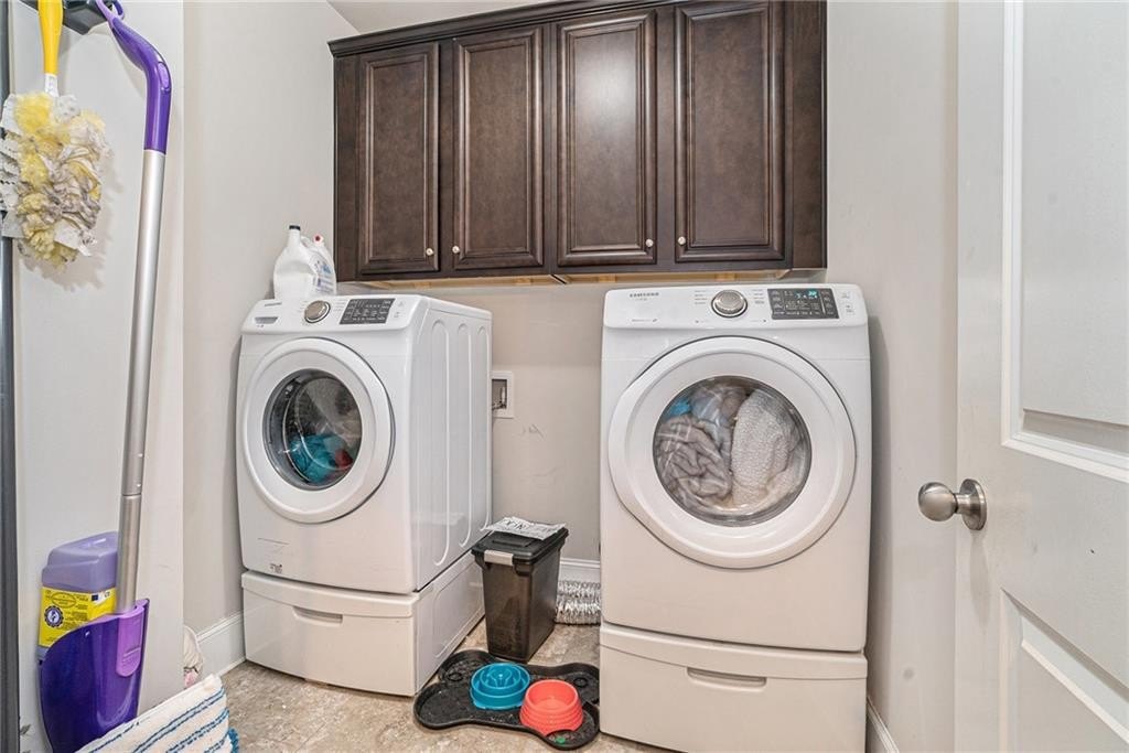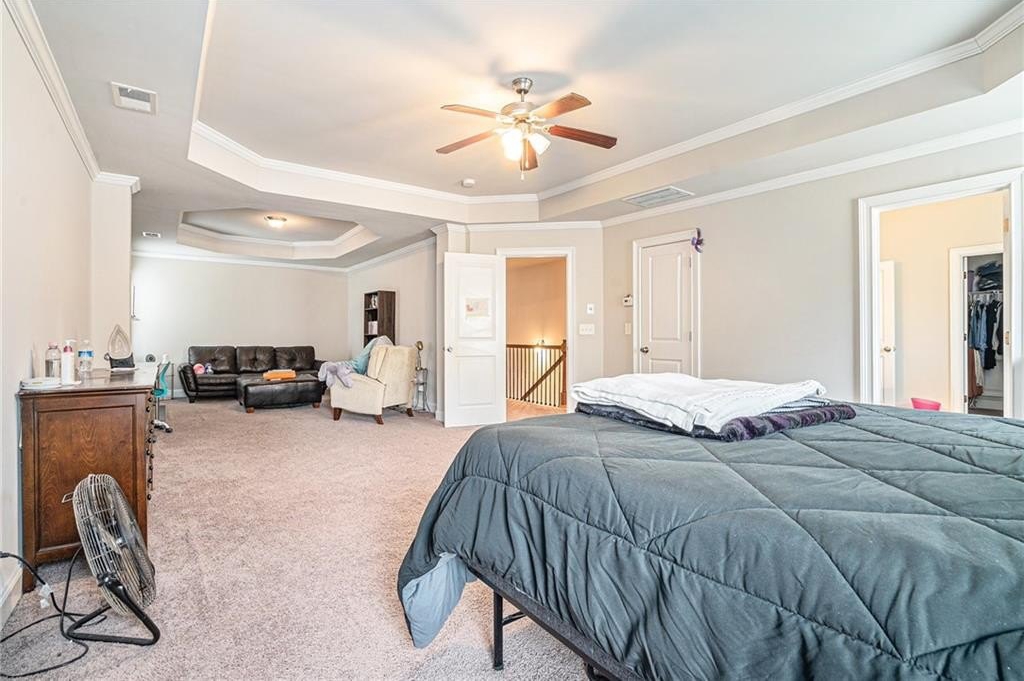The upper level also includes three additional generously sized bedrooms, each with ample closet space, and two additional full baths. Extra linen closets, attic access, and a laundry room upstairs provide added storage and convenience.