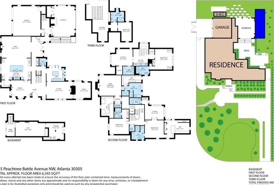 This extraordinary gated Buckhead home located near Bobby Jones Golf Course has been reimagined by a world-class team led by architect Stan Dixon, builder Rich Sokolowski, Stan Benecki and landscape architect John Howard. Every detail of this 100-year-old residence reflects exceptional craftsmanship, from hand-troweled plaster walls and leather-trimmed doors to high end appliances and artisan-forged ironwork. The main level welcomes with a light filled foyer and sculptural staircase, 10 foot ceilings, fireside living room, sun porch, and a truly showstopping kitchen anchored by a Lacanche range and Fior di Bosco Italian marble island. A charming butler's pantry and light-filled scullery with custom stone, brass accents, and beverage stations make entertaining effortless. Accordion doors open to a storybook Charleston-style garden with stone patios, outdoor kitchen, water feature, and a covered outdoor living room with fireplace and gas lanterns all overlooking beautiful new pool. Upstairs offers two beautiful primary suites with large custom closets, additional bedroom and two laundry areas, while the third level delights with whimsical living spaces, reading nooks, a bunk room, and full bath. A separate guest wing, reminiscent of a historic B&B, includes a full kitchenette and two private ensuite bedrooms. The terrace level features original brick walls, wine storage, a modern gym, and generous hidden storage, attached 2 car garage is located on the main level. Truly one of a kind, this spectacular home is unlike anything ever offered in Buckhead.