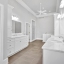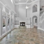 The eat-in kitchen is expansive, showcasing white cabinetry, stone countertops, stainless steel appliances, double ovens, a new dishwasher, and an oversized walk-in pantry. The main floor boasts a master bedroom filled with natural light and a newly renovated master bath featuring a walk-in shower, heated tile floors, a large soaking tub, double vanities, and a bidet. Double staircases lead to a secondary master suite with its own fireplace and a walk-out balcony. This suite includes a full bath with double vanities, a shower, a tub, and a walk-in closet.