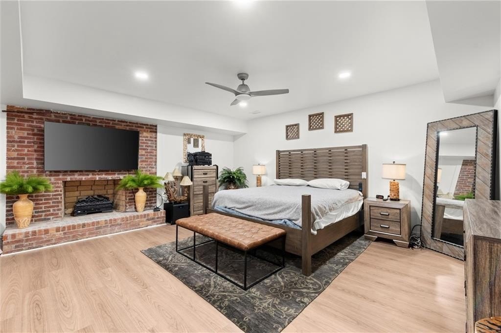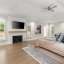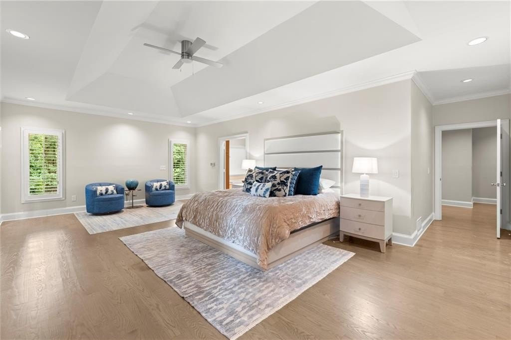The main-level primary suite is a private retreat, offering a sitting area with fireplace, tray ceilings, remote-controlled shades, spa-inspired bath, and a fully customized walk-in closet. Upstairs, two or three additional bedrooms and an oversized walk-in attic/flex space provide ample storage or the option to finish into more living space.