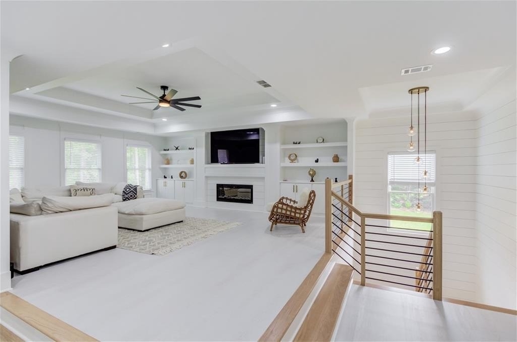 Exquisite European-inspired luxury residence, gracefully situated on a private .73-acre lot in the sought-after New Hope Landing community-a true hidden gem and one of the few newly constructed neighborhoods with no HOA. Thoughtfully designed for long-term living, this home offers two primary suites and two laundry rooms, making it ideal for growing households or multi-generational living. Step onto the inviting front porch and into a grand entrance foyer that immediately sets the tone for the home's refined elegance. The open-concept main level features gleaming marble floors and an expansive layout perfectly suited for both everyday living and effortless entertaining. At the heart of the home, the chef-inspired kitchen impresses with an oversized island, abundant cabinetry, a walk-in pantry, and seamless flow into the spacious living area. Sunlight pours through the home, highlighting the thoughtful design and upscale finishes throughout. The main level offers a private primary suite with a full bath and nearby laundry room-ideal for guests or extended family. Upstairs, retreat to the luxurious owner's suite, complete with a fireplace, spa-inspired bath, and custom his-and-hers walk-in closets with a center island. A spacious loft provides flexible living space for relaxation, work, or entertainment, while a second laundry room adds everyday convenience. Outdoor living truly shines with a covered patio and fireplace overlooking the expansive, manicured backyard-perfect for hosting gatherings or enjoying peaceful evenings in your own private retreat. Additional highlights include a three-car garage with EV charger, a private office or flex room, and thoughtful storage throughout. Ideally located just minutes from Downtown Lawrenceville, enjoy easy access to premier dining, entertainment, and local charm. A nature lover's dream, the home is within walking distance of a 700-acre park featuring two scenic lakes for fishing and boating, tree-lined paved and soft-surface trails for walking, running, and cycling, as well as opportunities for hiking, mountain biking, horseback riding, waterfalls, and an outdoor amphitheater-offering a lifestyle where luxury meets nature.