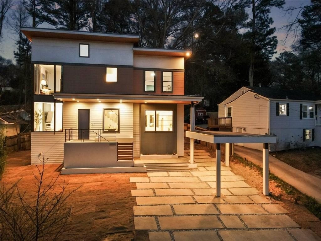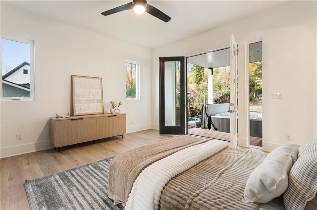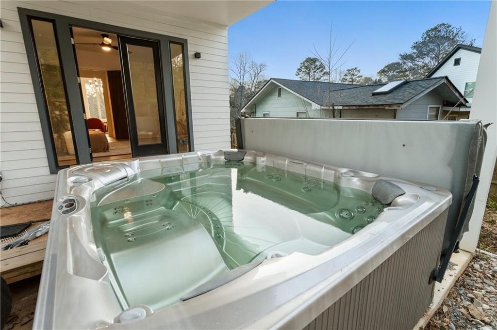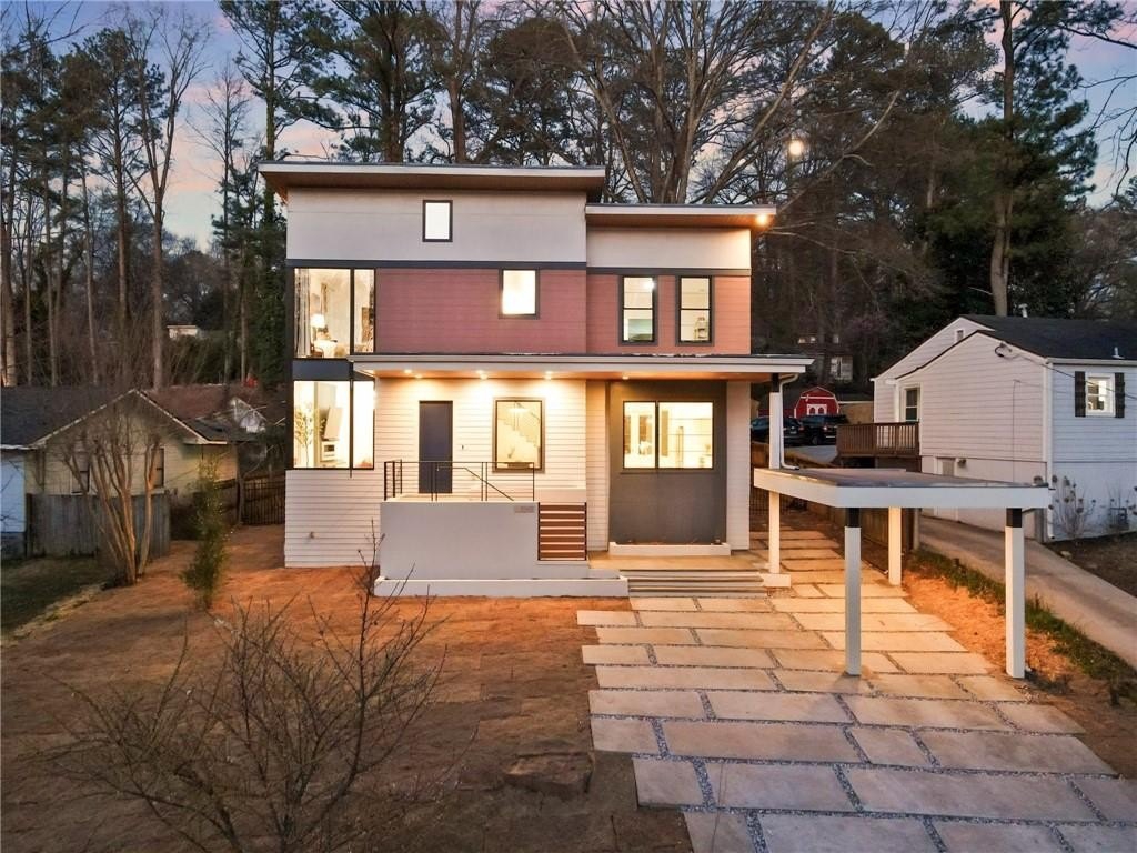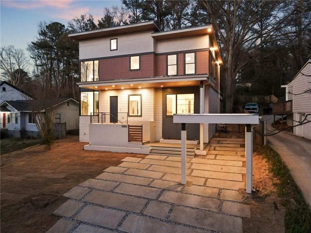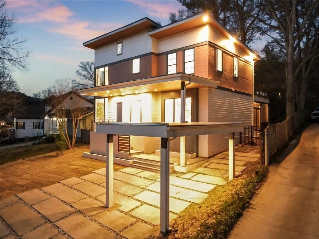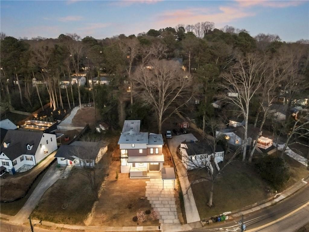 Welcome to your dream home in the highly sought after Woodland Hills neighborhood! This beautiful newer construction is a 1 of 1 Californian Organic Modern that has been updated to keep up with the latest aesthetic and trends to the market, creating a timeless time capsule. Upon entry, you're met with an open concept with massive living common space, a dining area that can fit a 16 seater, and an imported custom cabinet kitchen that allows for seamless entertaining or everyday interacting with family and friends. The cardinal facing direction, elevations of lot, and enormous custom windows allows for the most serene and movie-like sunset settings 365 days of the year giving this home something that every space cannot attain. The kitchen boast higher tier appliances by Borsch, a four seater waterfall quartz island, and built-ins throughout the space for easy storing for items. The main level features a secondary primary bedroom with an ensuite and french doors connecting the covered decking space that occupies a Hot Springs Gleam salt water hot tub/jacuzzi that can seat up to 8 people at a time. Walking throughout will feature covered European White Oak Hardwoods and hand selected porcelain tiling with no seams or transition pieces for a fully custom flooring cover experience. Walking up custom hardwood staircase, the second level of home features 3 extremely generous size bedrooms, with all being attached to immediate access to a fully tiled custom bathroom. The primary bedroom (owner's suite) features its own exclusive private balcony space, dual custom vanity, walk-in closet, and more than enough space to add seating or storage of your liking. Proximity of home and neighborhood close to the newest Lifetime Fitness gym, Emory University, Buckhead, Morningside, interstate and expressways, shops, dining, MARTA and retail. If you're searching for a custom gem to call home that offers comfort, convenience, and evening scene like no other, this home is a must-see.
