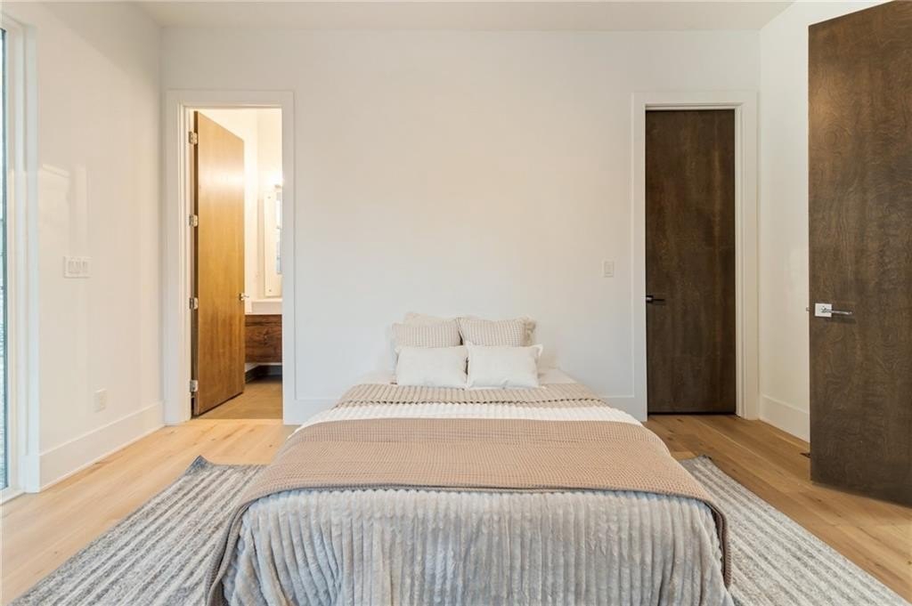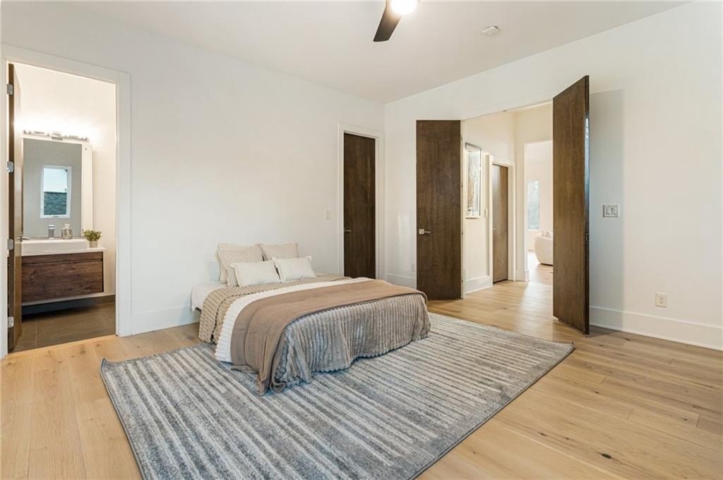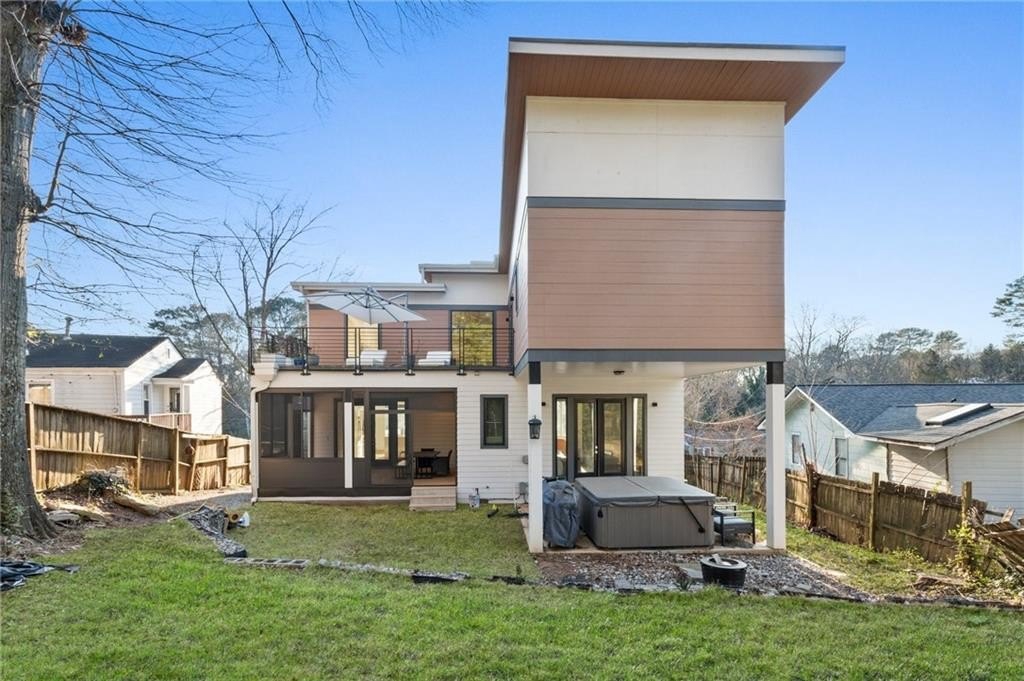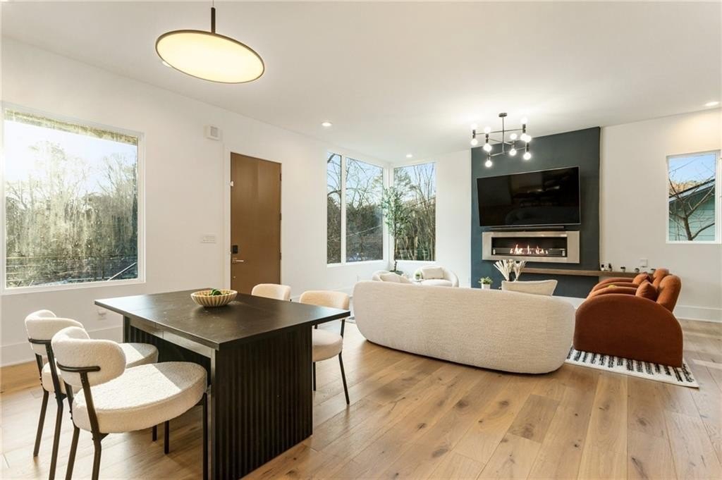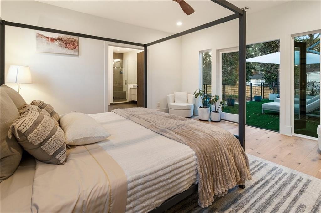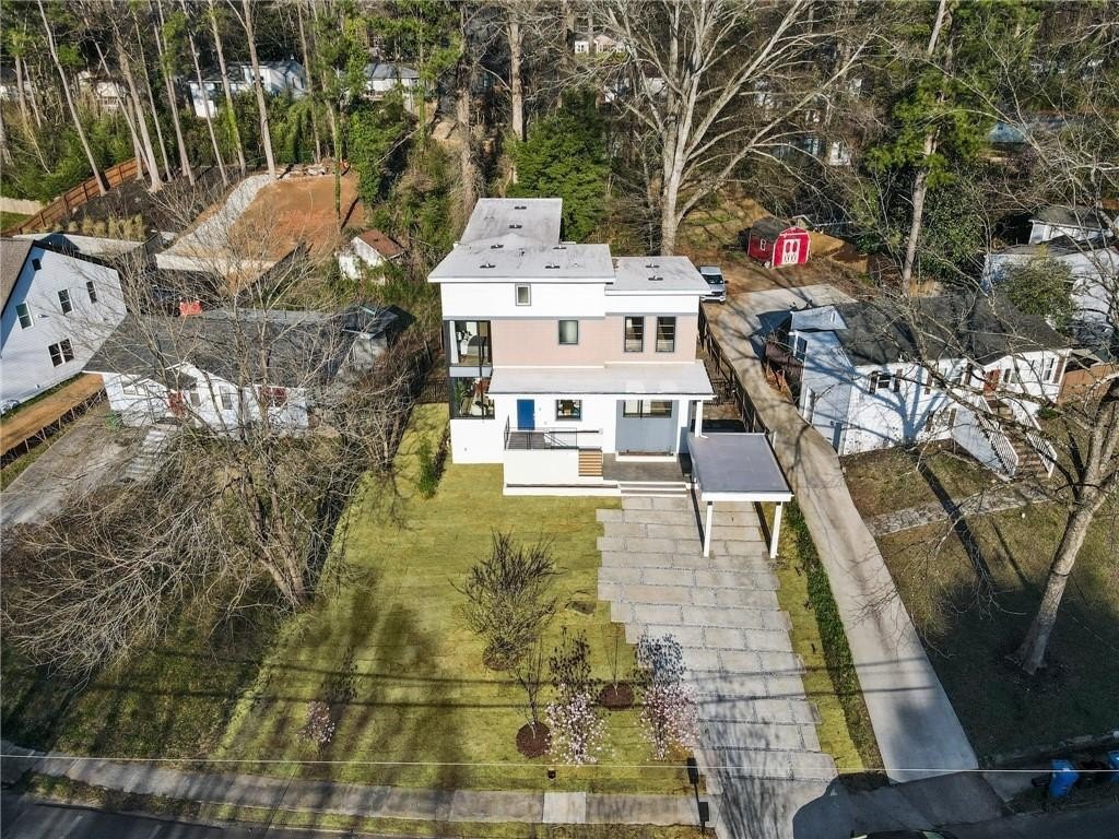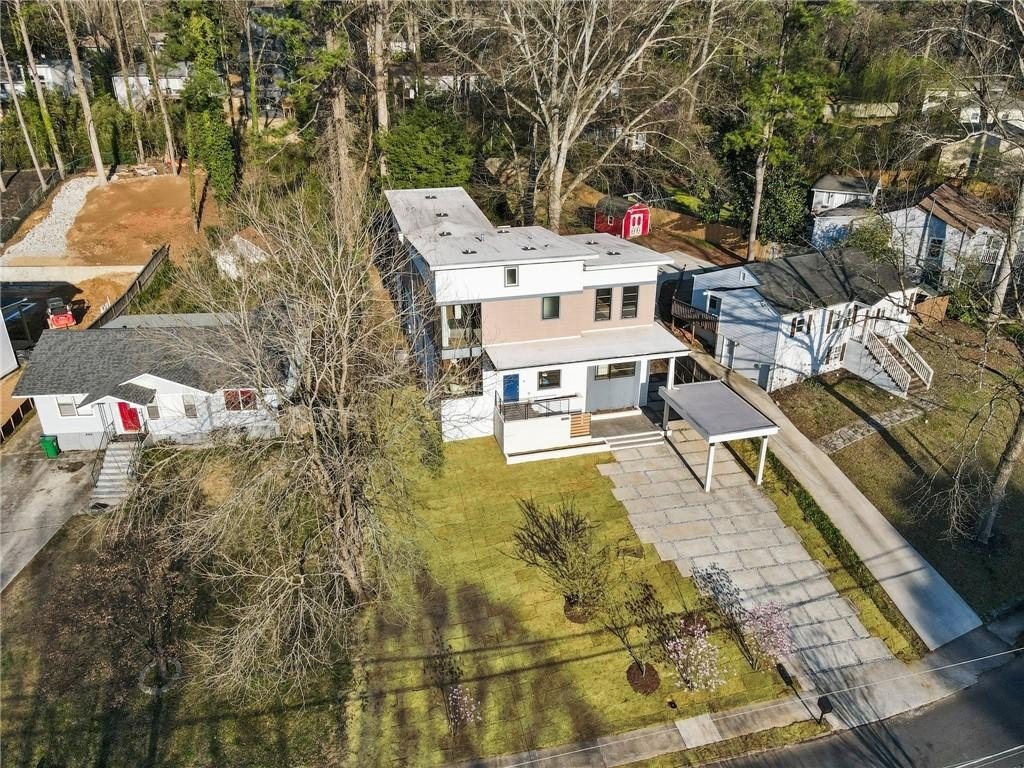 Welcome to your dream home in the highly sought after Woodland Hills neighborhood! This beautiful newer construction is a 1 of 1 Californian Organic Modern that has been updated to keep up with the latest aesthetic and trends to the market, creating a timeless time capsule. Upon entry, you're met with an open concept with massive living common space, a dining area that can fit a 16 seater, and an imported custom cabinet kitchen that allows for seamless entertaining or everyday interacting with family and friends. The cardinal facing direction, elevations of lot, and enormous custom windows allows for the most serene and movie-like sunset settings 365 days of the year giving this home something that every space cannot attain. The kitchen boast higher tier appliances by Borsch, a four seater waterfall quartz island, and built-ins throughout the space for easy storing for items. The main level features a secondary primary bedroom with an ensuite and french doors connecting the covered decking space that occupies a Hot Springs Gleam salt water hot tub/jacuzzi that can seat up to 8 people at a time. Walking throughout will feature covered European White Oak Hardwoods and hand selected porcelain tiling with no seams or transition pieces for a fully custom flooring cover experience. Walking up custom hardwood staircase, the second level of home features 3 extremely generous size bedrooms, with all being attached to immediate access to a fully tiled custom bathroom. The primary bedroom (owner's suite) features its own exclusive private balcony space, dual custom vanity, walk-in closet, and more than enough space to add seating or storage of your liking. Proximity of home and neighborhood close to the newest Lifetime Fitness gym, Emory University, Buckhead, Morningside, interstate and expressways, shops, dining, MARTA and retail. If you're searching for a custom gem to call home that offers comfort, convenience, and evening scene like no other, this home is a must-see.