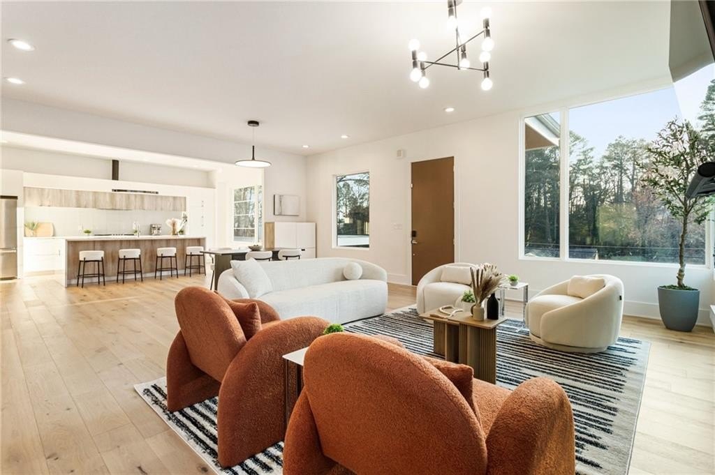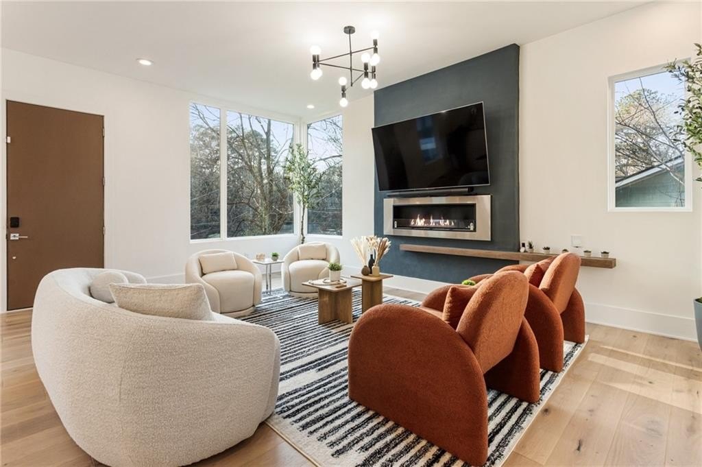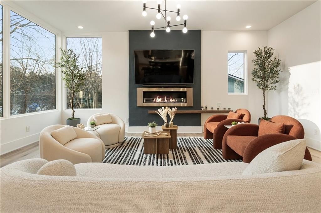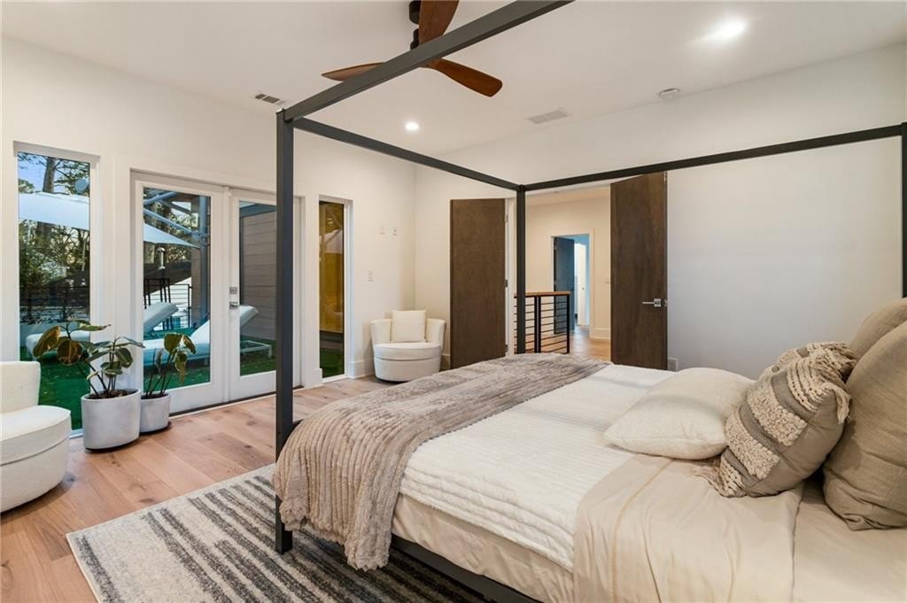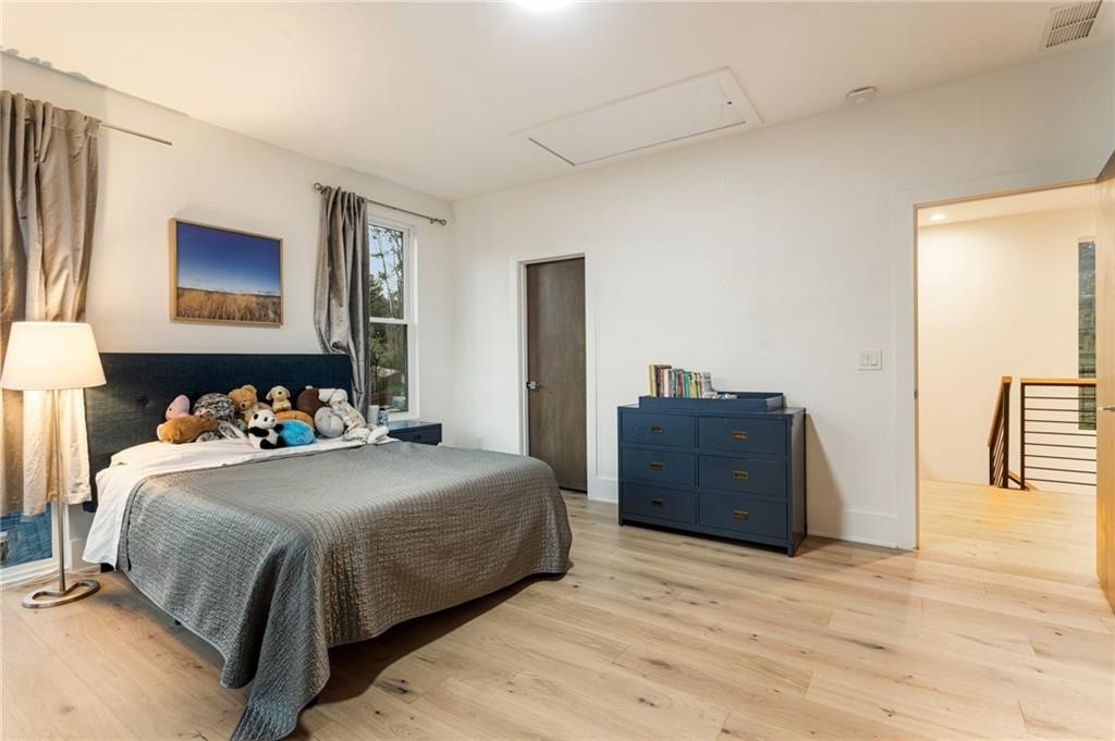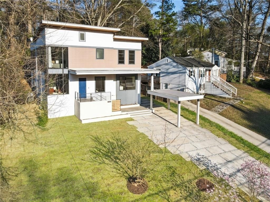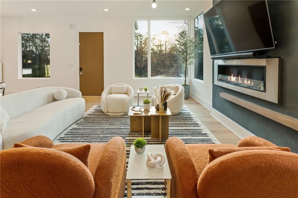Welcome to your dream home in the highly sought after Woodland Hills neighborhood! This beautiful newer construction is a 1 of 1 Californian Organic Modern that has been updated to keep up with the latest aesthetic and trends to the market, creating a timeless time capsule. Upon entry, you're met with an open concept with massive living common space, a dining area that can fit a 16 seater, and an imported custom cabinet kitchen that allows for seamless entertaining or everyday interacting with family and friends. The cardinal facing direction, elevations of lot, and enormous custom windows allows for the most serene and movie-like sunset settings 365 days of the year giving this home something that every space cannot attain. The kitchen boast higher tier appliances by Borsch, a four seater waterfall quartz island, and built-ins throughout the space for easy storing for items. The main level features a secondary primary bedroom with an ensuite and french doors connecting the covered decking space that occupies a Hot Springs Gleam salt water hot tub/jacuzzi that can seat up to 8 people at a time. Walking throughout will feature covered European White Oak Hardwoods and hand selected porcelain tiling with no seams or transition pieces for a fully custom flooring cover experience. Walking up custom hardwood staircase, the second level of home features 3 extremely generous size bedrooms, with all being attached to immediate access to a fully tiled custom bathroom. The primary bedroom (owner's suite) features its own exclusive private balcony space, dual custom vanity, walk-in closet, and more than enough space to add seating or storage of your liking. Proximity of home and neighborhood close to the newest Lifetime Fitness gym, Emory University, Buckhead, Morningside, interstate and expressways, shops, dining, MARTA and retail. If you're searching for a custom gem to call home that offers comfort, convenience, and evening scene like no other, this home is a must-see.