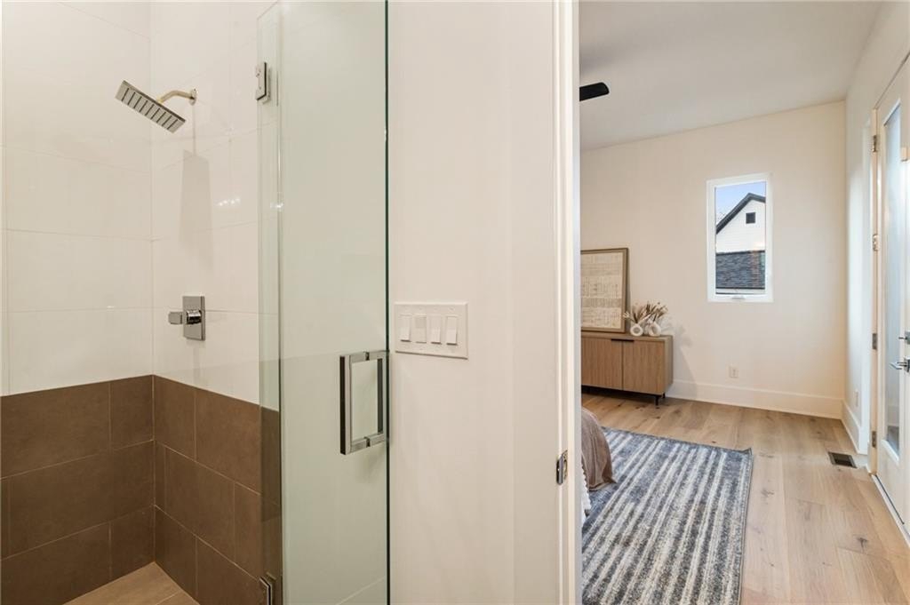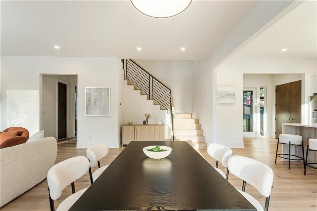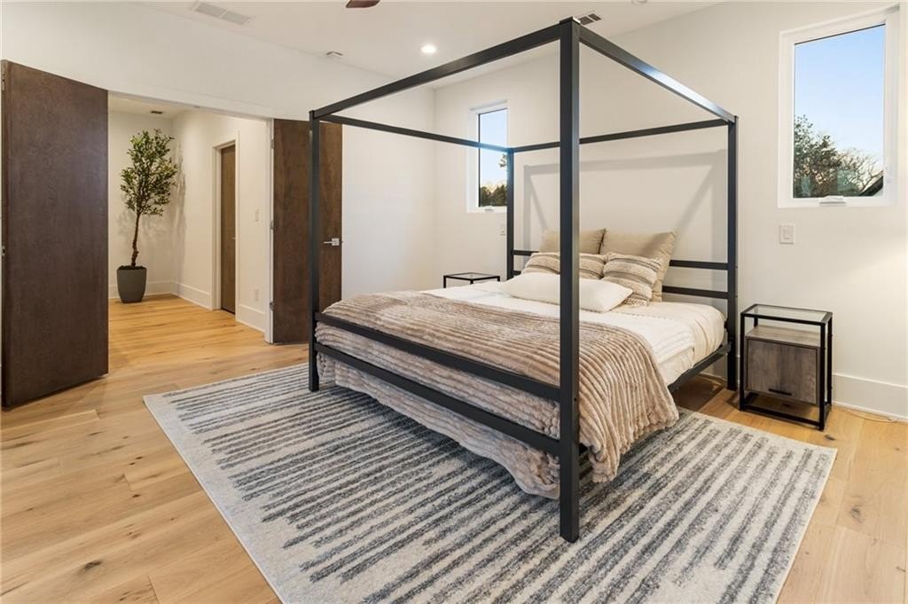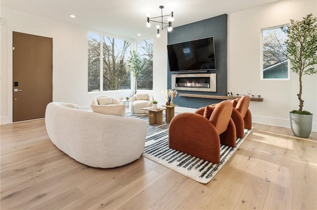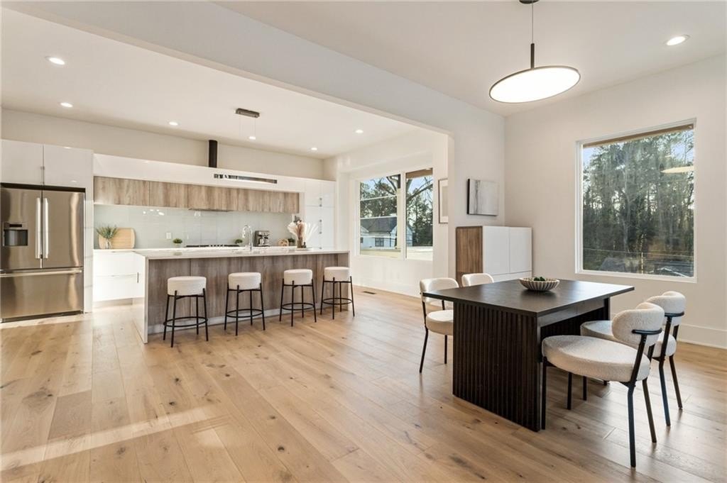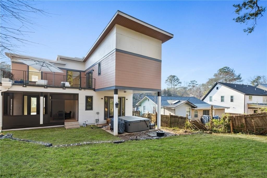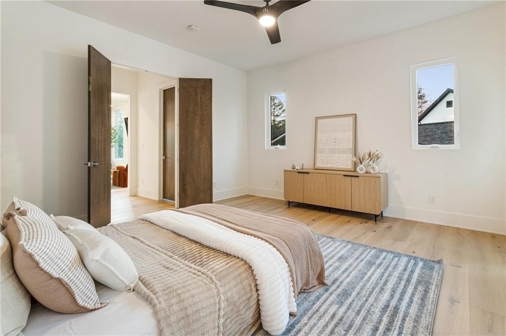 Welcome to your dream home in the highly sought after Woodland Hills neighborhood! This beautiful newer construction is a 1 of 1 Californian Organic Modern that has been updated to keep up with the latest aesthetic and trends to the market, creating a timeless time capsule. Upon entry, you're met with an open concept with massive living common space, a dining area that can fit a 16 seater, and an imported custom cabinet kitchen that allows for seamless entertaining or everyday interacting with family and friends. The cardinal facing direction, elevations of lot, and enormous custom windows allows for the most serene and movie-like sunset settings 365 days of the year giving this home something that every space cannot attain. The kitchen boast higher tier appliances by Borsch, a four seater waterfall quartz island, and built-ins throughout the space for easy storing for items. The main level features a secondary primary bedroom with an ensuite and french doors connecting the covered decking space that occupies a Hot Springs Gleam salt water hot tub/jacuzzi that can seat up to 8 people at a time. Walking throughout will feature covered European White Oak Hardwoods and hand selected porcelain tiling with no seams or transition pieces for a fully custom flooring cover experience. Walking up custom hardwood staircase, the second level of home features 3 extremely generous size bedrooms, with all being attached to immediate access to a fully tiled custom bathroom. The primary bedroom (owner's suite) features its own exclusive private balcony space, dual custom vanity, walk-in closet, and more than enough space to add seating or storage of your liking. Proximity of home and neighborhood close to the newest Lifetime Fitness gym, Emory University, Buckhead, Morningside, interstate and expressways, shops, dining, MARTA and retail. If you're searching for a custom gem to call home that offers comfort, convenience, and evening scene like no other, this home is a must-see.