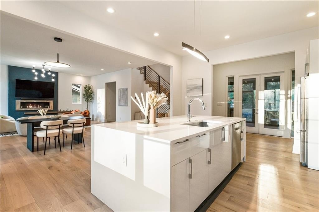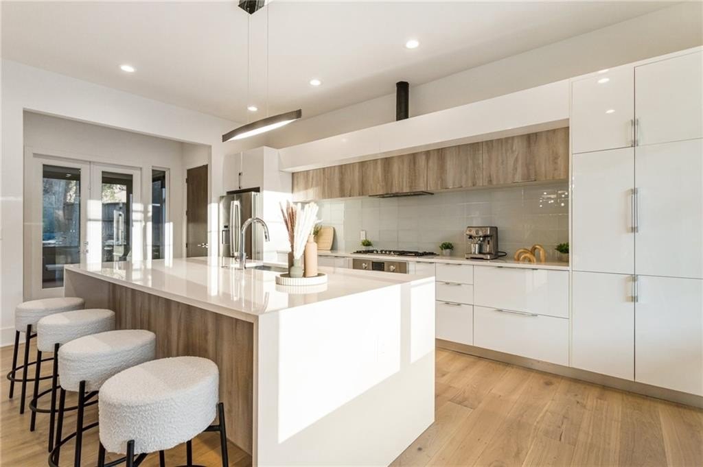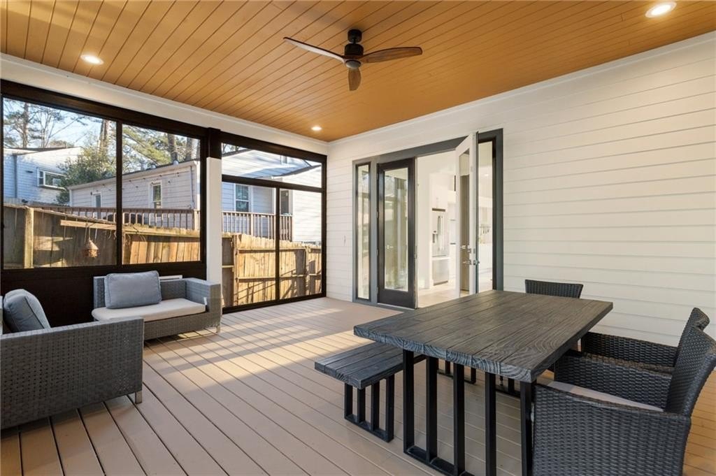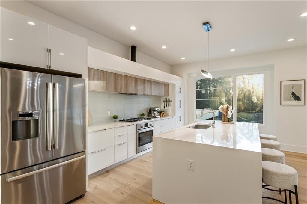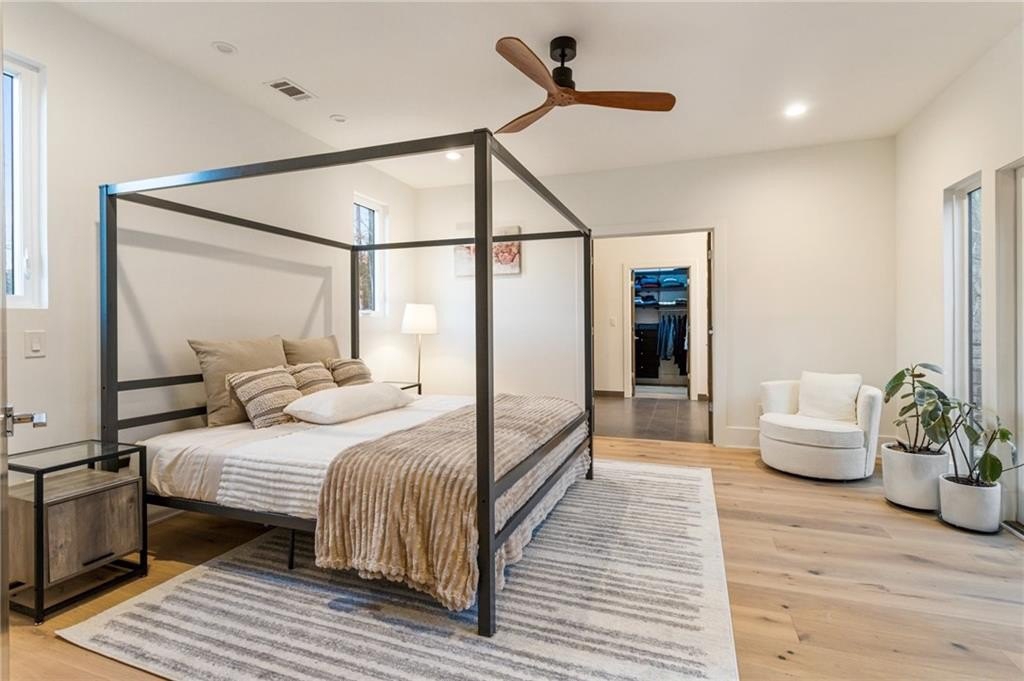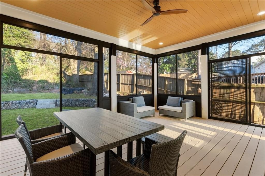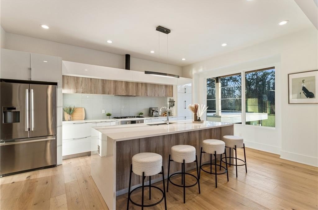 Welcome to your dream home in the highly sought after Woodland Hills neighborhood! This beautiful newer construction is a 1 of 1 Californian Organic Modern that has been updated to keep up with the latest aesthetic and trends to the market, creating a timeless time capsule. Upon entry, you're met with an open concept with massive living common space, a dining area that can fit a 16 seater, and an imported custom cabinet kitchen that allows for seamless entertaining or everyday interacting with family and friends. The cardinal facing direction, elevations of lot, and enormous custom windows allows for the most serene and movie-like sunset settings 365 days of the year giving this home something that every space cannot attain. The kitchen boast higher tier appliances by Borsch, a four seater waterfall quartz island, and built-ins throughout the space for easy storing for items. The main level features a secondary primary bedroom with an ensuite and french doors connecting the covered decking space that occupies a Hot Springs Gleam salt water hot tub/jacuzzi that can seat up to 8 people at a time. Walking throughout will feature covered European White Oak Hardwoods and hand selected porcelain tiling with no seams or transition pieces for a fully custom flooring cover experience. Walking up custom hardwood staircase, the second level of home features 3 extremely generous size bedrooms, with all being attached to immediate access to a fully tiled custom bathroom. The primary bedroom (owner's suite) features its own exclusive private balcony space, dual custom vanity, walk-in closet, and more than enough space to add seating or storage of your liking. Proximity of home and neighborhood close to the newest Lifetime Fitness gym, Emory University, Buckhead, Morningside, interstate and expressways, shops, dining, MARTA and retail. If you're searching for a custom gem to call home that offers comfort, convenience, and evening scene like no other, this home is a must-see.