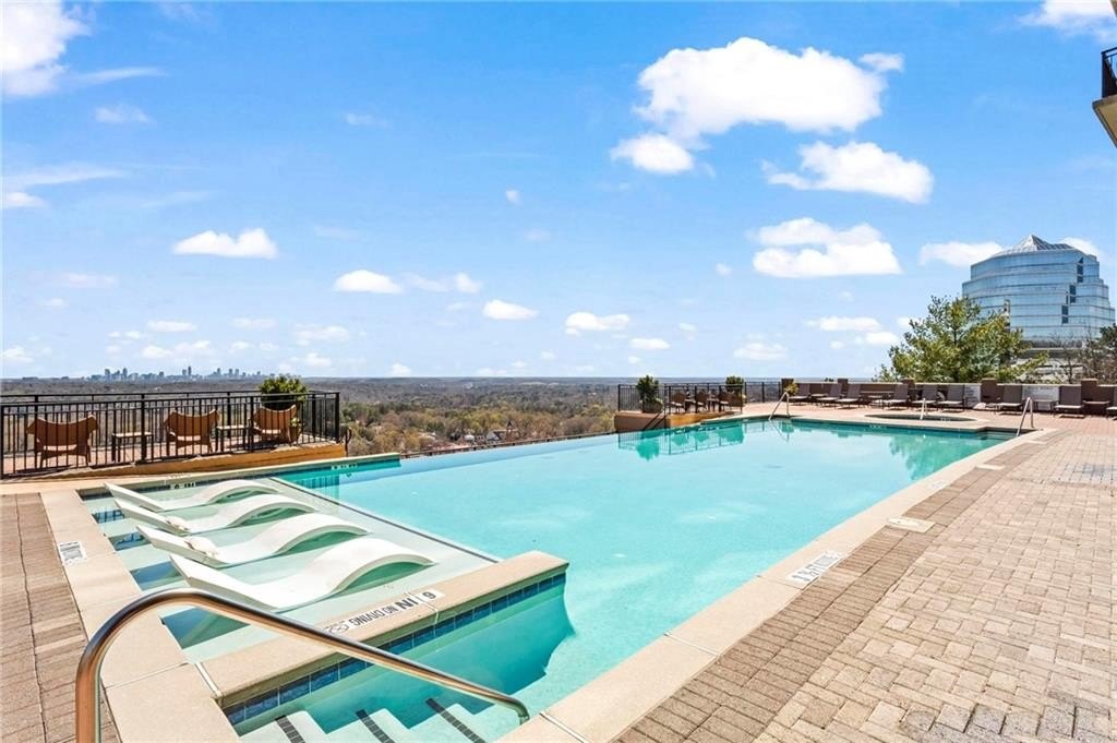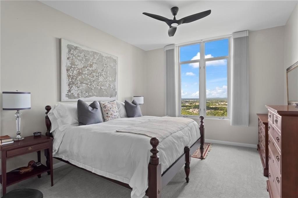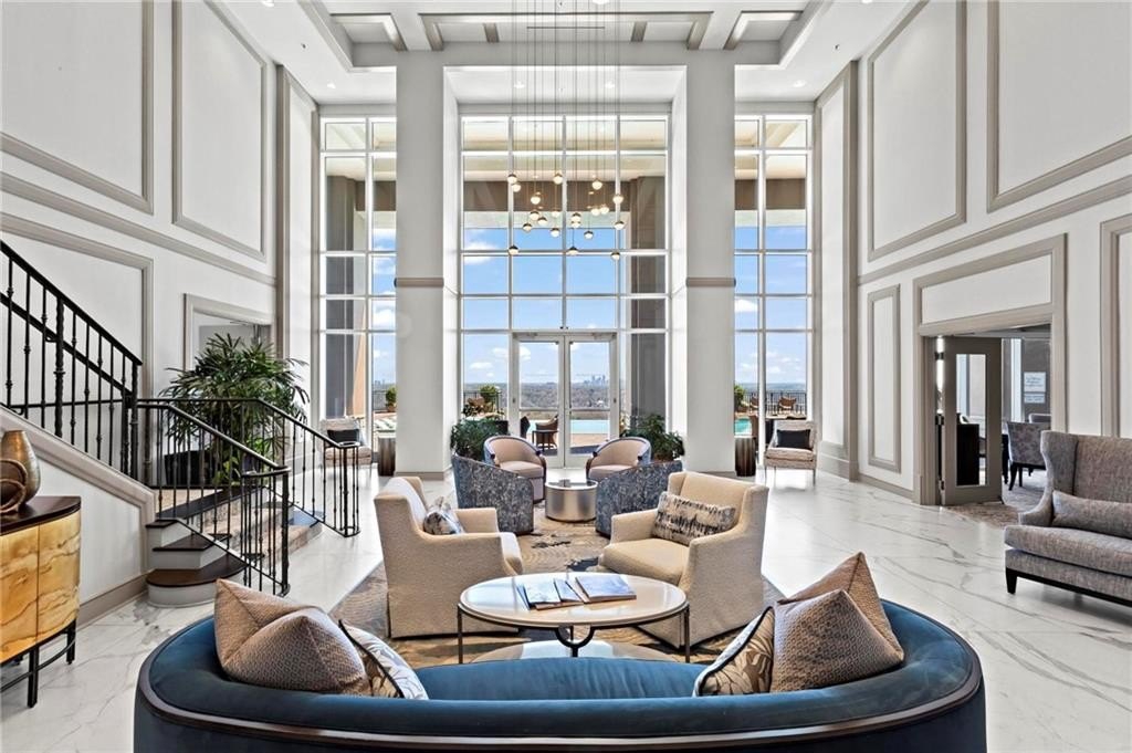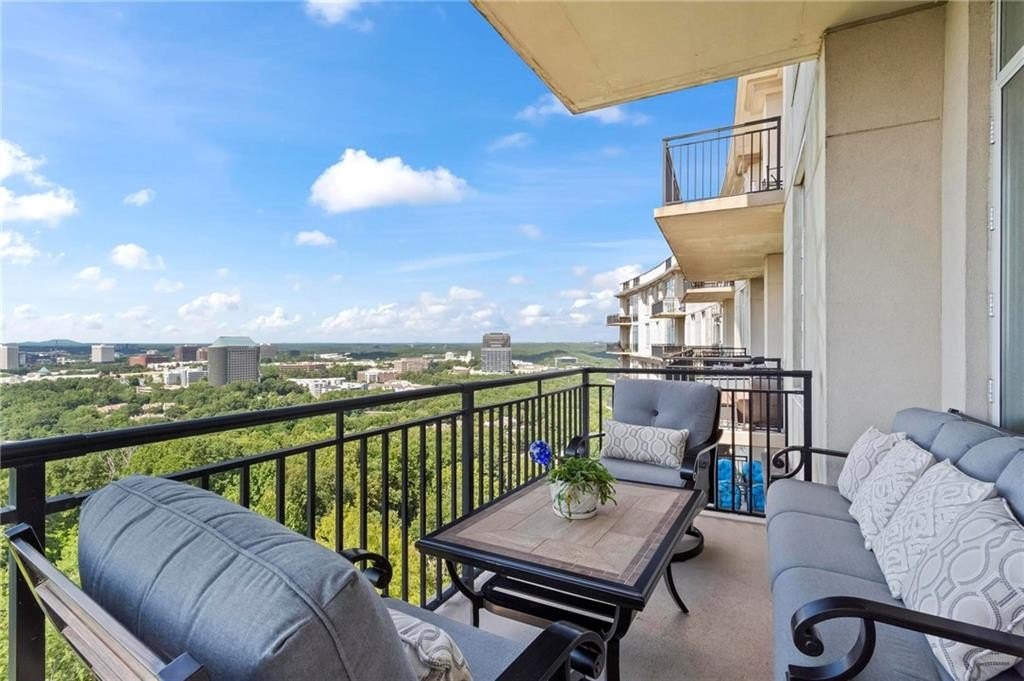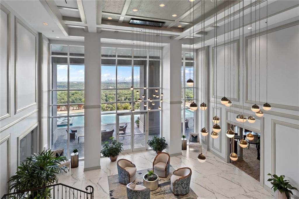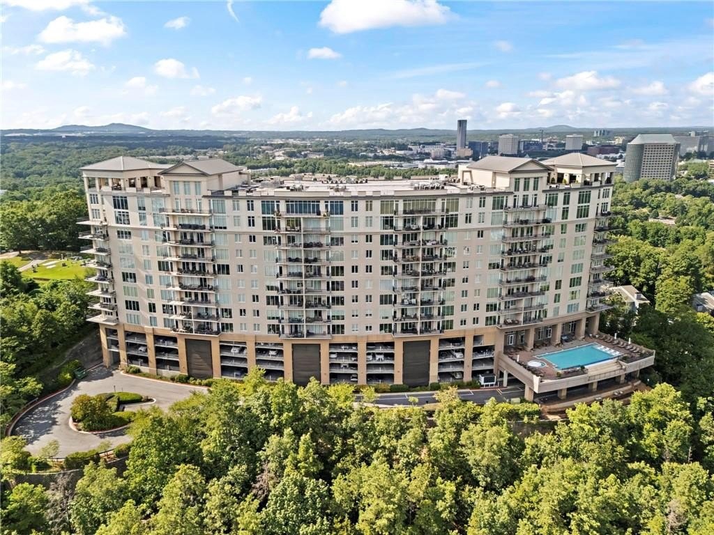 Situated atop the highest point inside the perimeter, One Vinings Mountain is considered one of the most luxurious condominium properties in Cobb County. The lobby and resident hallways have recently undergone impressive renovations and the results are stunning! Come discover this seamless blend of elegance, utility, and convenience in this resort-style property. The "Norman" floor plan is located on one of the penthouse levels, and is the largest 2 bedroom, 2.5 bathroom floor plan (including an in-home office) in the building. The visual impact of the floor to ceiling windows is something to behold as the transoms allow for maximum amounts of natural light. The spacious balcony offers breathtaking views of the rolling hills of north Georgia. The large kitchen with a walk in pantry, has been enhanced with pristine quartz countertops and new GE Profile oven and microwave.o top it all off . . . this incredible condo comes with a coveted temperature controlled 15x6.5 storage unit on the garage level and two assigned parking spaces. In addition, the unparalleled amenities include a fulltime concierge, infinity pool, fitness room, private massage room, woodworking room, board room, billiard room, golf simulator, catering kitchen adjacent to a large gathering room for welcoming guests, a covered grilling area with outdoor fireplace and TV, an EV charging station, a dog park, and two suites for additional overnight guests. You cannot beat the location of One Vinings Mountain for quick and easy access to major highways, to convenient shopping and dining in Vinings Jubilee, to Truist Park and The Battery, to the Chattahoochee River walking/biking trails, as well as to Hartsfield-Jackson International Airport. One Vinings Mountain as it ALL (except high property taxes!) Isn't it time you called One Vinings Mountain "home"?