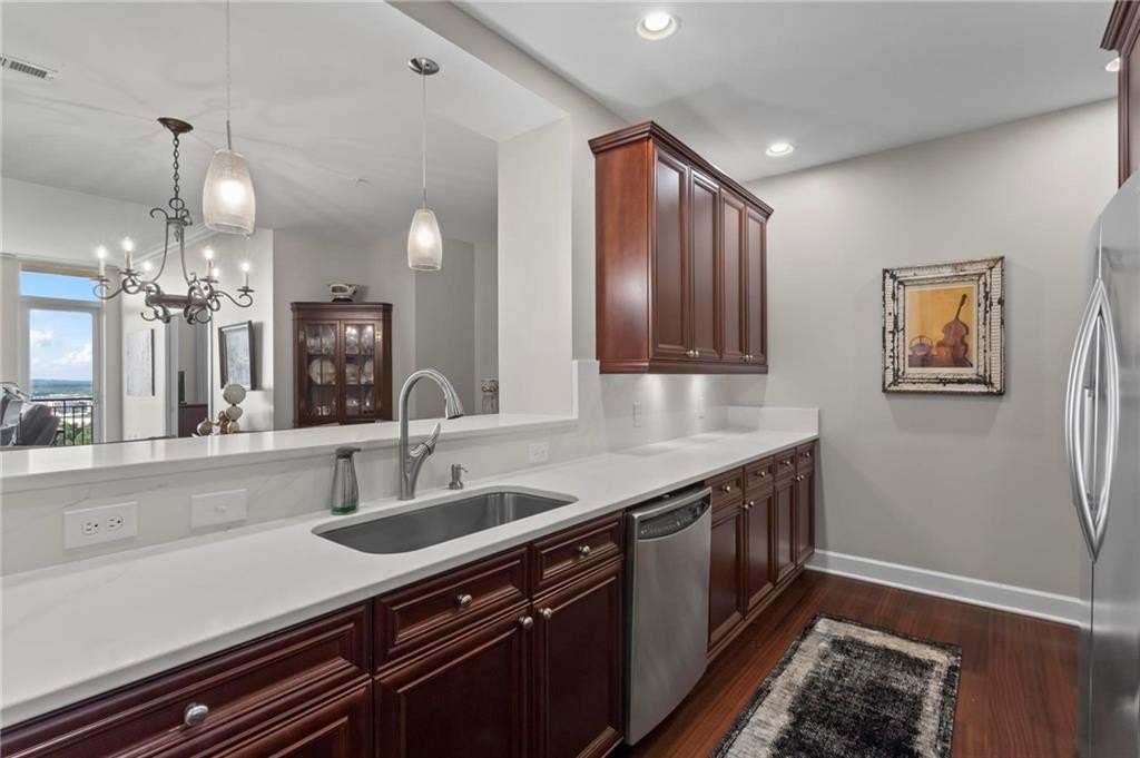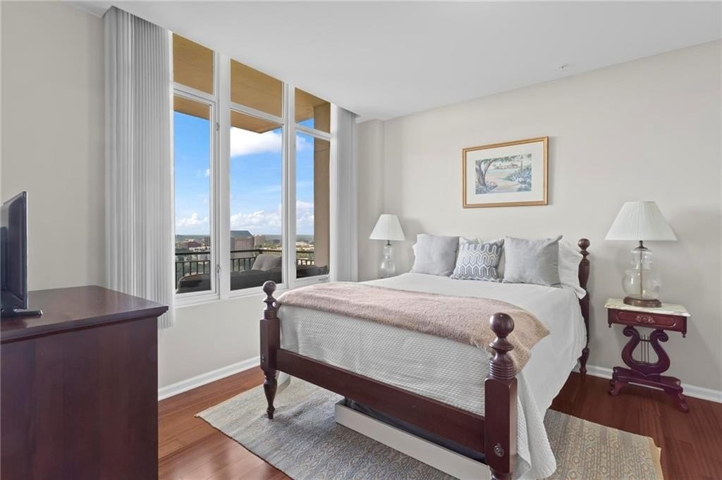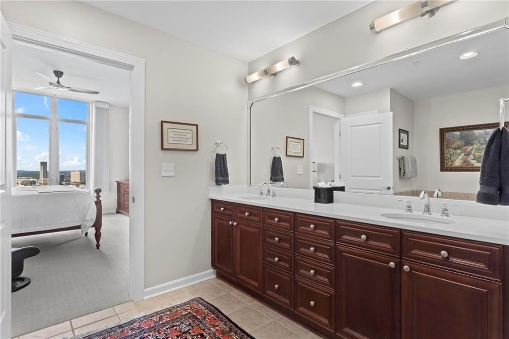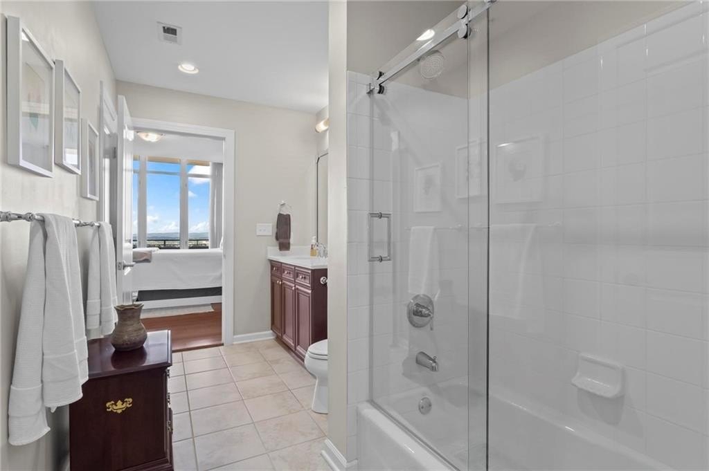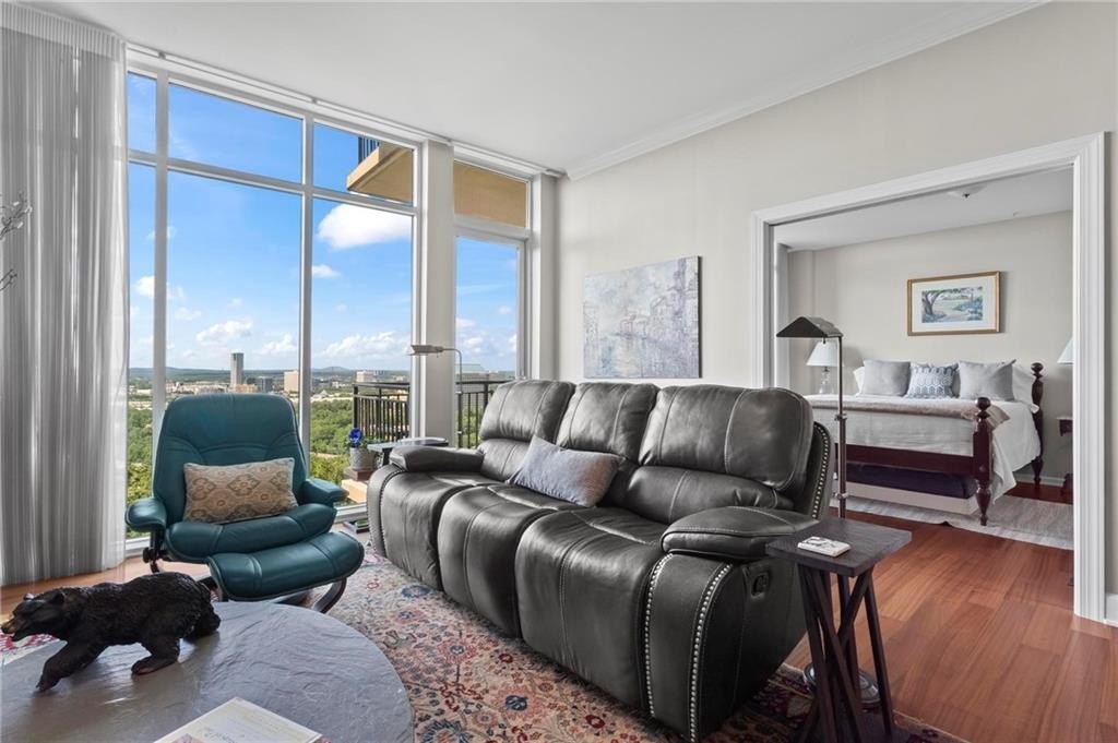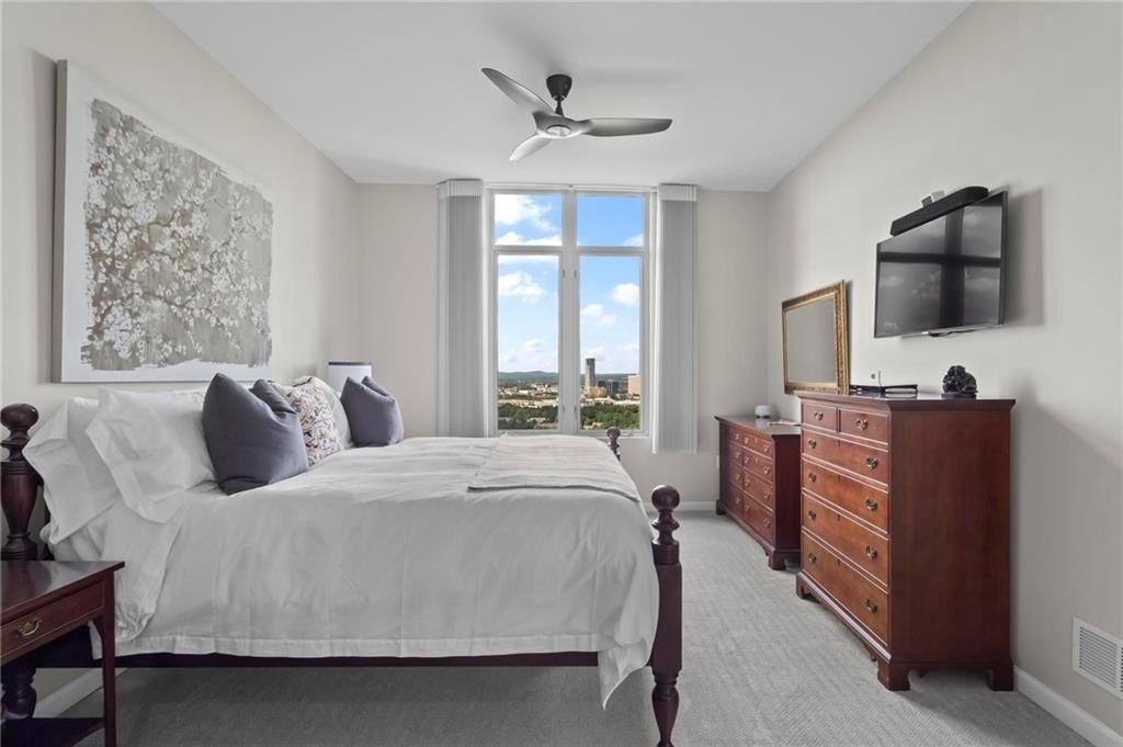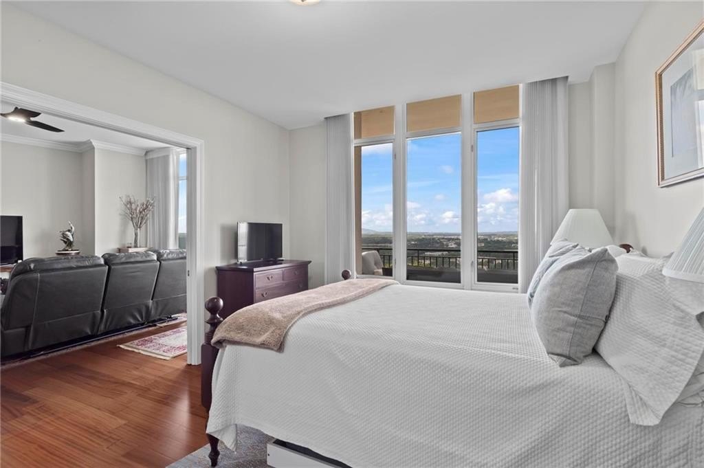 Situated atop the highest point inside the perimeter, One Vinings Mountain is considered one of the most luxurious condominium properties in Cobb County. The lobby and resident hallways have recently undergone impressive renovations and the results are stunning! Come discover this seamless blend of elegance, utility, and convenience in this resort-style property. The "Norman" floor plan is located on one of the penthouse levels, and is the largest 2 bedroom, 2.5 bathroom floor plan (including an in-home office) in the building. The visual impact of the floor to ceiling windows is something to behold as the transoms allow for maximum amounts of natural light. The spacious balcony offers breathtaking views of the rolling hills of north Georgia. The large kitchen with a walk in pantry, has been enhanced with pristine quartz countertops and new GE Profile oven and microwave.o top it all off . . . this incredible condo comes with a coveted temperature controlled 15x6.5 storage unit on the garage level and two assigned parking spaces. In addition, the unparalleled amenities include a fulltime concierge, infinity pool, fitness room, private massage room, woodworking room, board room, billiard room, golf simulator, catering kitchen adjacent to a large gathering room for welcoming guests, a covered grilling area with outdoor fireplace and TV, an EV charging station, a dog park, and two suites for additional overnight guests. You cannot beat the location of One Vinings Mountain for quick and easy access to major highways, to convenient shopping and dining in Vinings Jubilee, to Truist Park and The Battery, to the Chattahoochee River walking/biking trails, as well as to Hartsfield-Jackson International Airport. One Vinings Mountain as it ALL (except high property taxes!) Isn't it time you called One Vinings Mountain "home"?