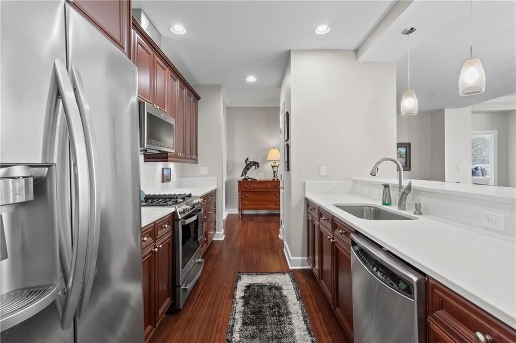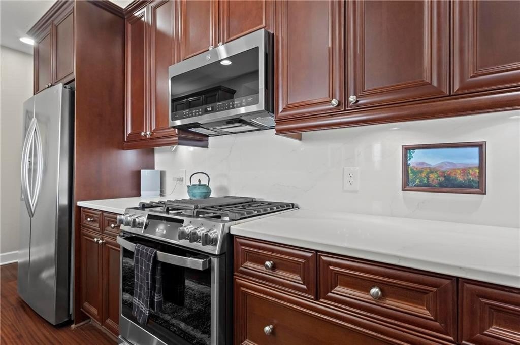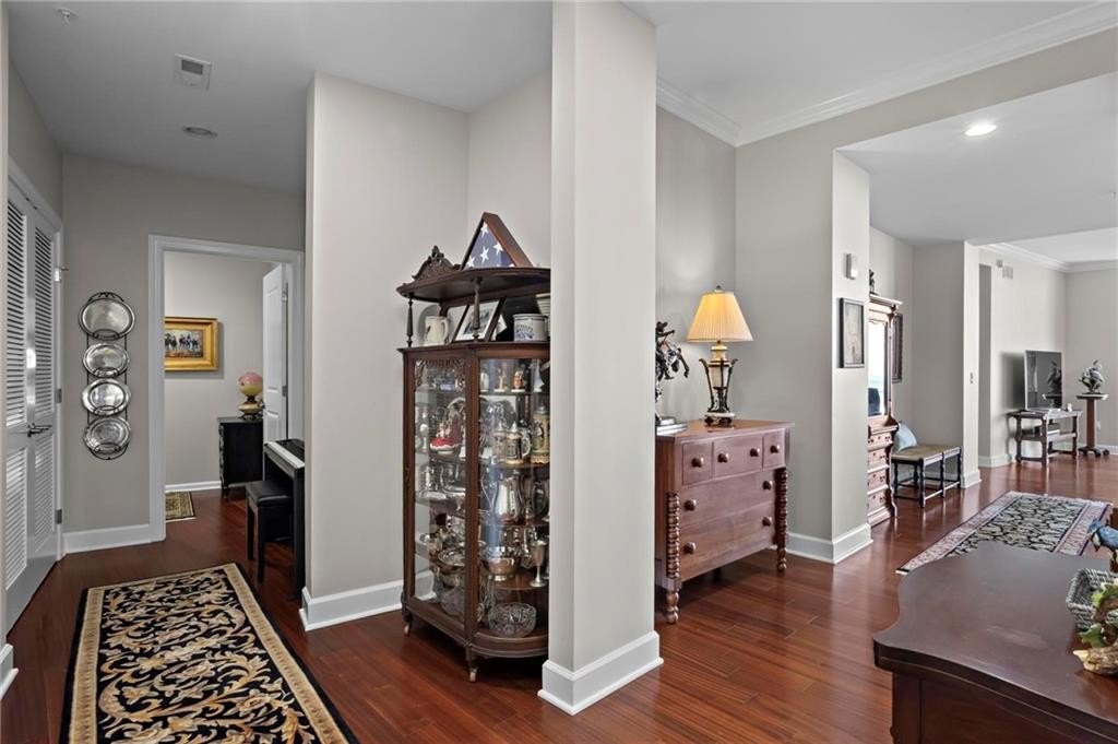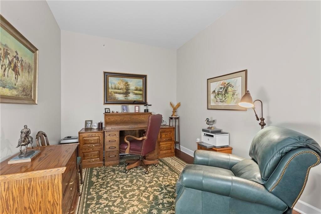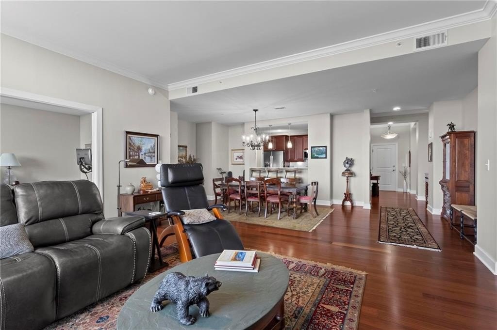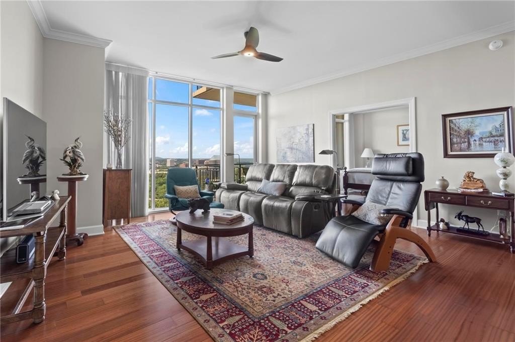 Situated atop the highest point inside the perimeter, One Vinings Mountain is considered one of the most luxurious condominium properties in Cobb County. The lobby and resident hallways have recently undergone impressive renovations and the results are stunning! Come discover this seamless blend of elegance, utility, and convenience in this resort-style property. The "Norman" floor plan is located on one of the penthouse levels, and is the largest 2 bedroom, 2.5 bathroom floor plan (including an in-home office) in the building. The visual impact of the floor to ceiling windows is something to behold as the transoms allow for maximum amounts of natural light. The spacious balcony offers breathtaking views of the rolling hills of north Georgia. The large kitchen with a walk in pantry, has been enhanced with pristine quartz countertops and new GE Profile oven and microwave.o top it all off . . . this incredible condo comes with a coveted temperature controlled 15x6.5 storage unit on the garage level and two assigned parking spaces. In addition, the unparalleled amenities include a fulltime concierge, infinity pool, fitness room, private massage room, woodworking room, board room, billiard room, golf simulator, catering kitchen adjacent to a large gathering room for welcoming guests, a covered grilling area with outdoor fireplace and TV, an EV charging station, a dog park, and two suites for additional overnight guests. You cannot beat the location of One Vinings Mountain for quick and easy access to major highways, to convenient shopping and dining in Vinings Jubilee, to Truist Park and The Battery, to the Chattahoochee River walking/biking trails, as well as to Hartsfield-Jackson International Airport. One Vinings Mountain as it ALL (except high property taxes!) Isn't it time you called One Vinings Mountain "home"?